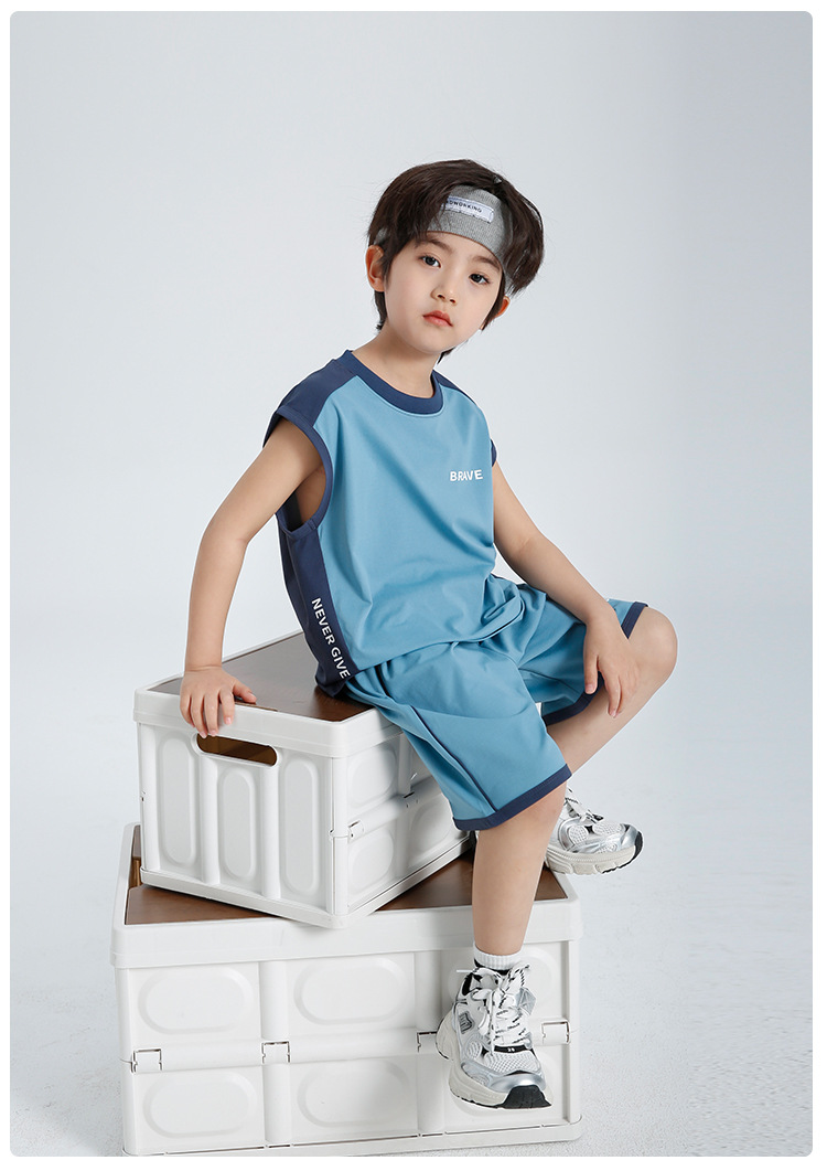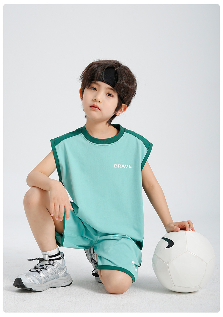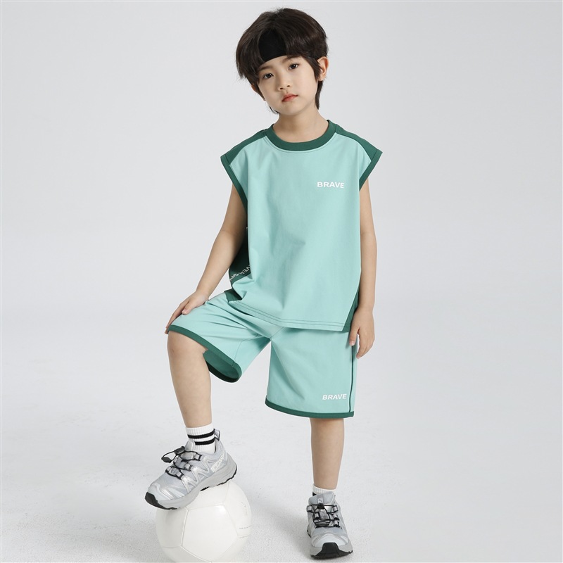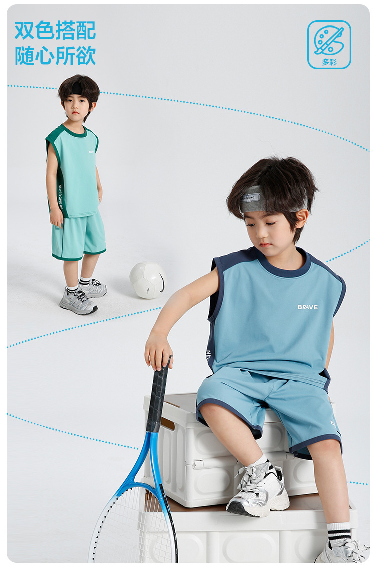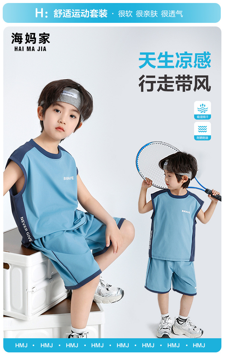 하이마의 2026년 여름 신상 남아용 시원한 스포츠웨어 조끼와 반바지 투피스 농구복 세트 (큰아이용)
