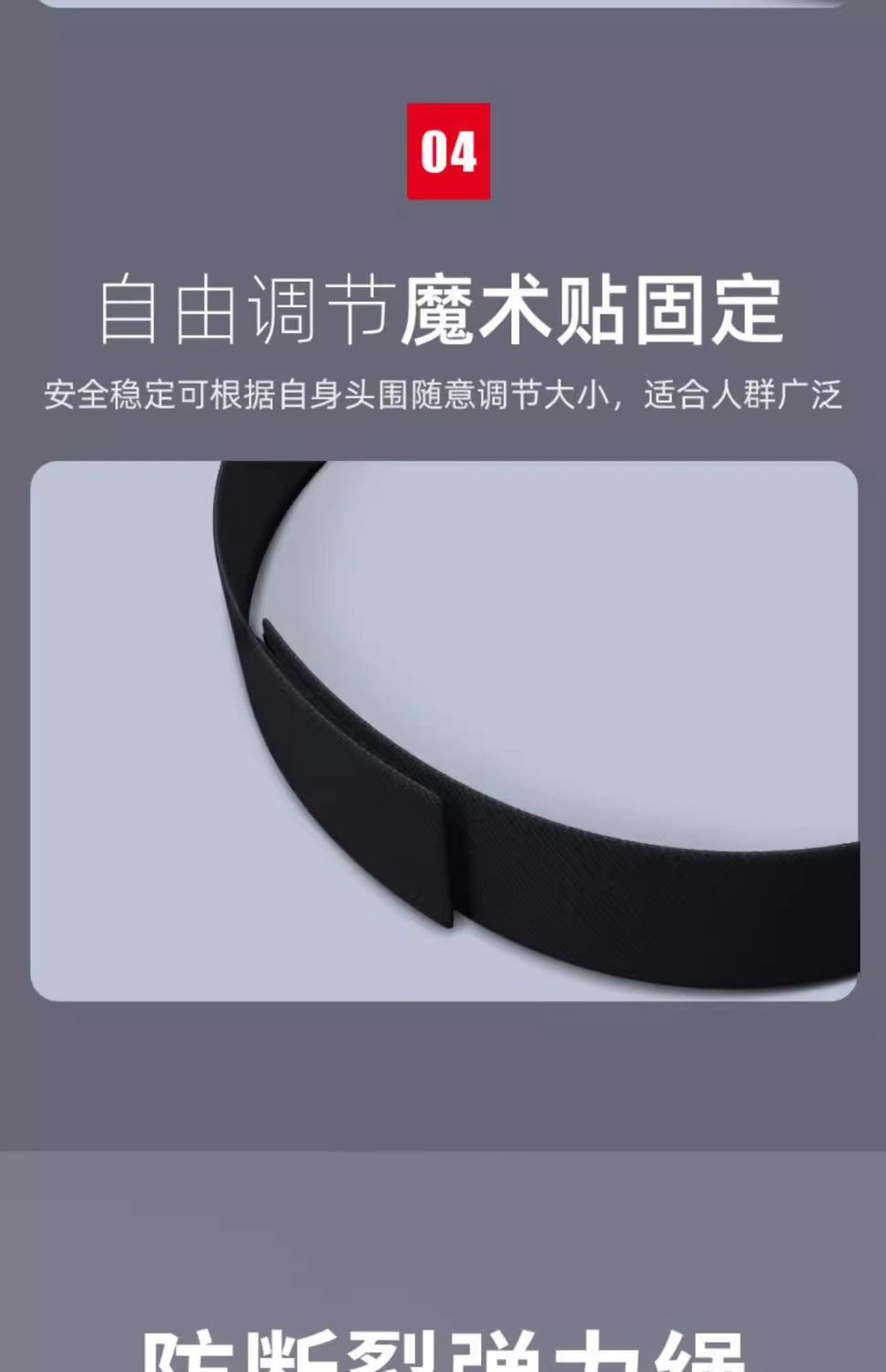 • 탄력 있는 머리띠 + 블랙 라이트 볼