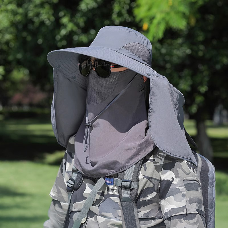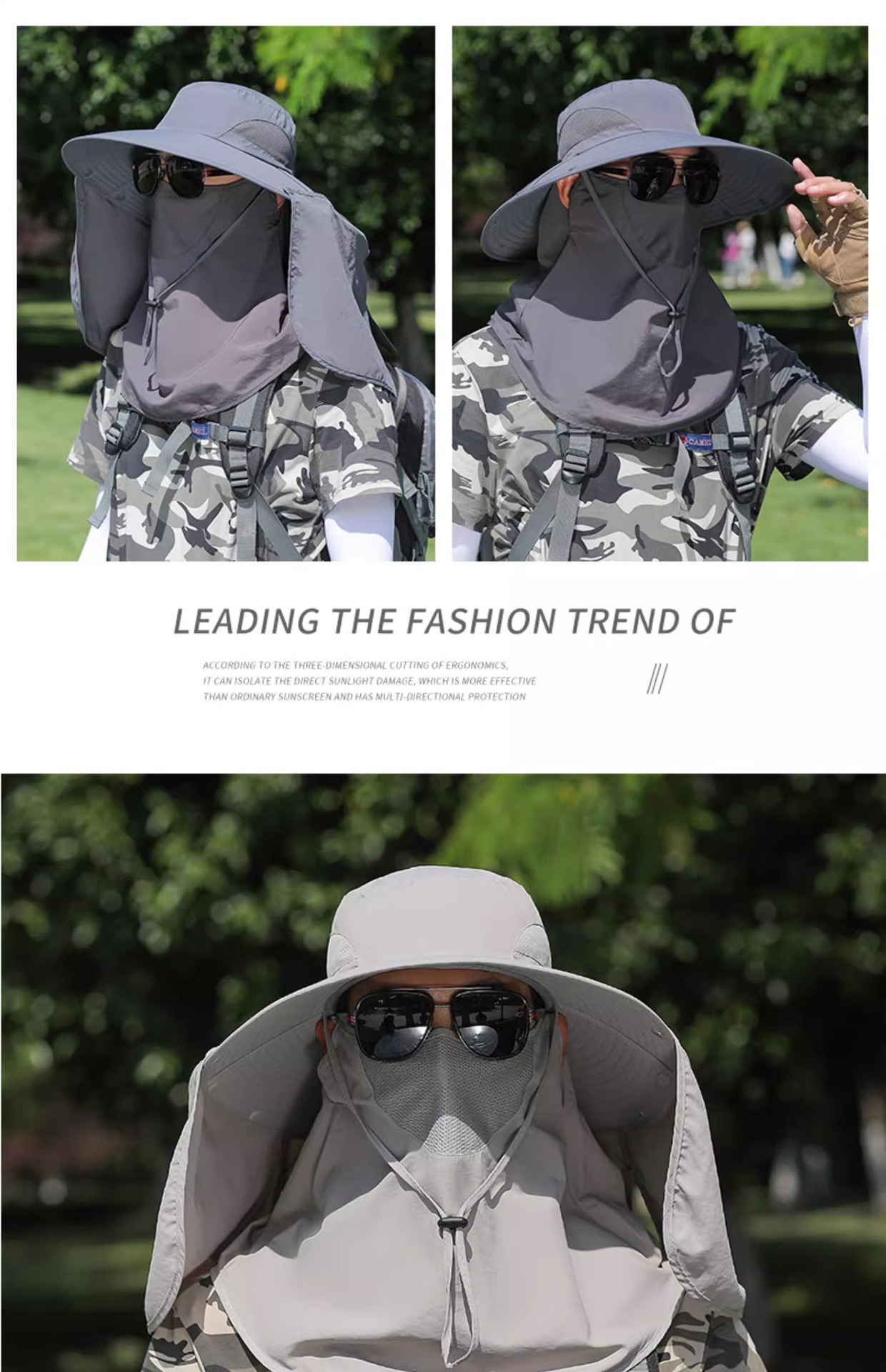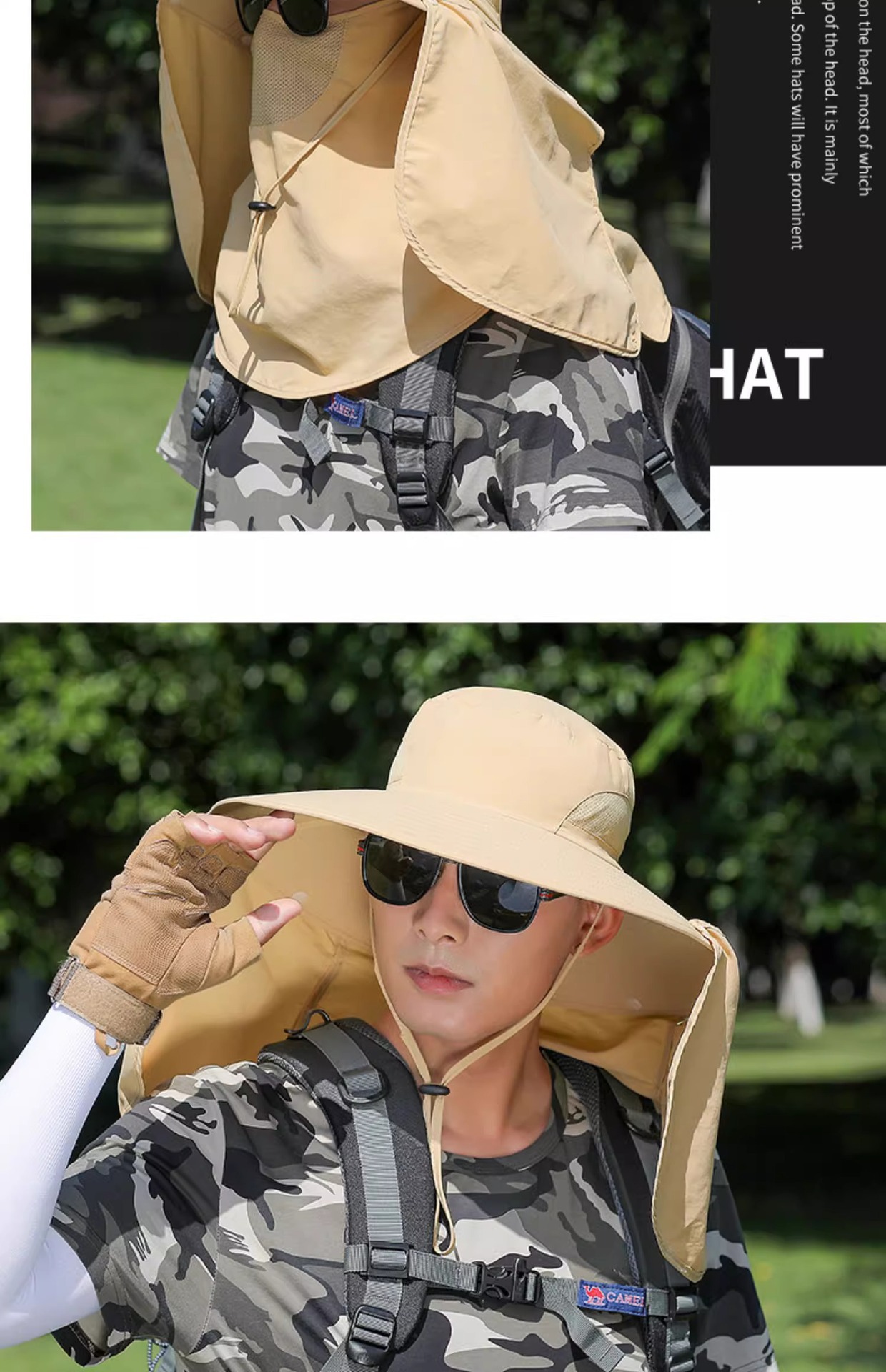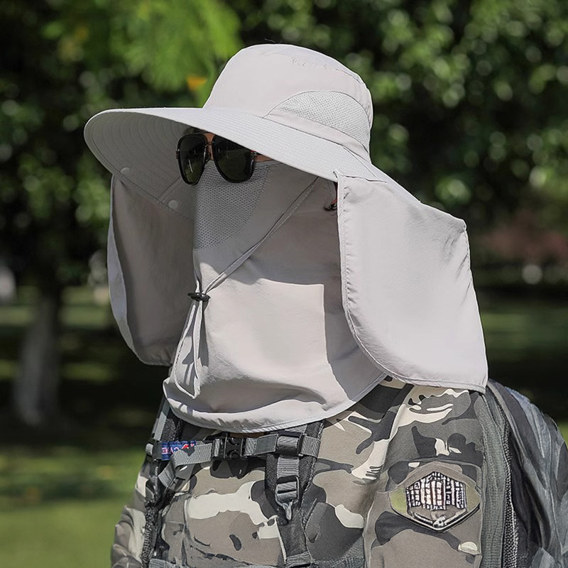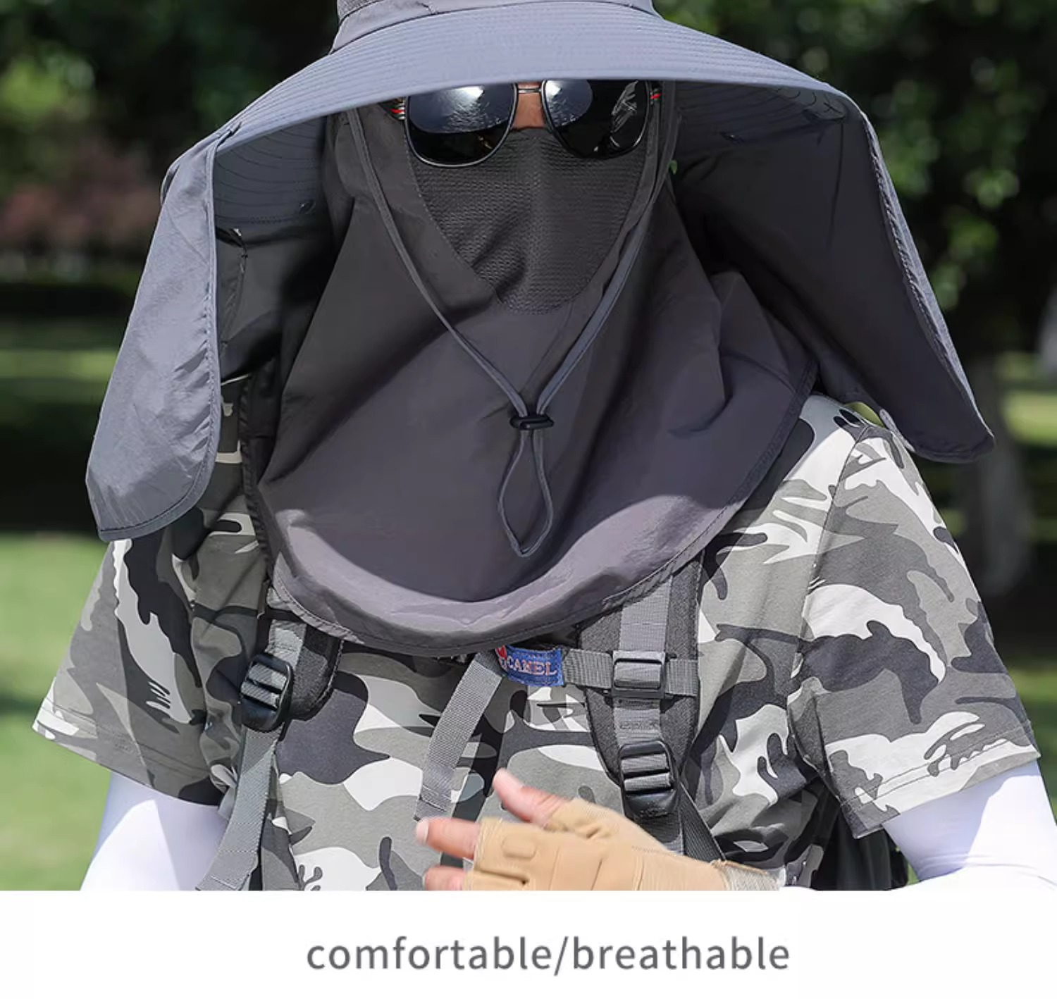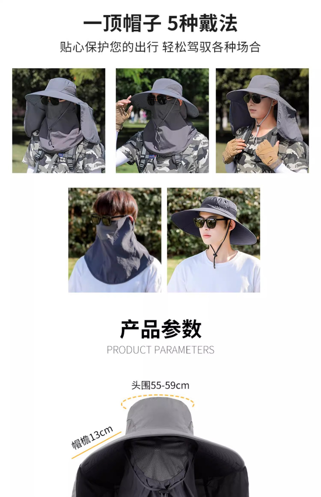 어부 모자, 햇빛 가리개, 낚시 모자, 얼굴과 목 보호 기능이 있는 남성용 일체형 자외선 차단 모자, 챙이 큰 태양 모자, 낚시 모자, 여름용