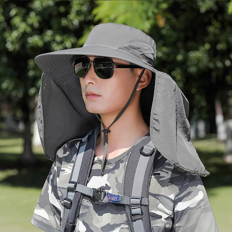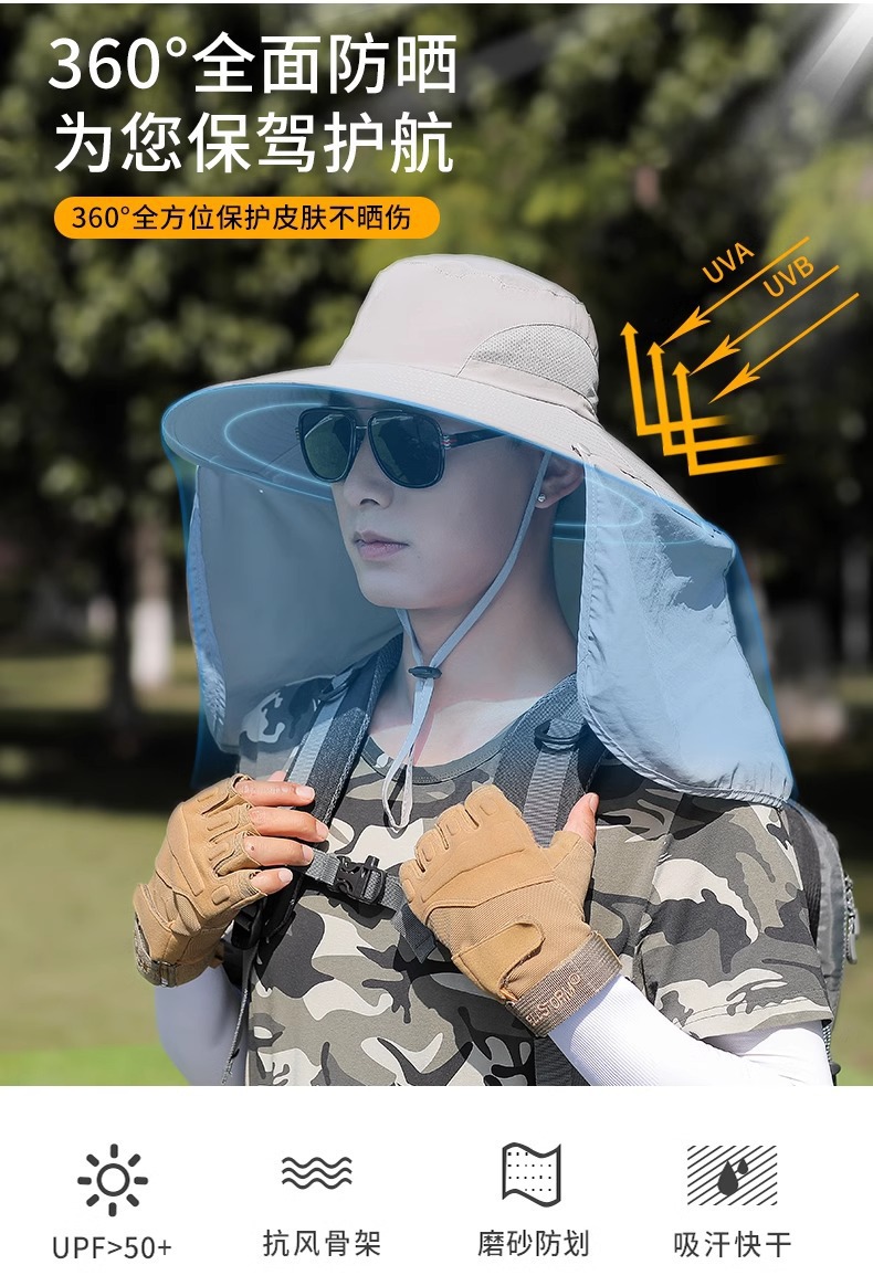 어부 모자, 햇빛 가리개, 낚시 모자, 얼굴과 목 보호 기능이 있는 남성용 일체형 자외선 차단 모자, 챙이 큰 태양 모자, 낚시 모자, 여름용스토어 가기