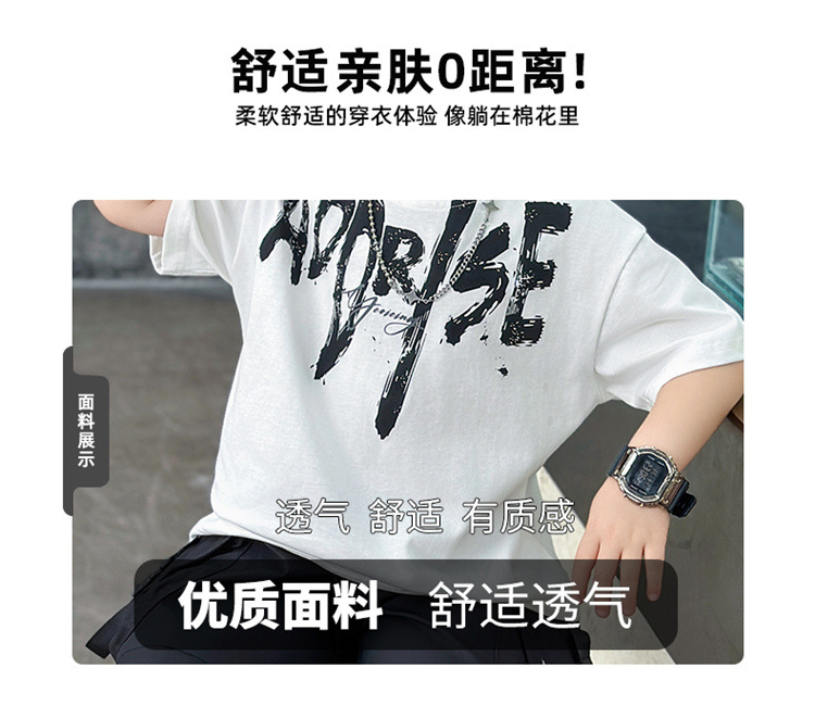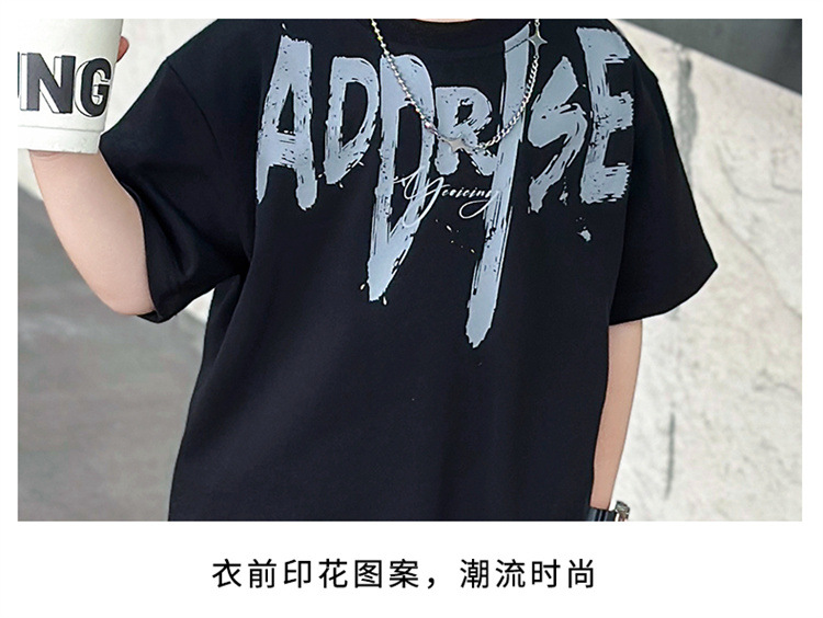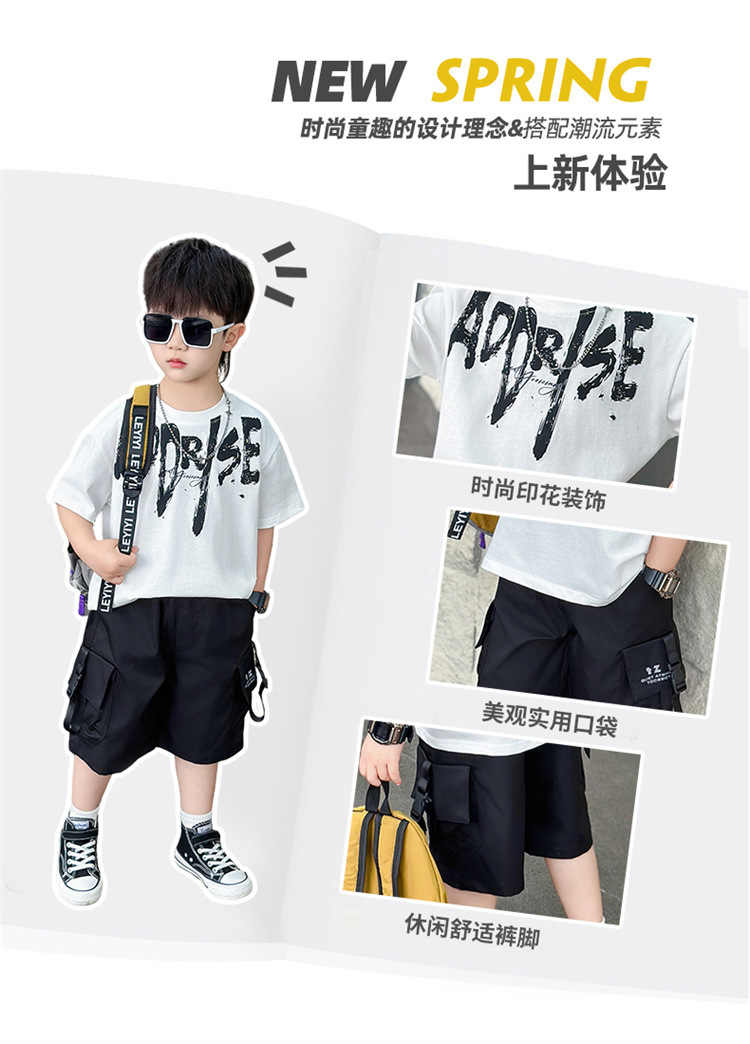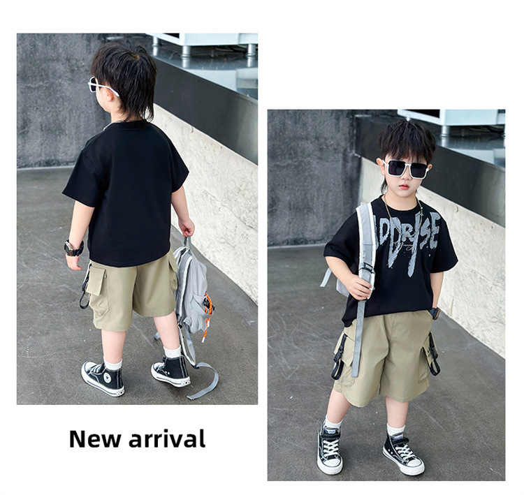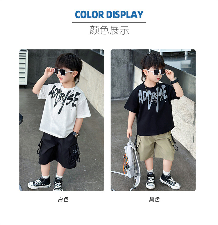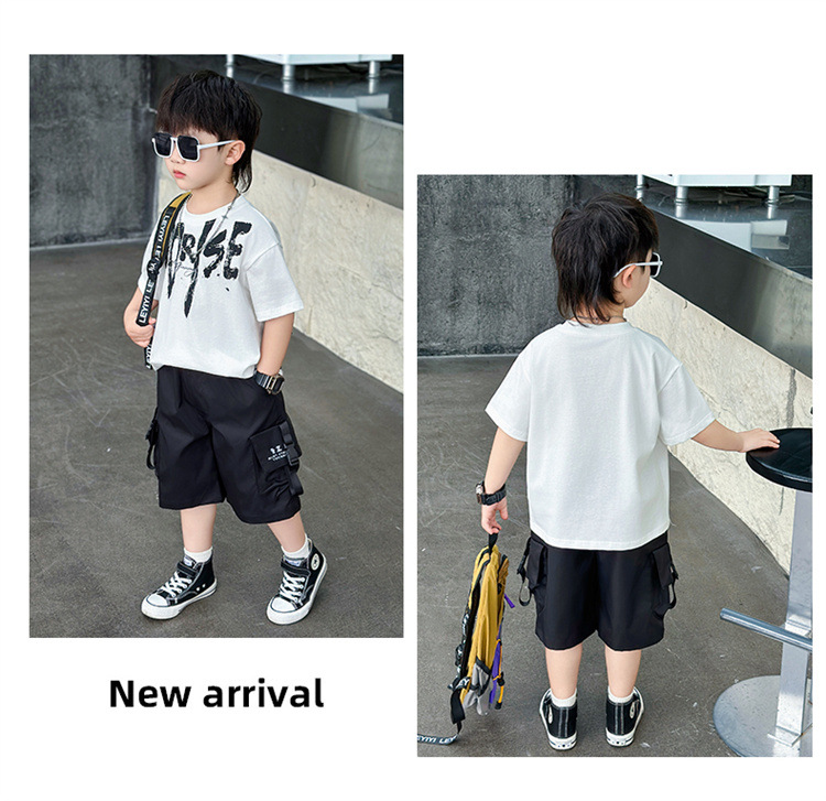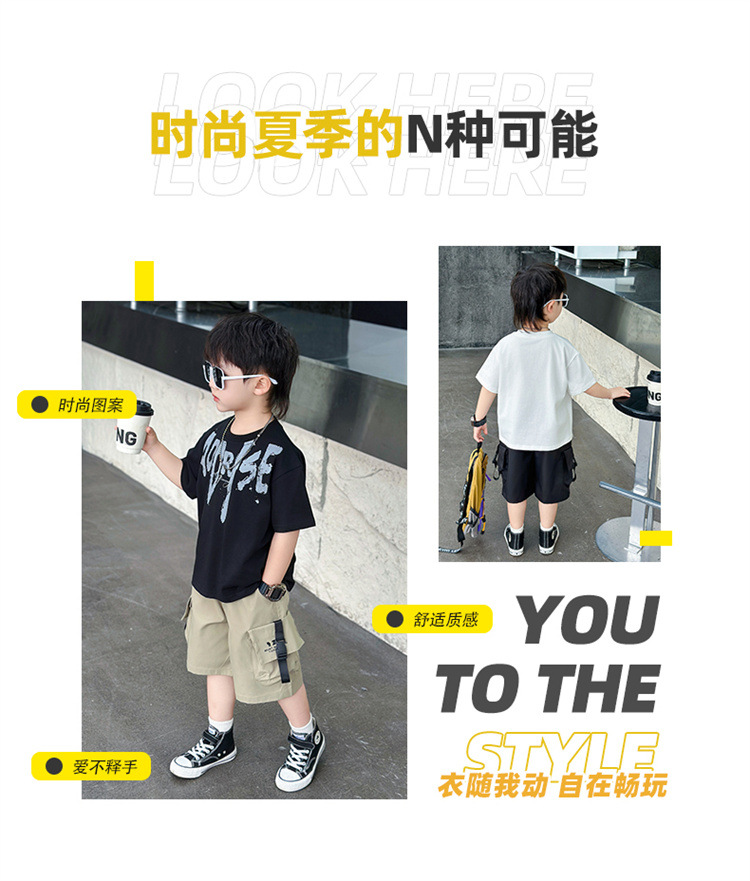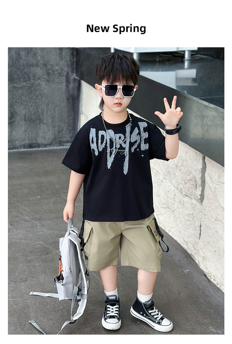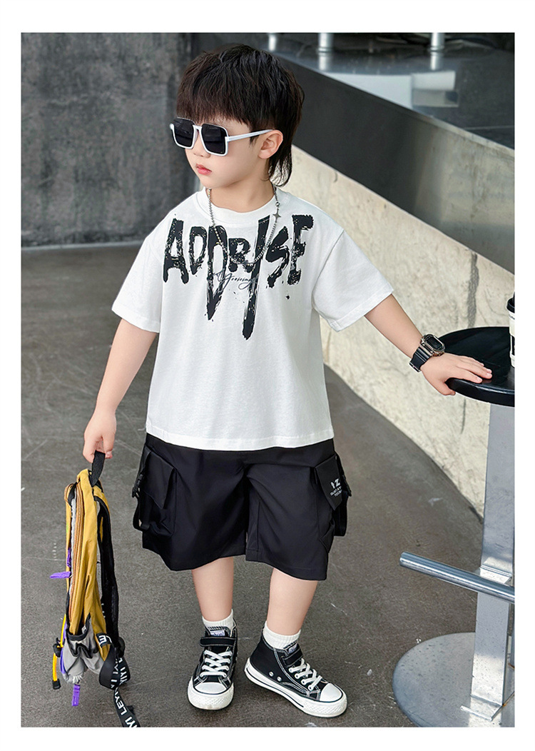 트렌디한 아동 여름 의류 네크라인 레터링 반팔 양복 2025 여름 새로운 스타일 잘 생긴 아기 소년 인터넷 연예인 유행 옷스토어 가기