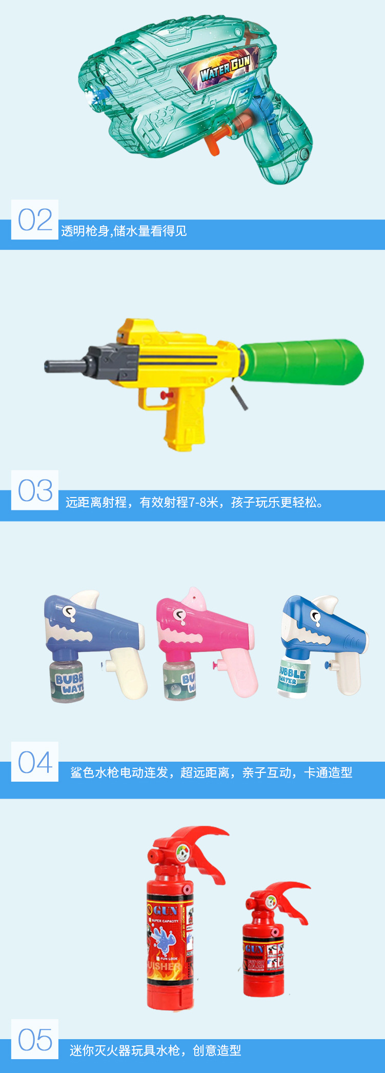 OPP 가방 장난감 물 총 국경 간 CPC 인증 여름 물 휴대용 작은 투명 플라스틱 미니 물총
