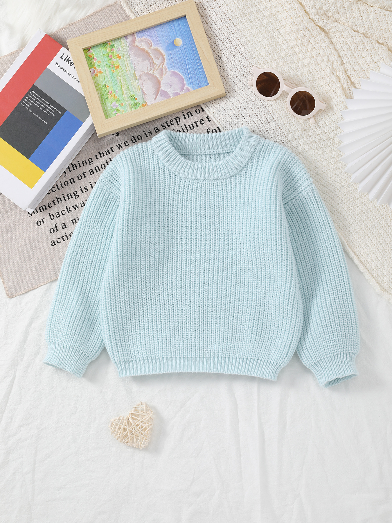 신생아 유아 아기 라운드 넥 경량 니트 솔리드 컬러 긴 소매 아동 스웨터, 봄 착용에 적합스토어 가기