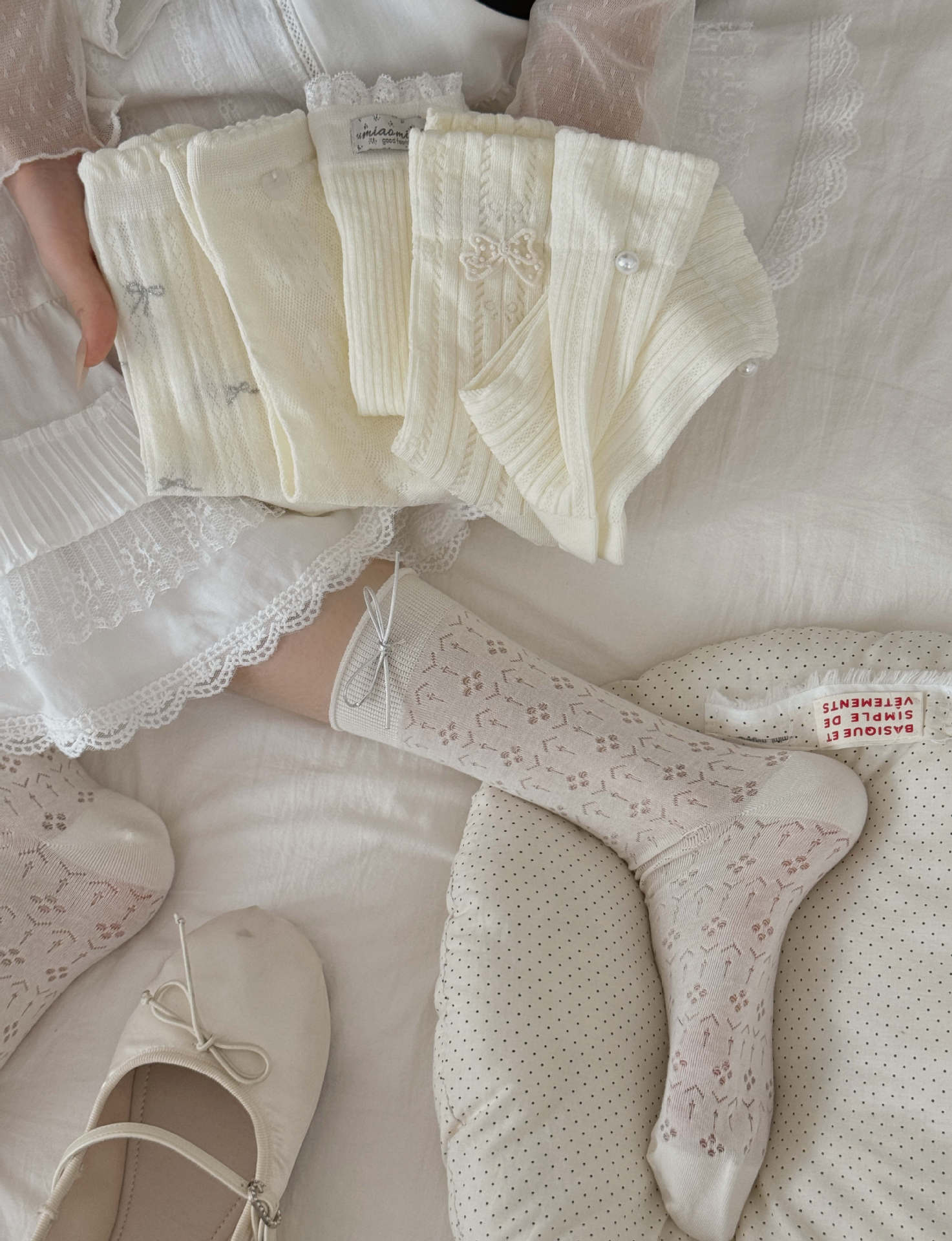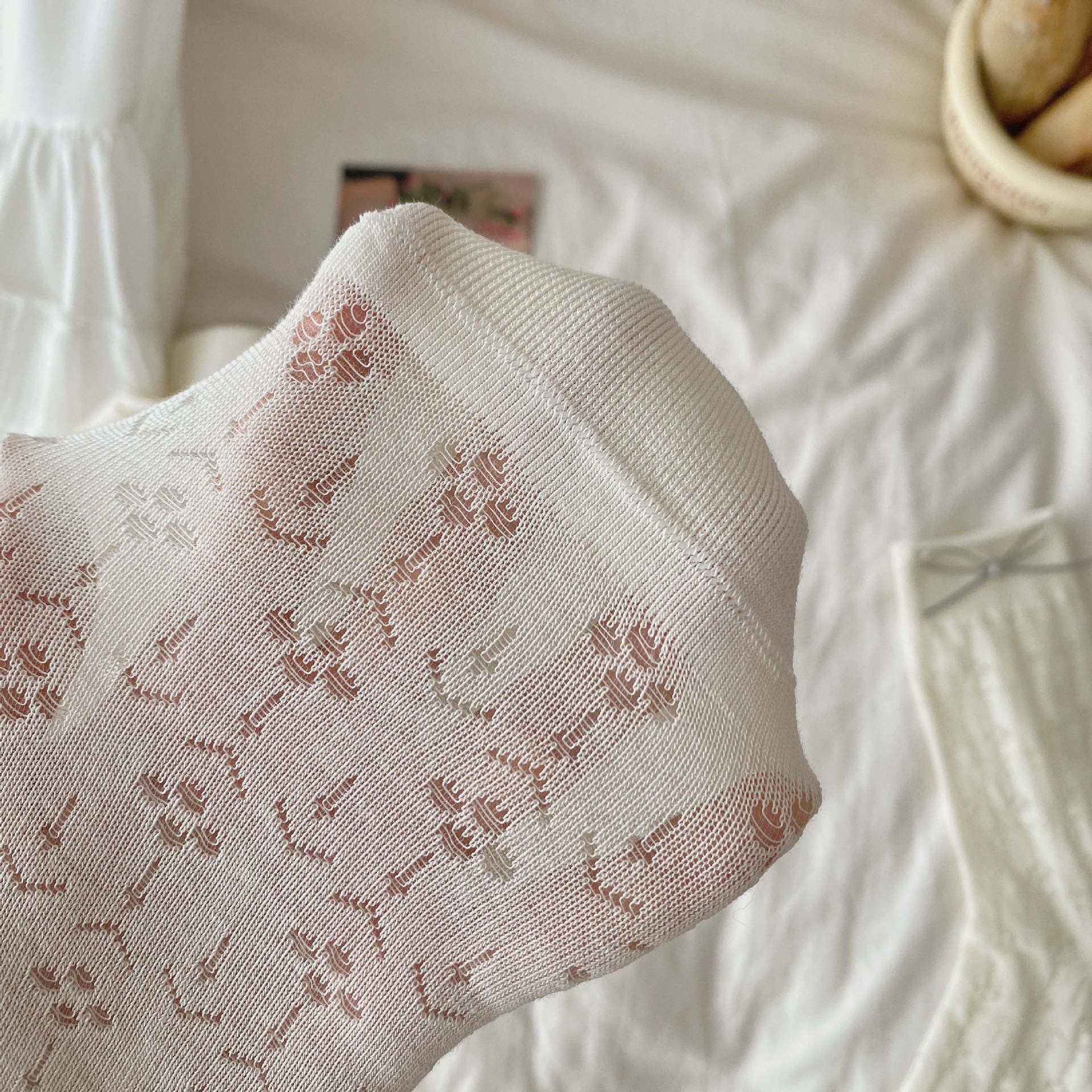 스튜디오 크림 양말 여성의 봄과 여름 얇은 중공 여름 양말 난폭 한 꽃 아카데미 스타일 스태킹 양말