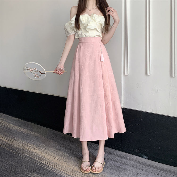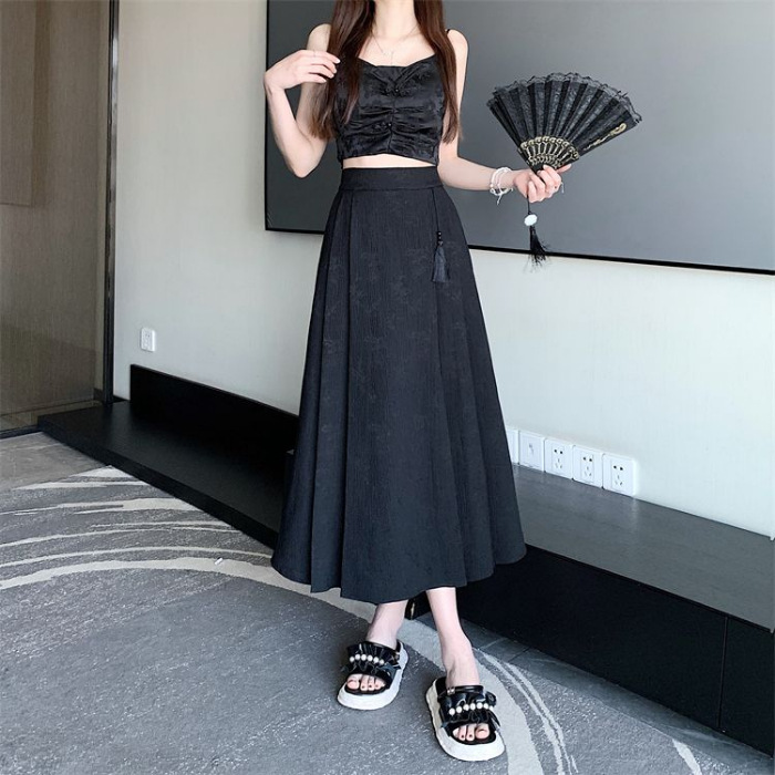 몸집이 작은 분들도 착용할 수 있는 새로운 중국 스타일의 자카드 스커트, 신축성 있는 허리, 슬림하고 개선된 말머리 주름 스커트, 트렌디함스토어 가기