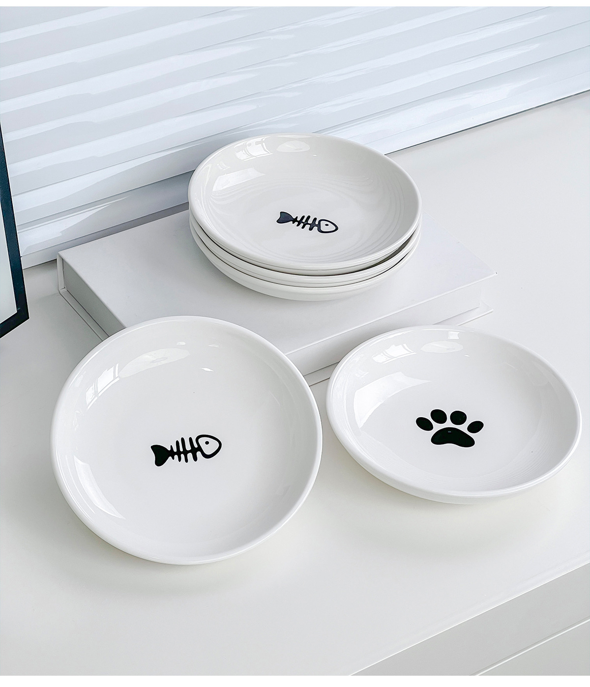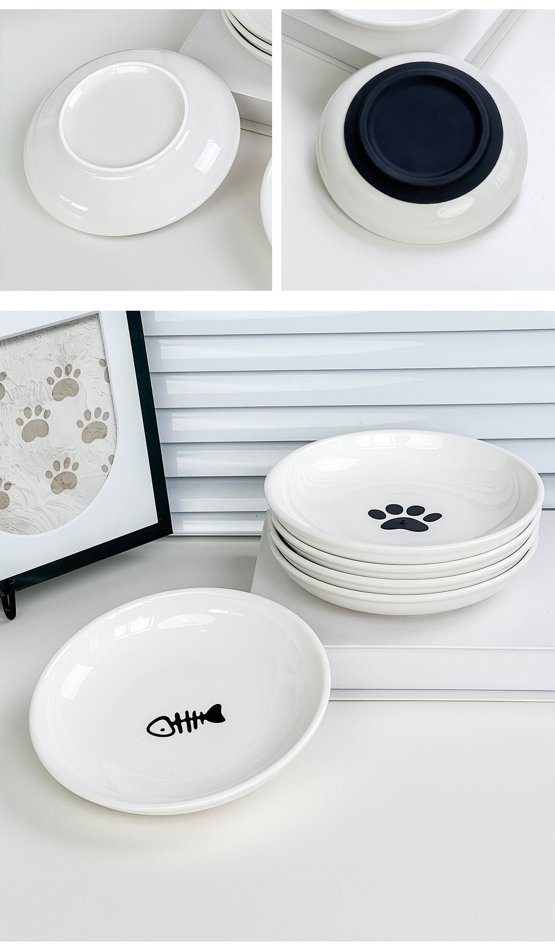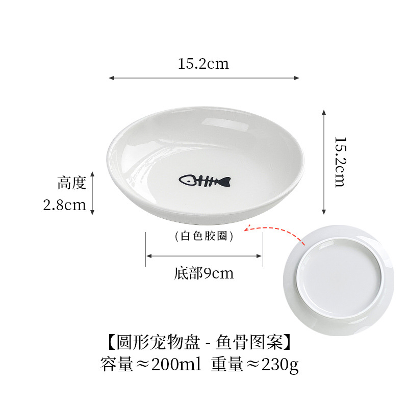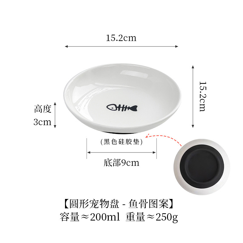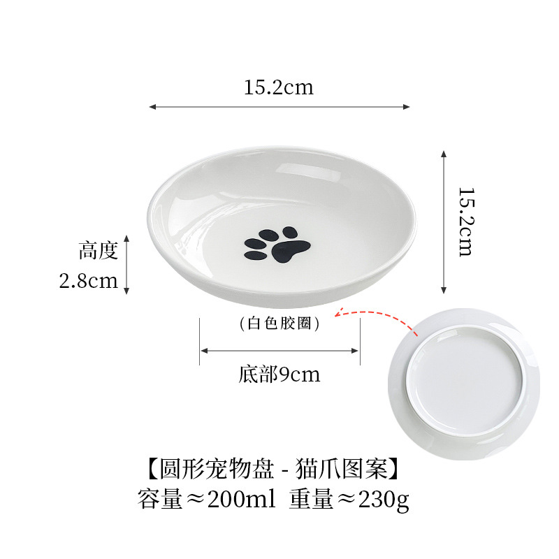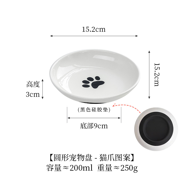 실리콘 패드가 있는 심플한 스타일의 고양이 발톱 물고기 뼈 패턴 애완 동물 접시 세라믹 그릇 고양이 밥 그릇 고양이 그릇 개 그릇 뒤집힘 방지스토어 가기