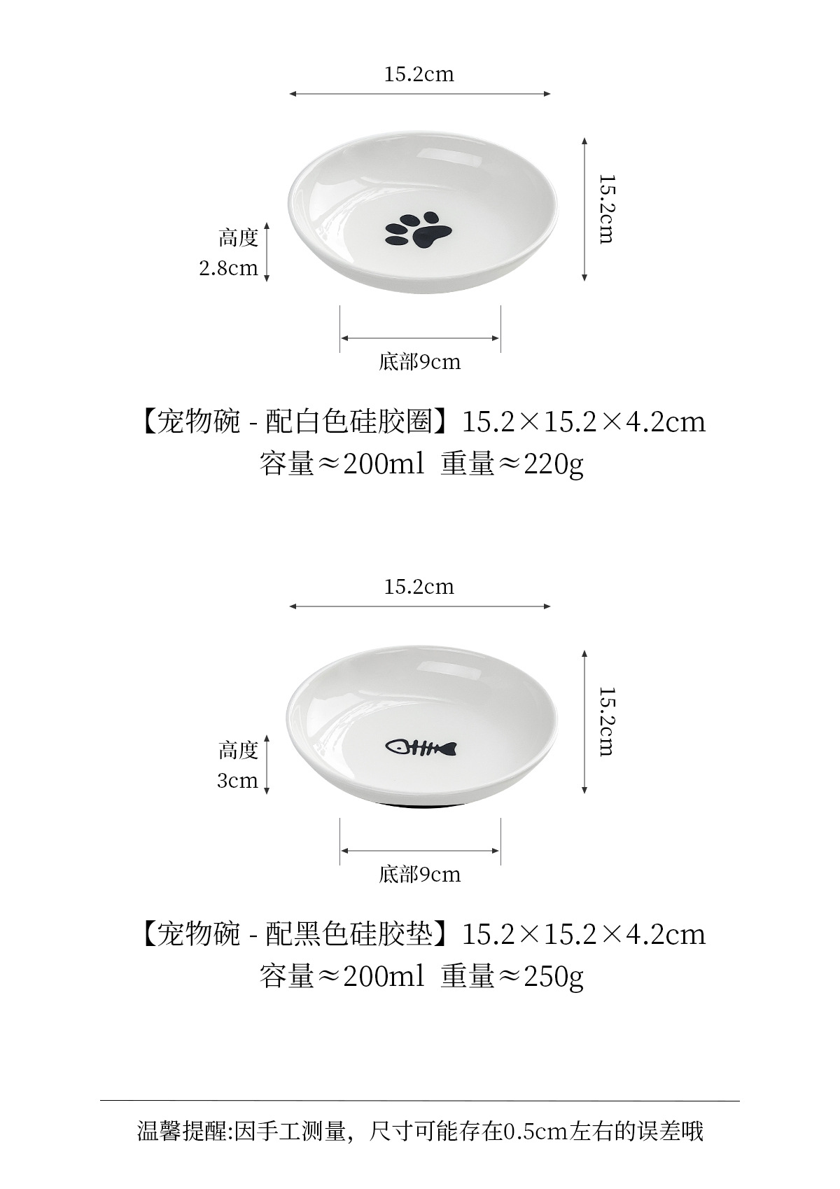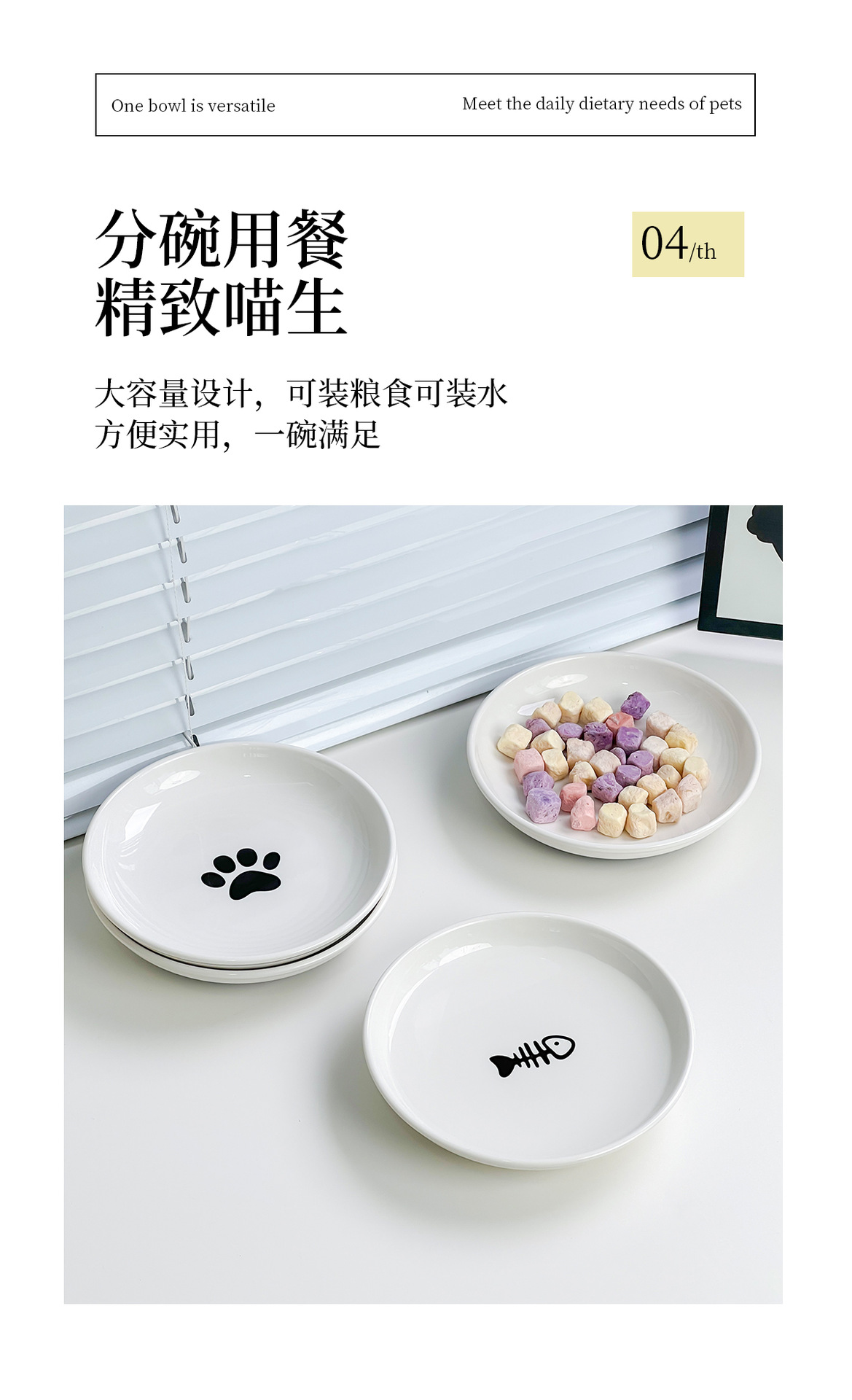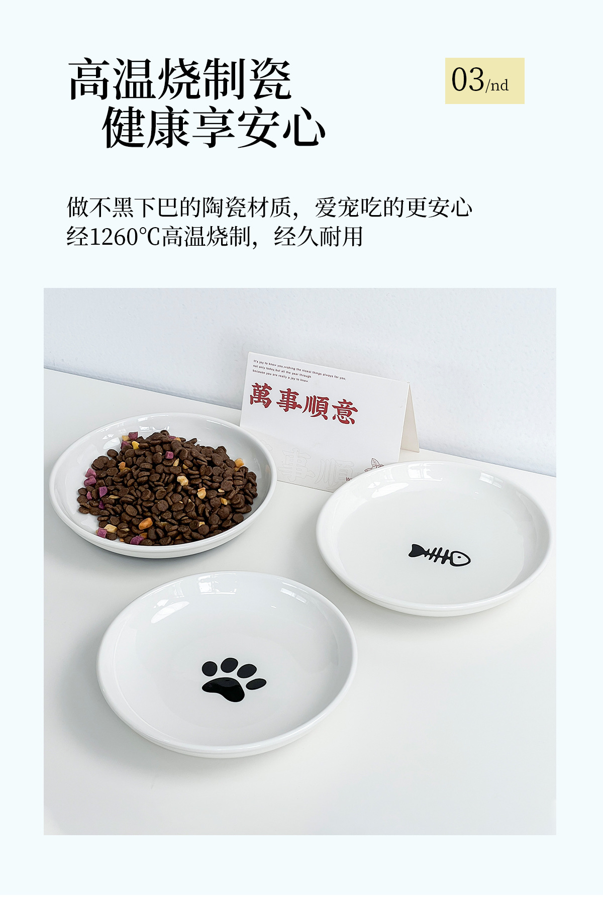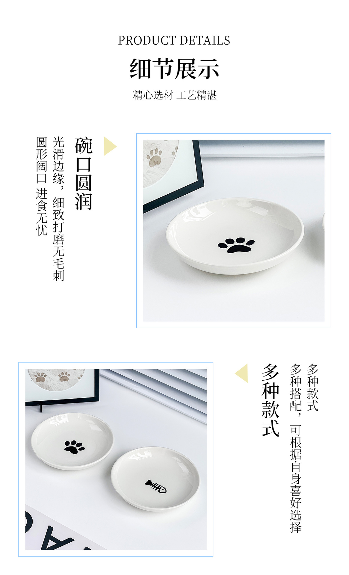실리콘 패드가 있는 심플한 스타일의 고양이 발톱 물고기 뼈 패턴 애완 동물 접시 세라믹 그릇 고양이 밥 그릇 고양이 그릇 개 그릇 뒤집힘 방지스토어 가기