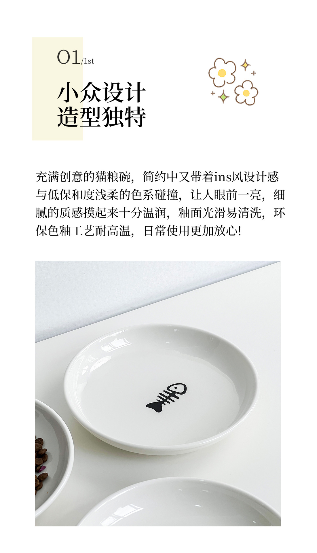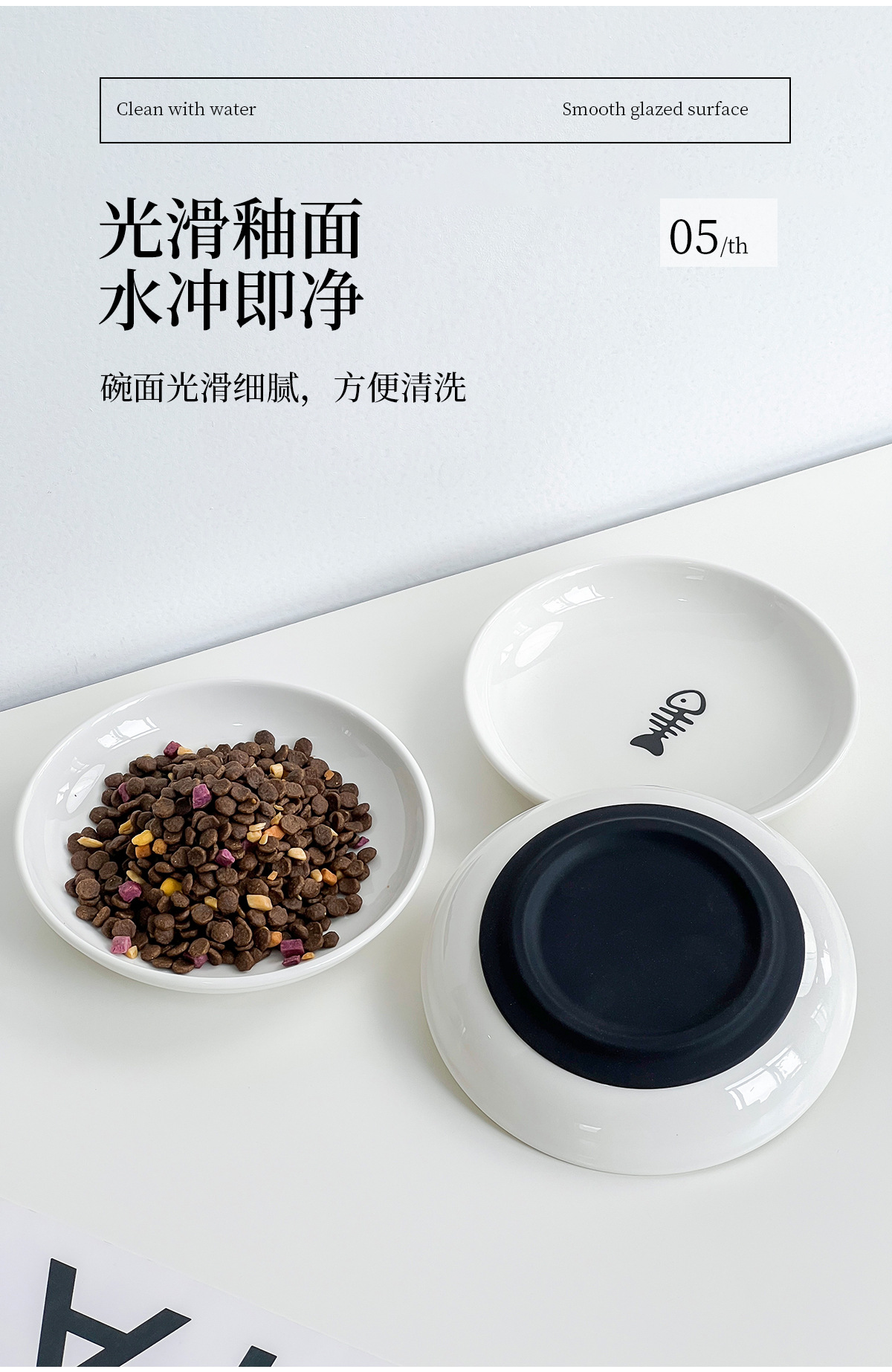 실리콘 패드가 있는 심플한 스타일의 고양이 발톱 물고기 뼈 패턴 애완 동물 접시 세라믹 그릇 고양이 밥 그릇 고양이 그릇 개 그릇 뒤집힘 방지
