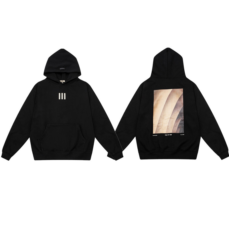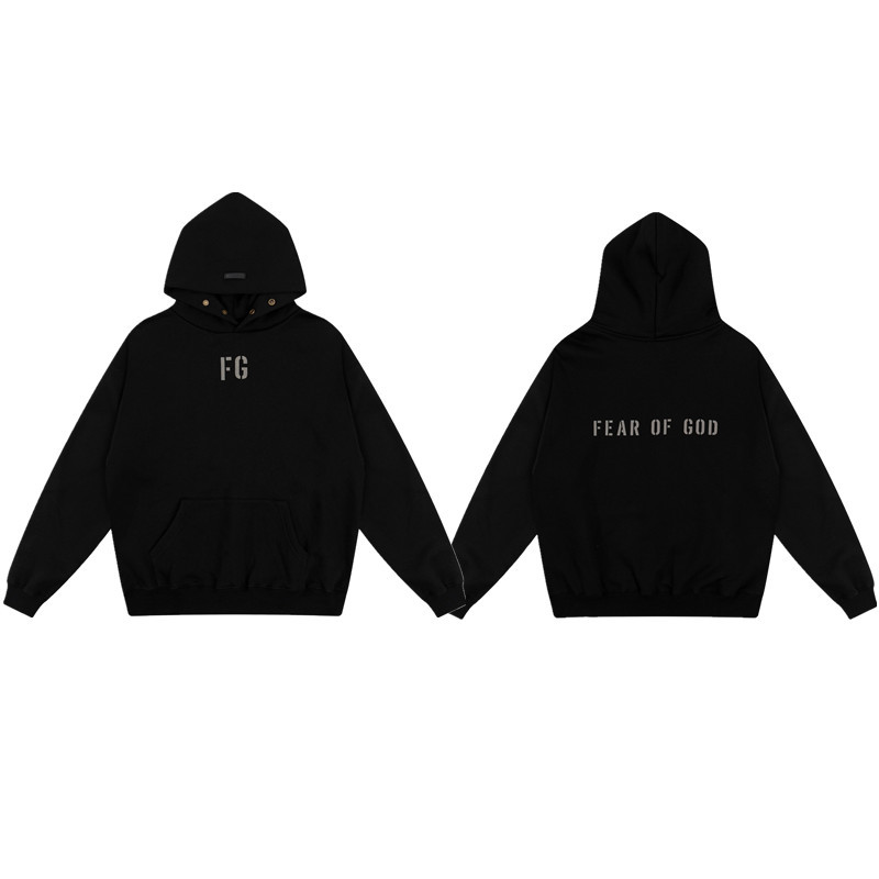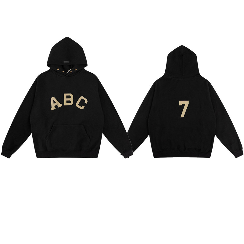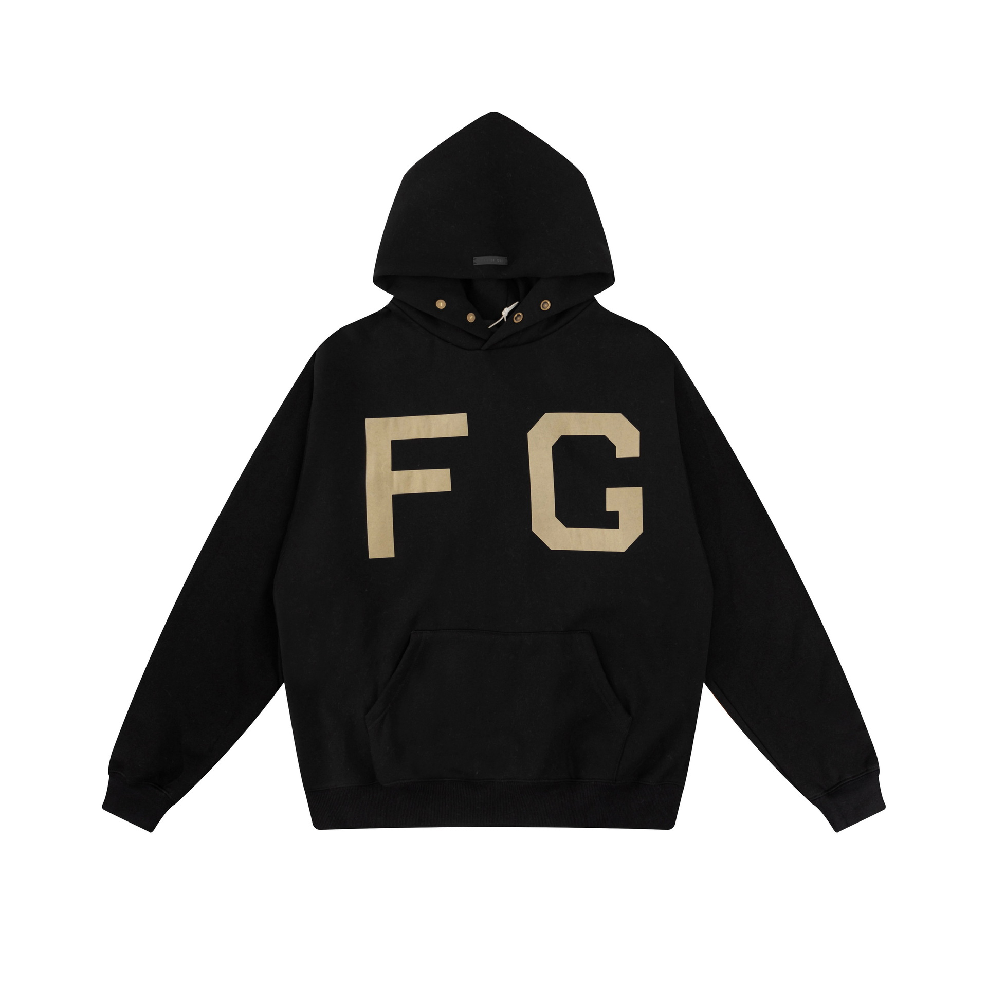 FOG ICON 다중 라인 플록 레터 캐주얼 루즈 하이 스트리트 플러스 벨벳 커플 후드 티셔츠 남성용 및 여성용의 올바른 버전스토어 가기