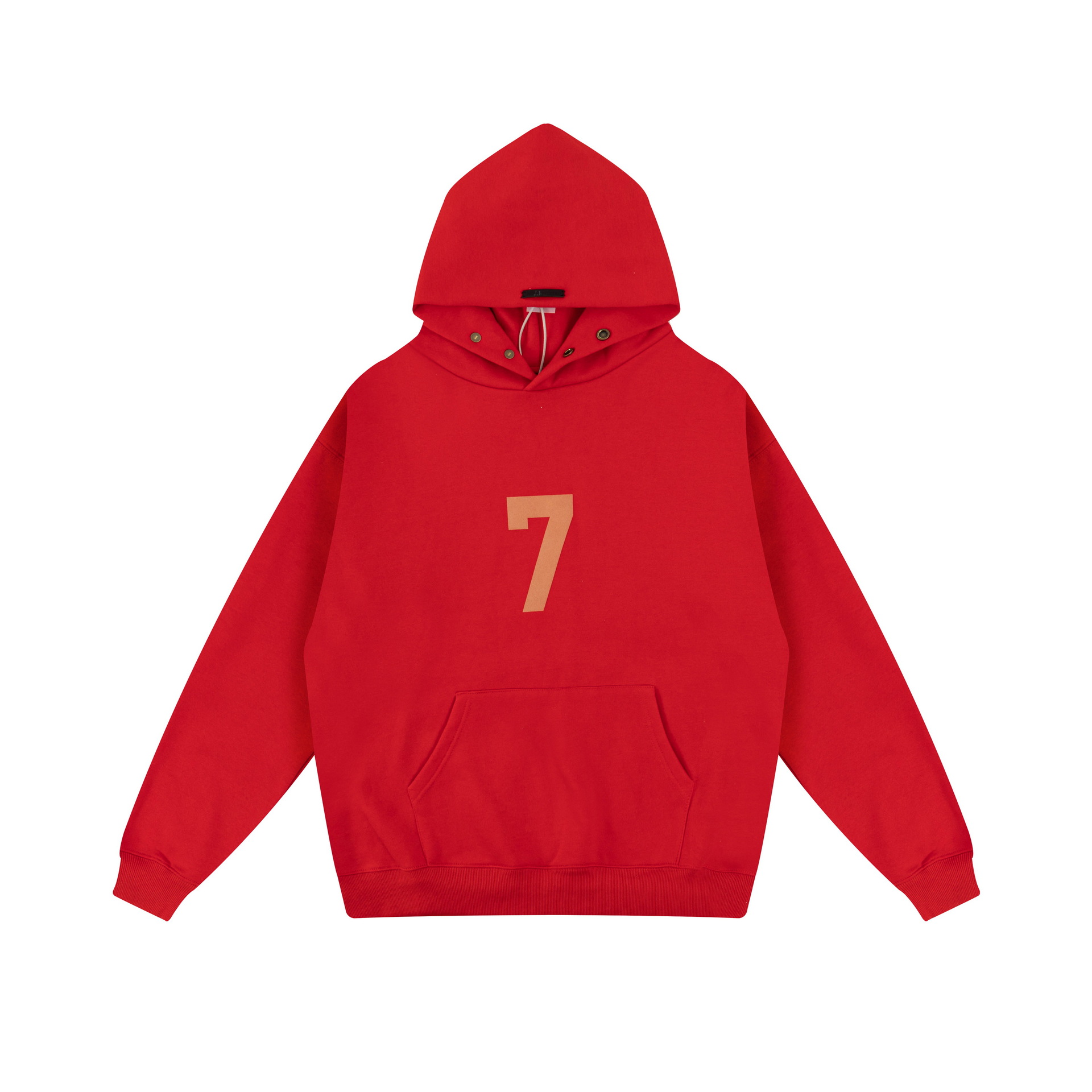 FOG ICON 다중 라인 플록 레터 캐주얼 루즈 하이 스트리트 플러스 벨벳 커플 후드 티셔츠 남성용 및 여성용의 올바른 버전