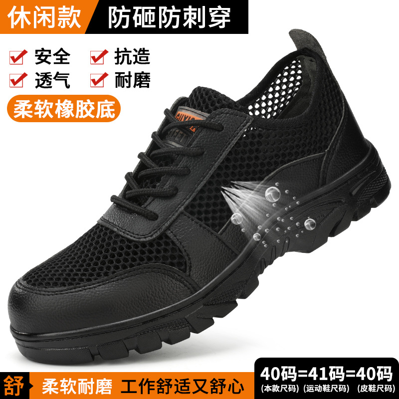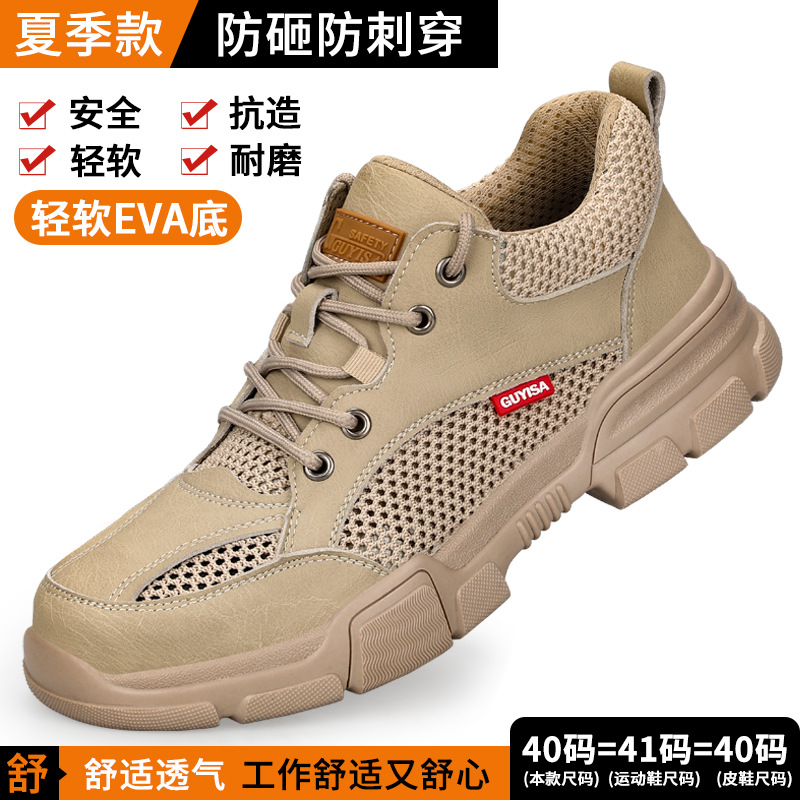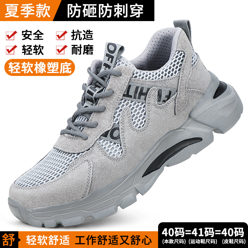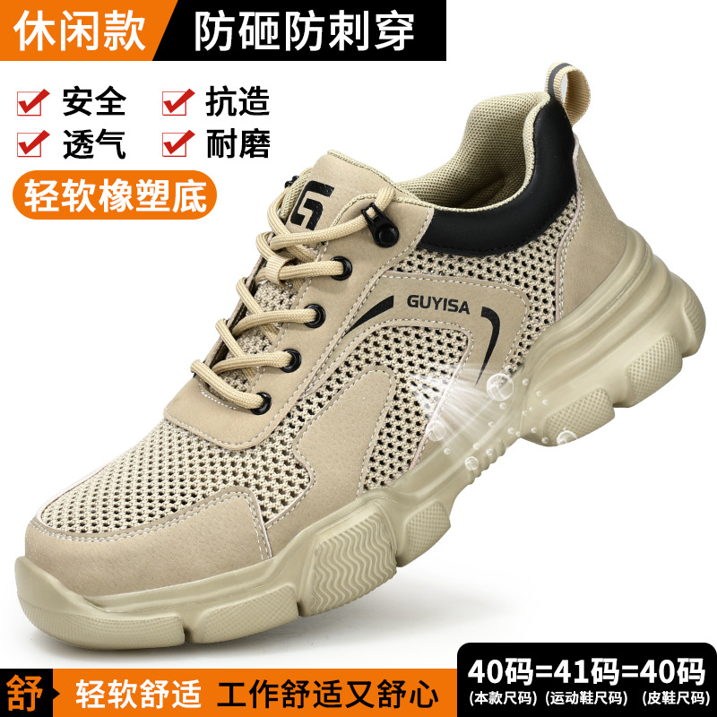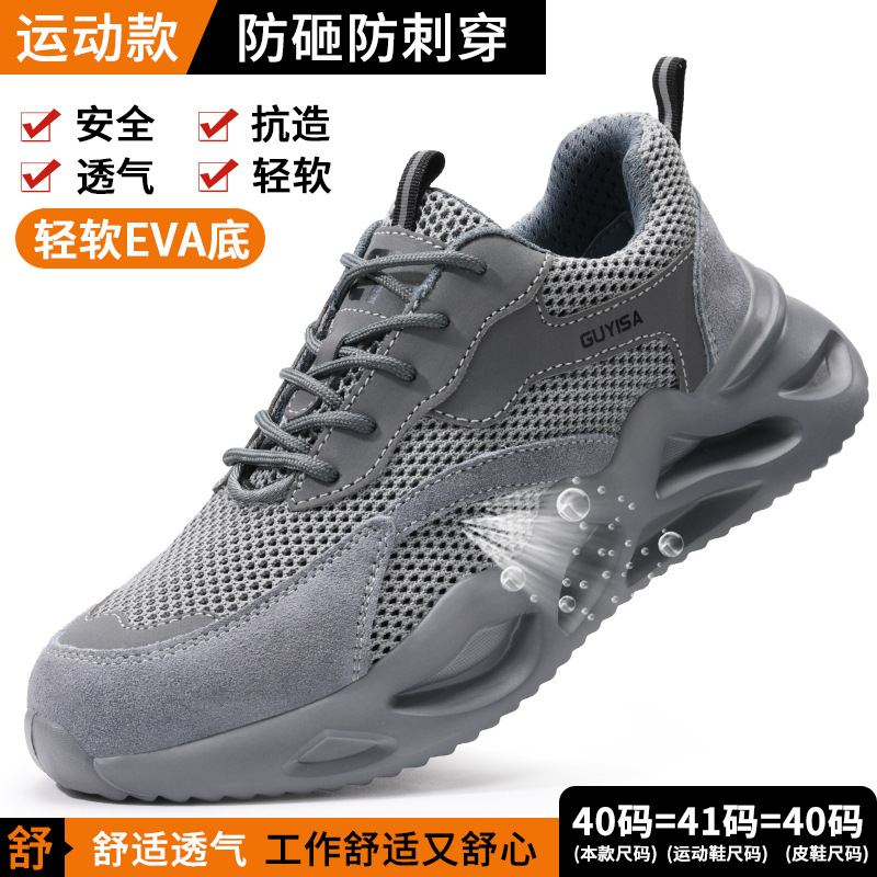 노동 보호 신발, 충격 방지 및 펑크 방지, 남성용 통기성 강철 발가락 신발, 부드러운 밑창, 경량, 장기간 서 있어도 피곤하지 않음, 사계절 모두 사용 가능한 플라이 니트 안전화스토어 가기