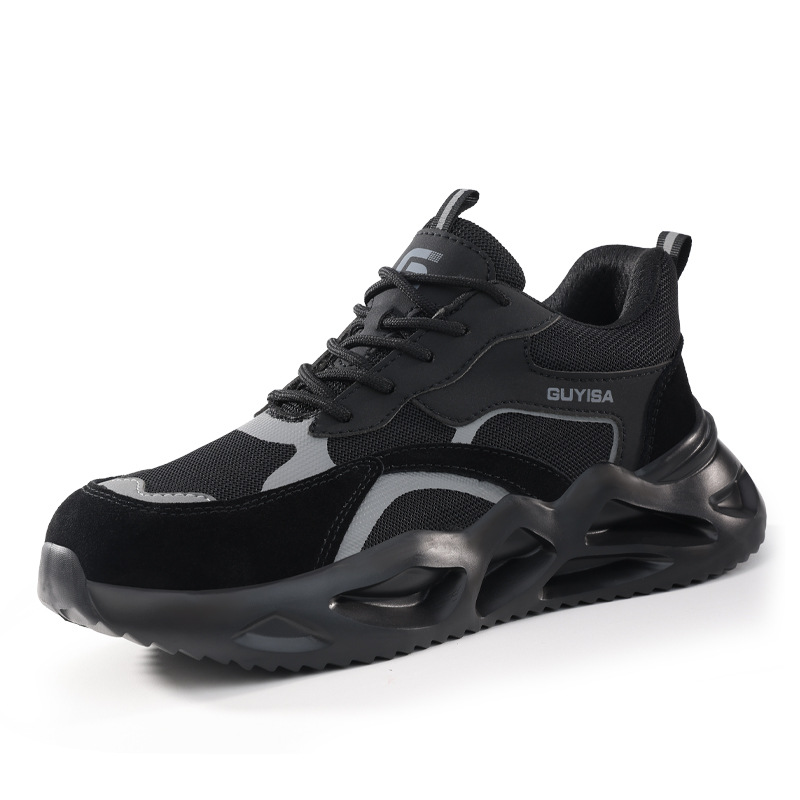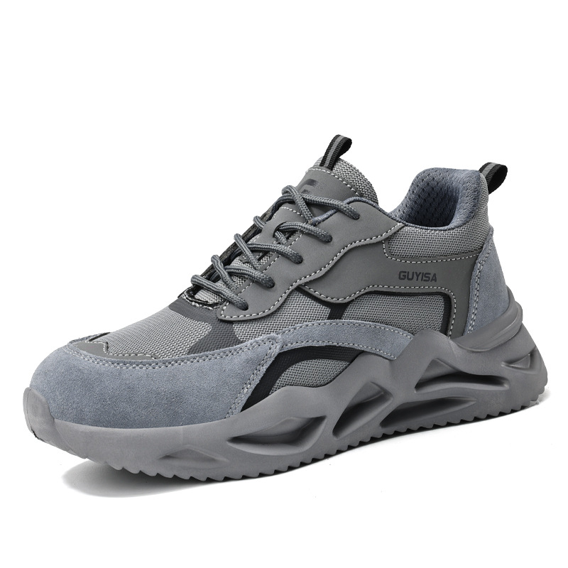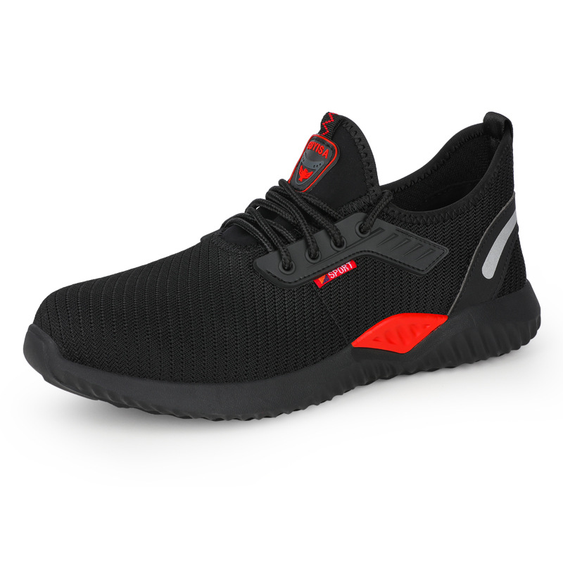 노동 보호 신발, 충격 방지 및 펑크 방지, 남성용 통기성 강철 발가락 신발, 부드러운 밑창, 경량, 장기간 서 있어도 피곤하지 않음, 사계절 모두 사용 가능한 플라이 니트 안전화