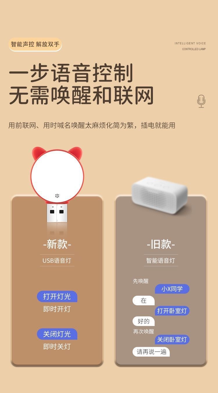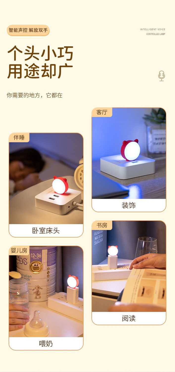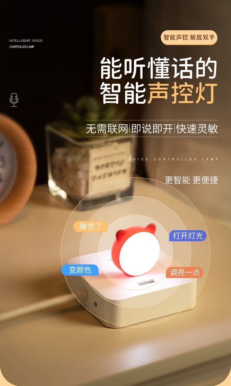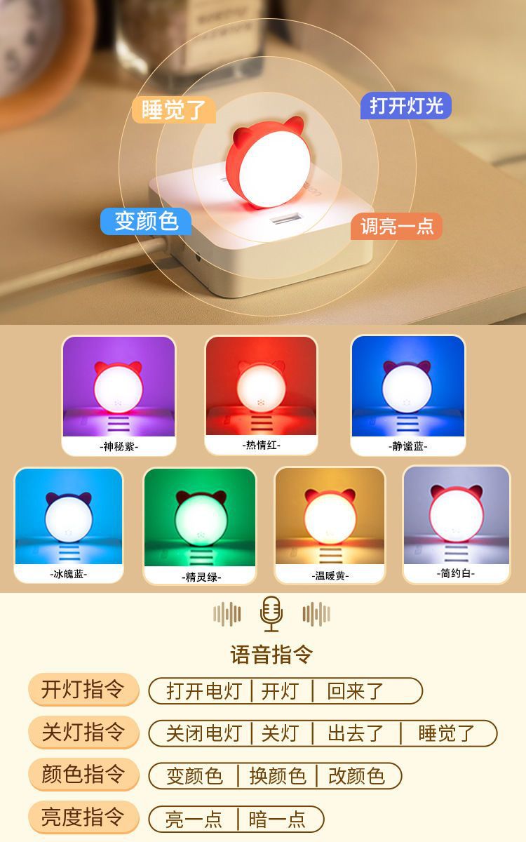 음성 제어 야간 조명 USB 플래시 다채로운 야간 조명 귀여운 고양이 조명 제어 크리 에이 티브 미니 휴대용 LED 조명 부드러운 빛 눈 보호스토어 가기