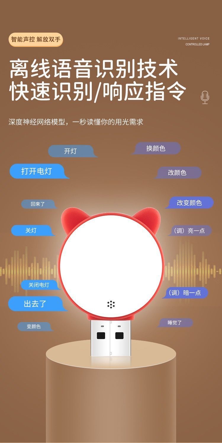 음성 제어 야간 조명 USB 플래시 다채로운 야간 조명 귀여운 고양이 조명 제어 크리 에이 티브 미니 휴대용 LED 조명 부드러운 빛 눈 보호