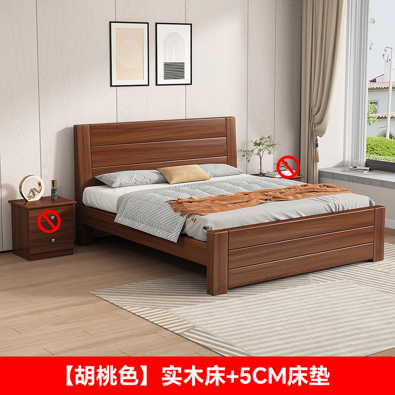 간단한 단단한 나무 침대 1.5 m 중국 더블 침대 1.8 m 마스터 침실 홈 임대 방 싱글 침대 1 m 경제적스토어 가기