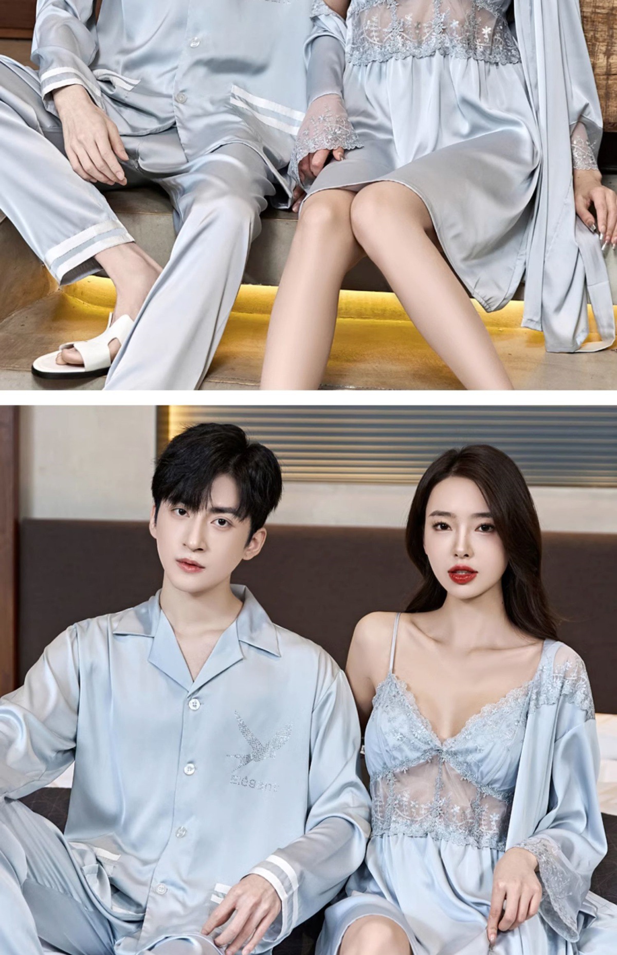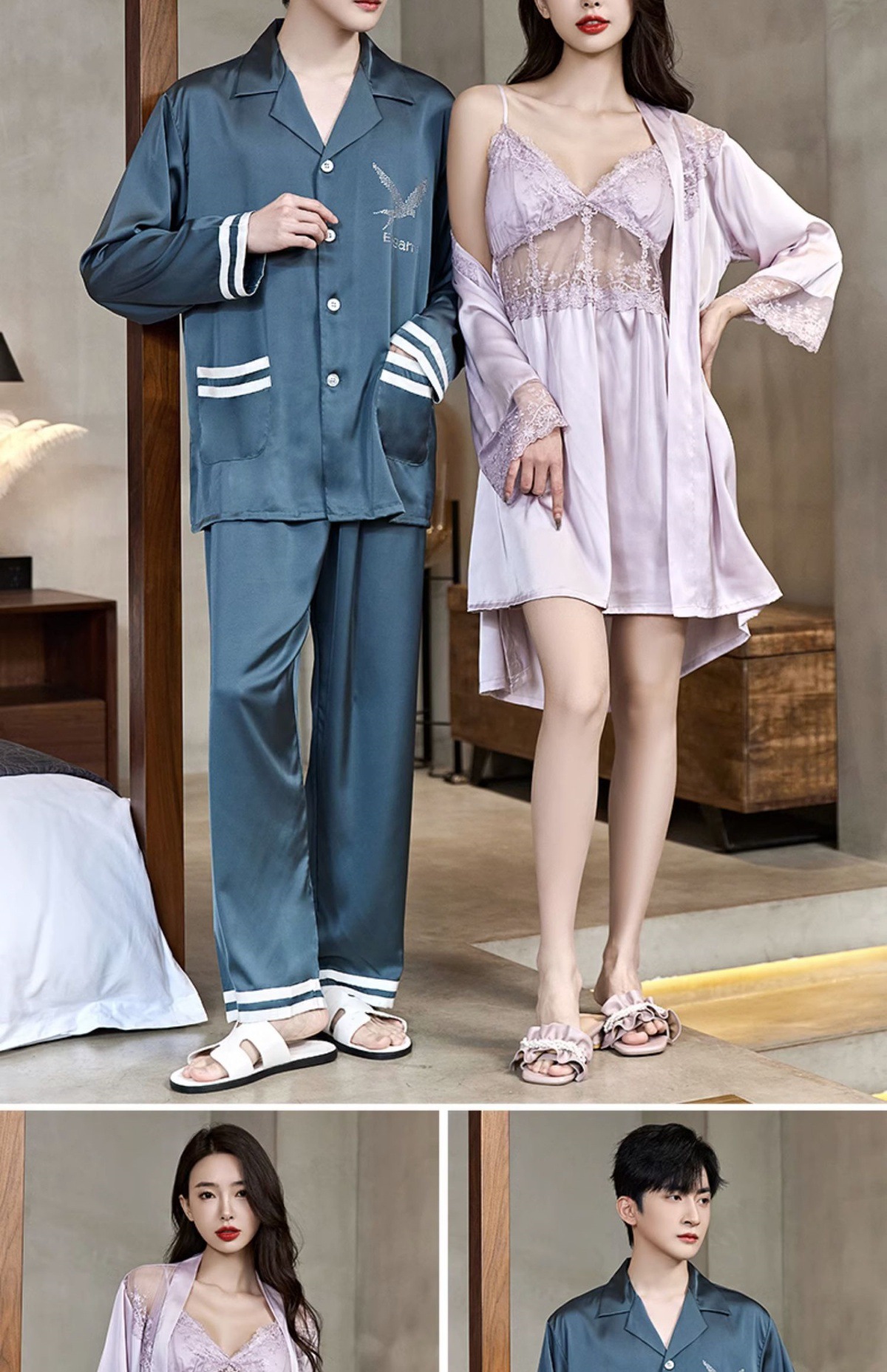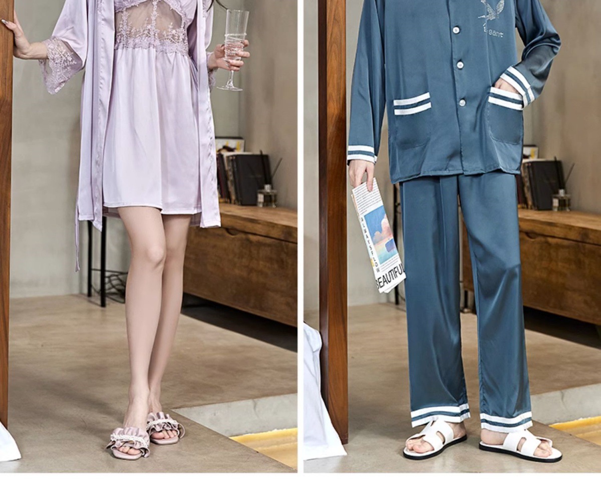 커플 잠옷 여름 얼음 실크 여성 섹시한 순수한 욕망 안티 볼록 슬링 잠옷 여름 남성 반팔