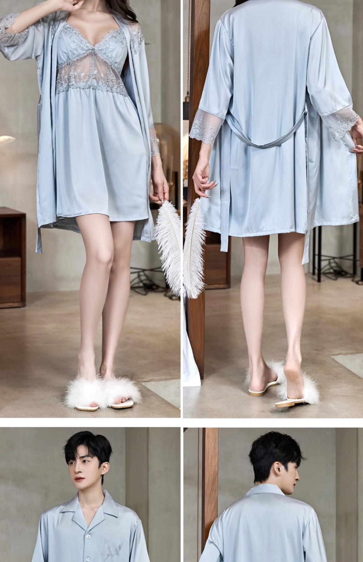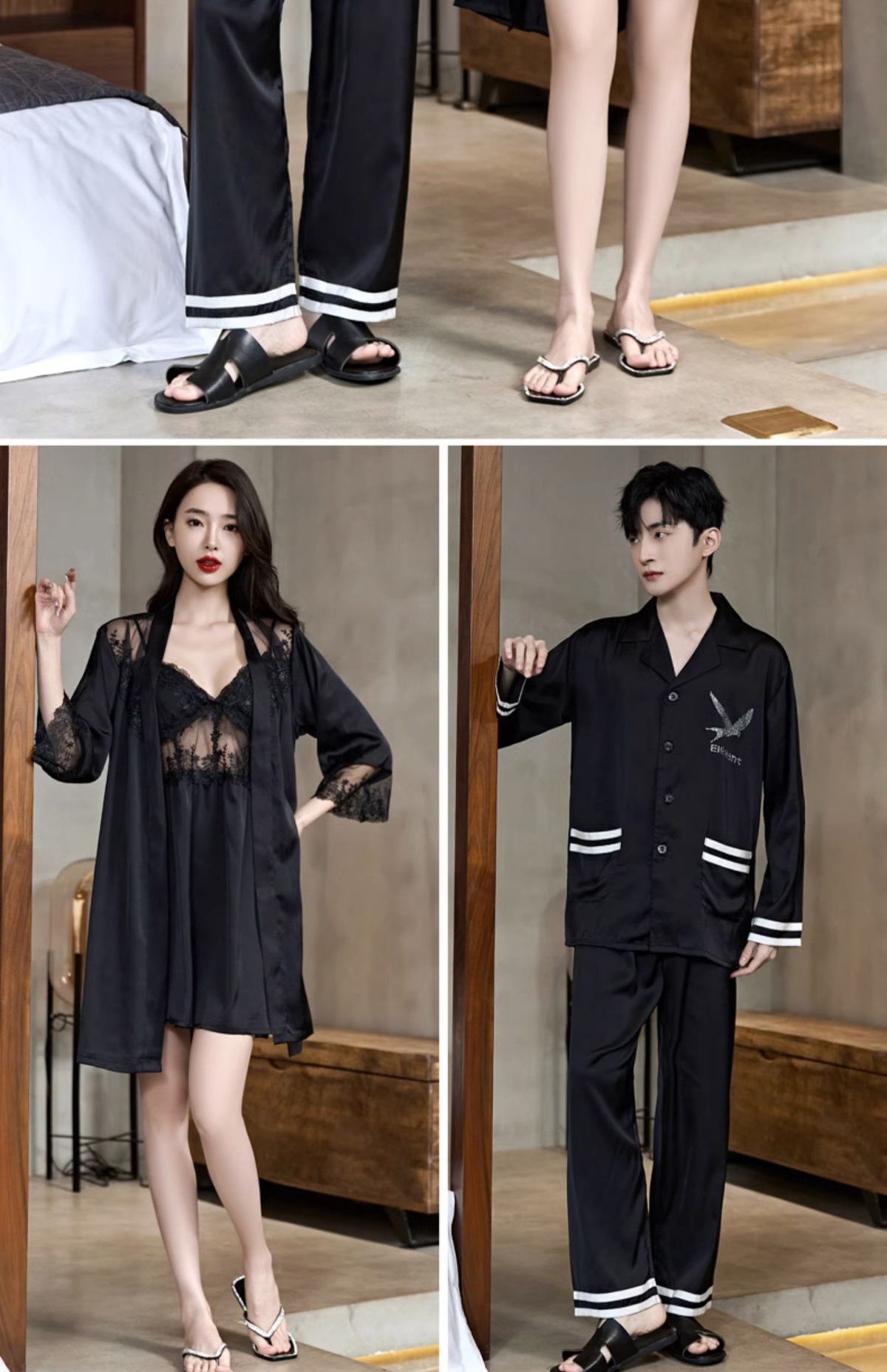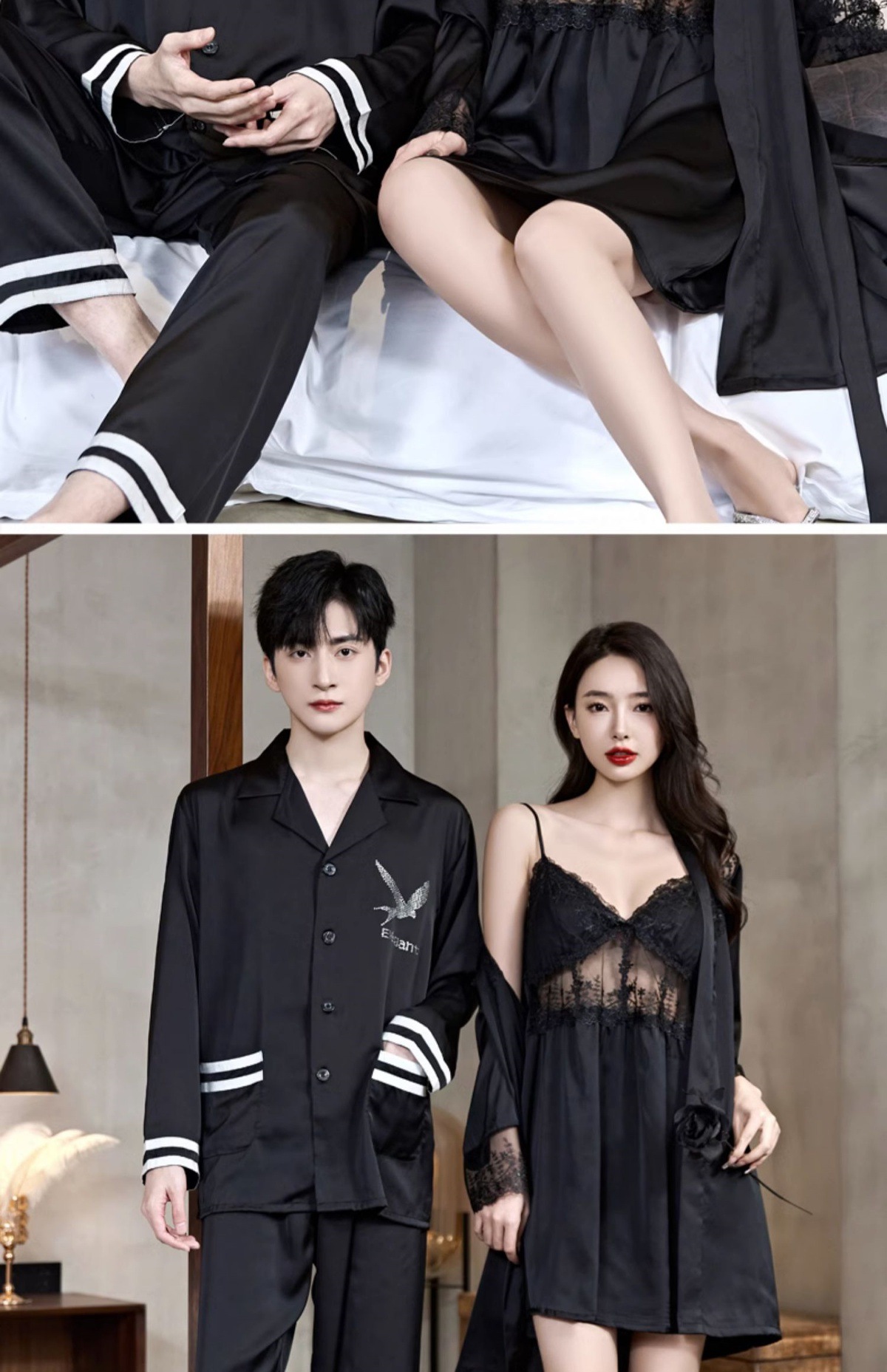 커플 잠옷 여름 얼음 실크 여성 섹시한 순수한 욕망 안티 볼록 슬링 잠옷 여름 남성 반팔