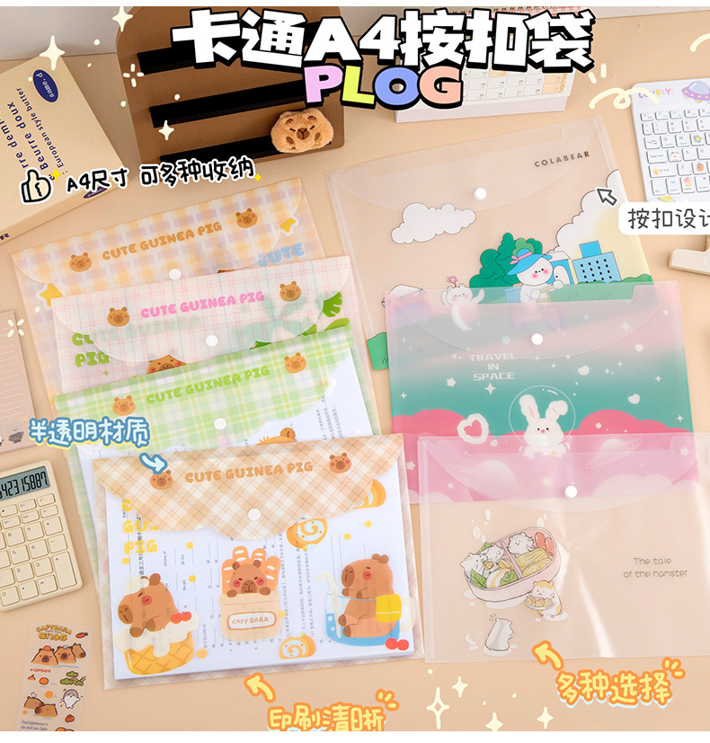 카피 발라 학생 스냅 가방 만화 테스트 종이 저장 가방 방수 a4 플라스틱 투명 문서 가방 보너스 선물스토어 가기