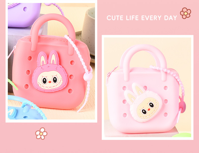 즉시 배송 실리콘 동전 지갑 미니 핸드백 지퍼백 목걸이형 다용도 귀여운 수납 화장품 가방