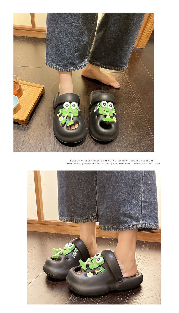 귀여운 만화 한국식 동굴 신발 여성용 샌들과 슬리퍼 2025 여름 미끄럼 방지 해변 학생들의 캐주얼 샌들과 슬리퍼스토어 가기