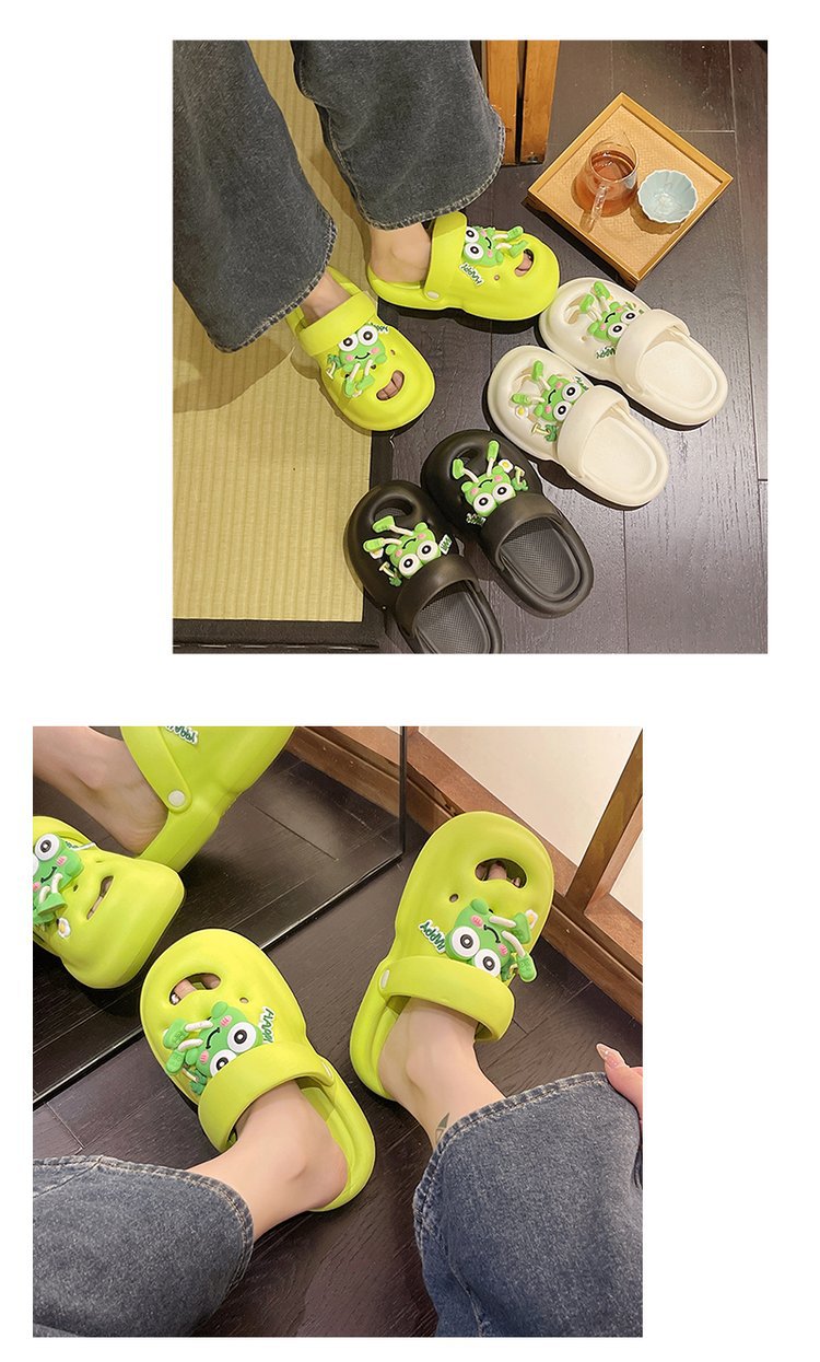귀여운 만화 한국식 동굴 신발 여성용 샌들과 슬리퍼 2025 여름 미끄럼 방지 해변 학생들의 캐주얼 샌들과 슬리퍼