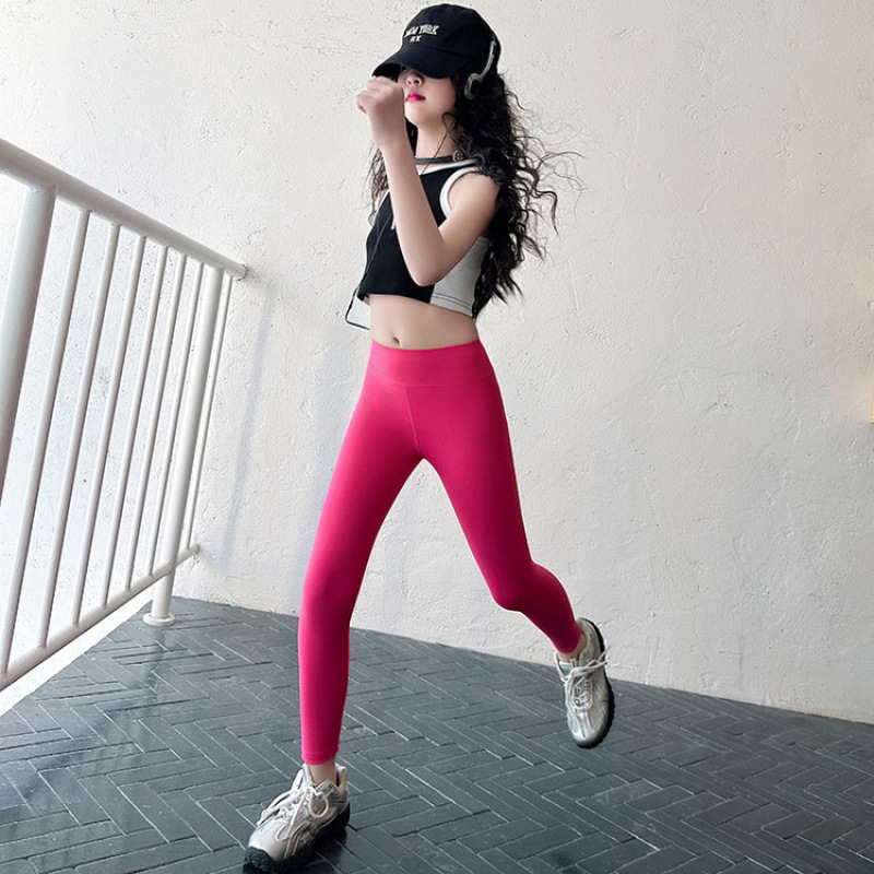 여아 레깅스 여름 얇은 아동용 겉옷 아이스 실크 화이트 상어 바지 큰 어린이 자외선 차단 바비 요가 바지
