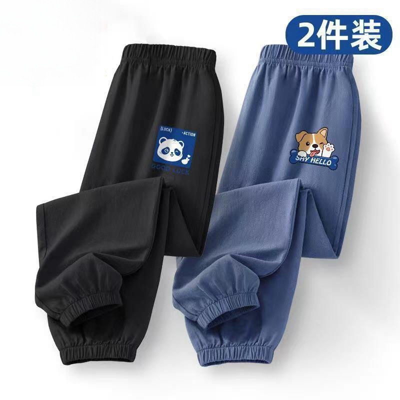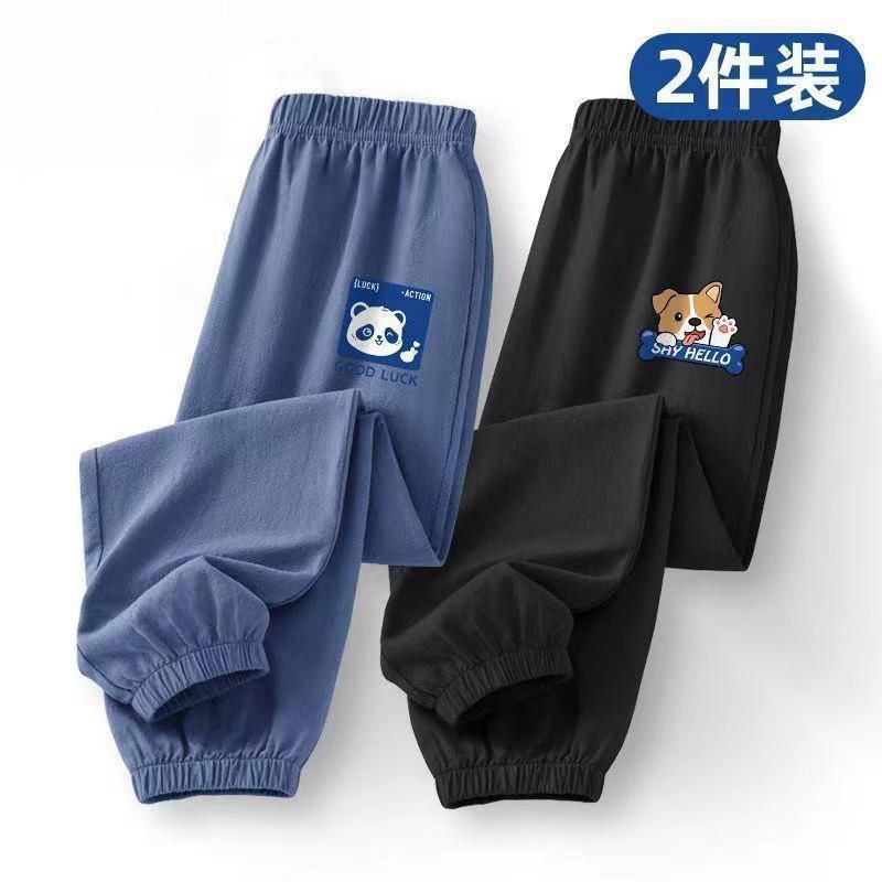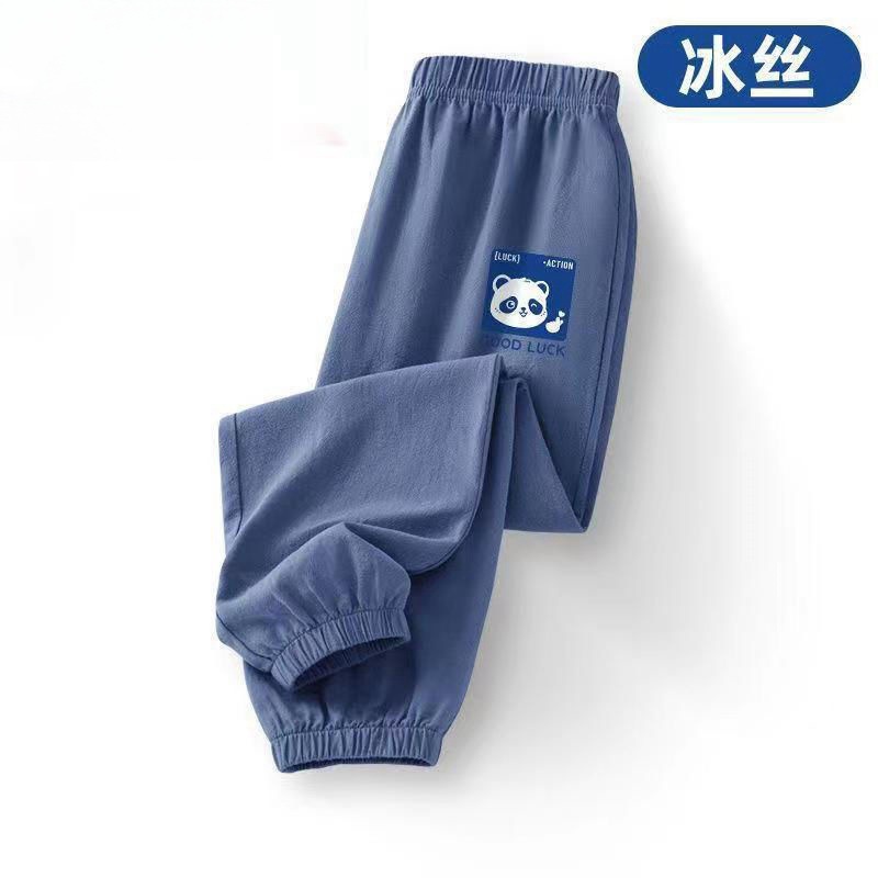소년 얼음 실크 바지 여름 2025 새로운 캐주얼 바지 큰 어린이 얇은 여름 바지 어린이 모기 방지 바지