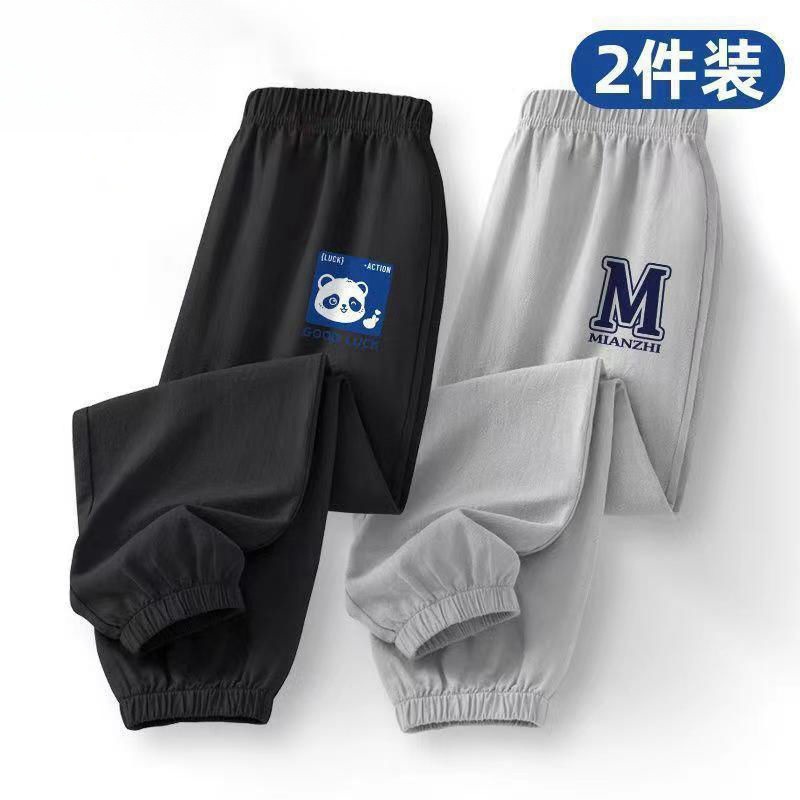 소년 얼음 실크 바지 여름 2025 새로운 캐주얼 바지 큰 어린이 얇은 여름 바지 어린이 모기 방지 바지스토어 가기