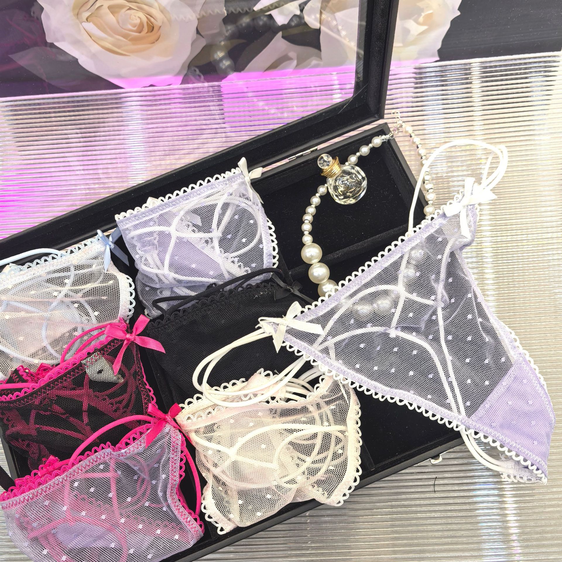 새 스타일 일본식 통기성 경량 폴로 도트 메쉬 여성용 속옷, 웨이스트 밴드 귀여운 통 여성용 달콤하고 섹시한스토어 가기