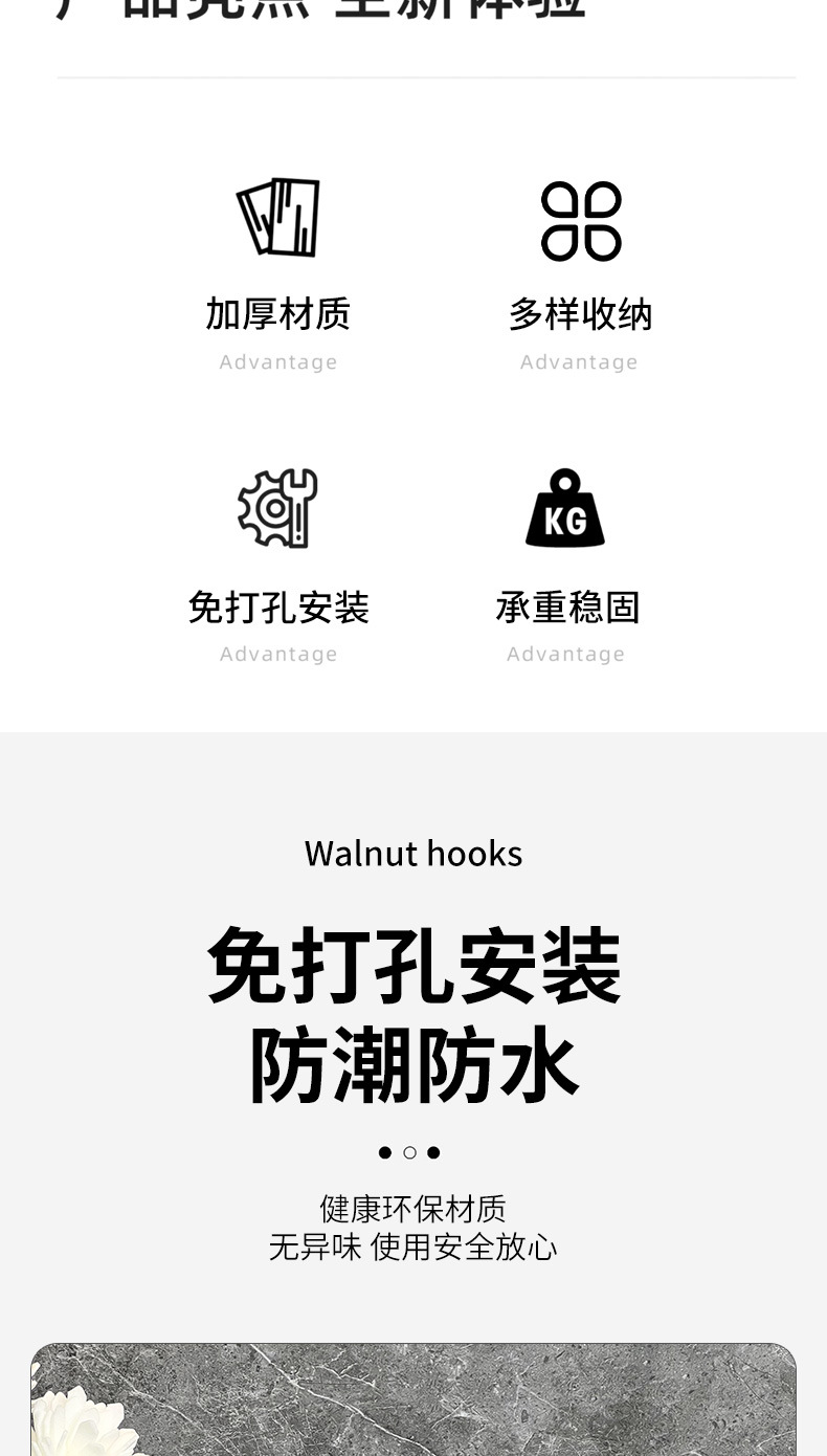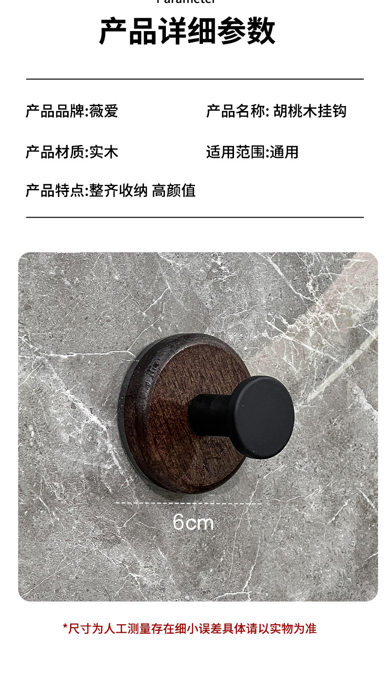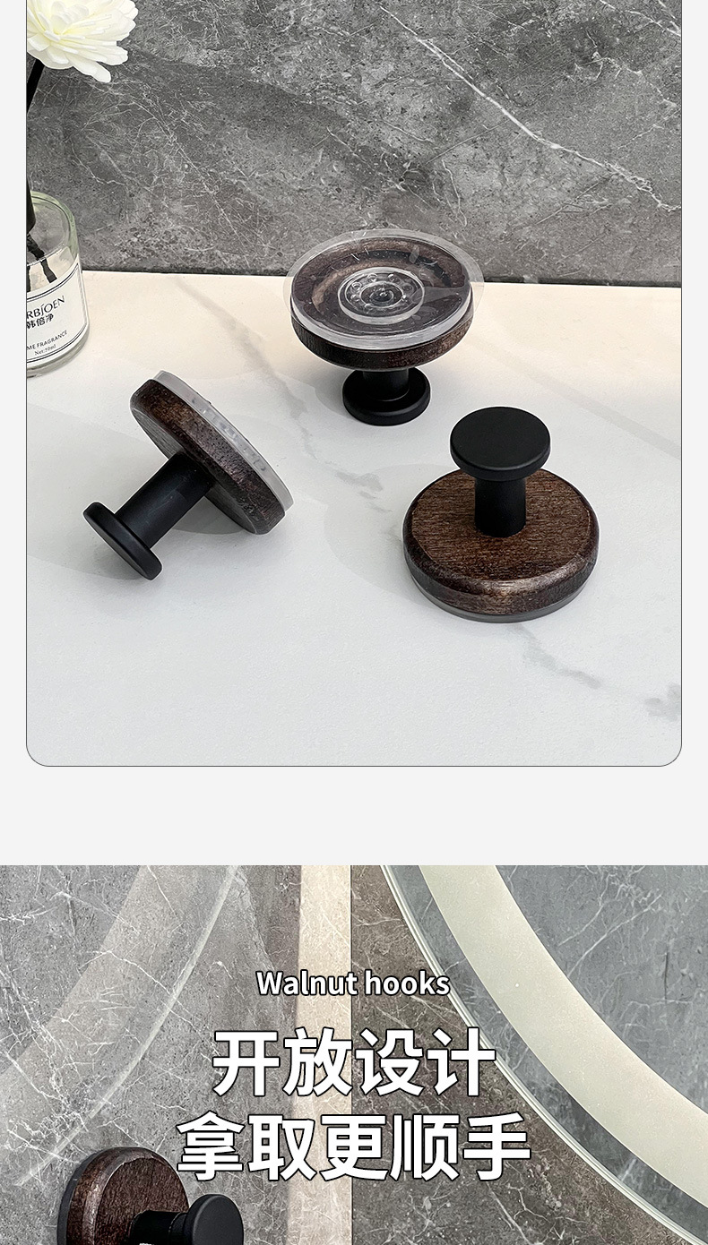 흡입 컵 후크 의류 후크 용 비 천공 도어 후크 욕실을위한 강력한 하중 베어링 원활한 욕실 호두 단단한 나무 후크스토어 가기