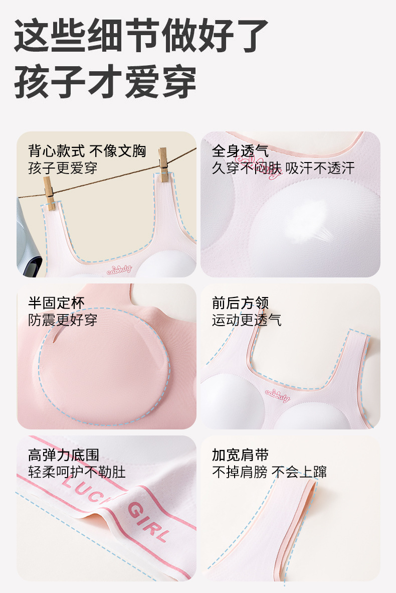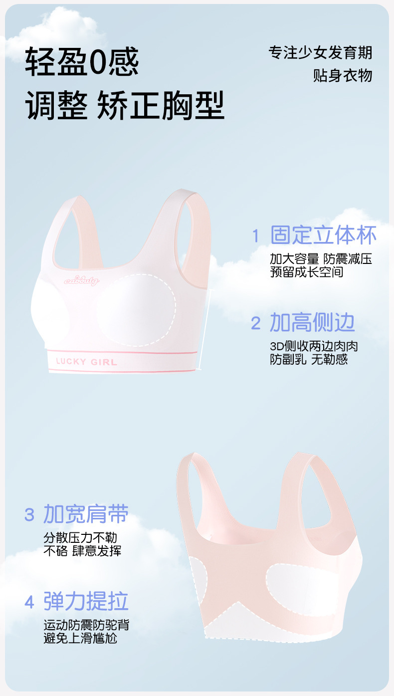 여아 발달형 속옷 중학생 고교생 스포츠 속옷 사춘기 여학생 흔적없는 작은 조끼 브래지어