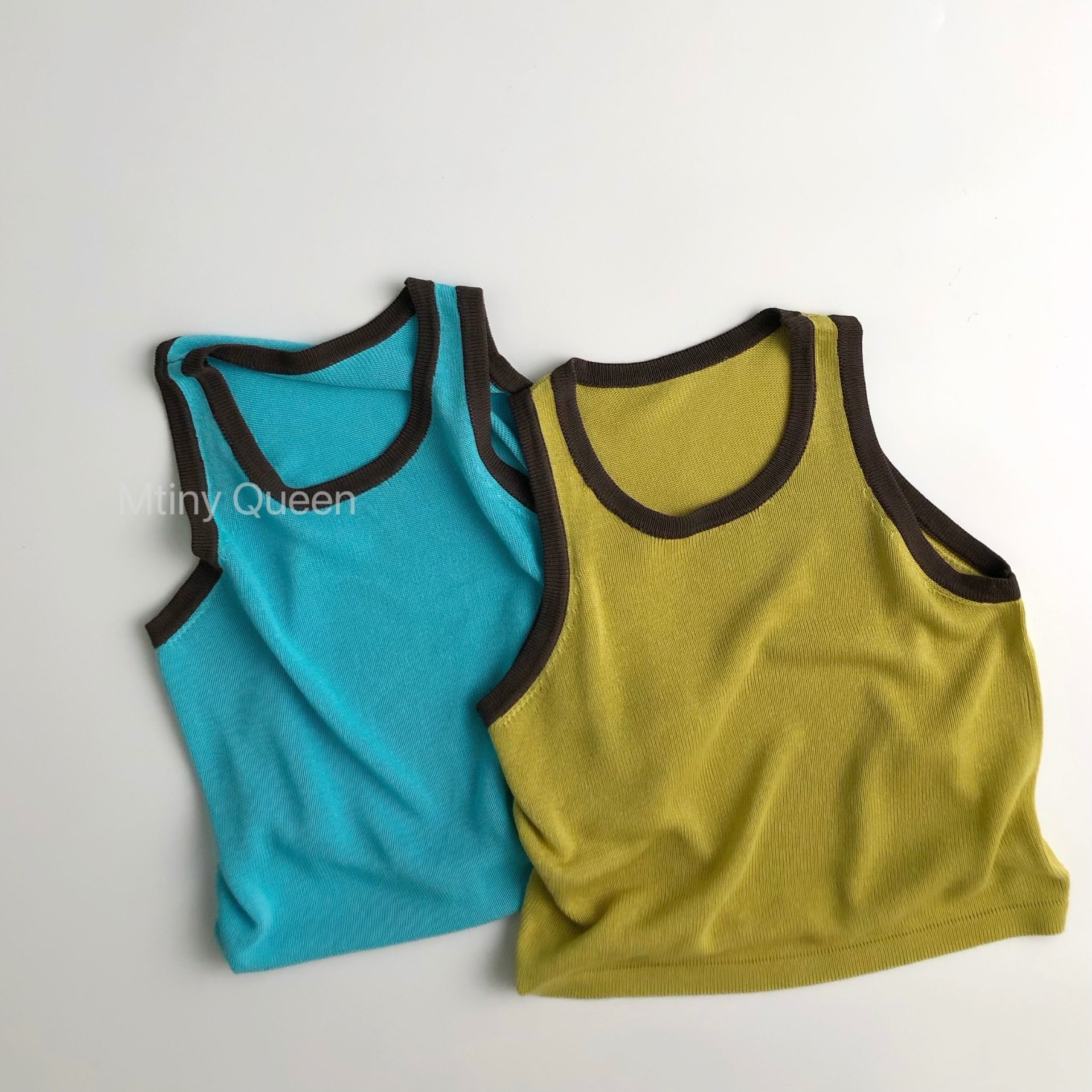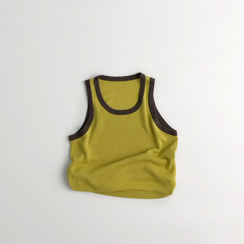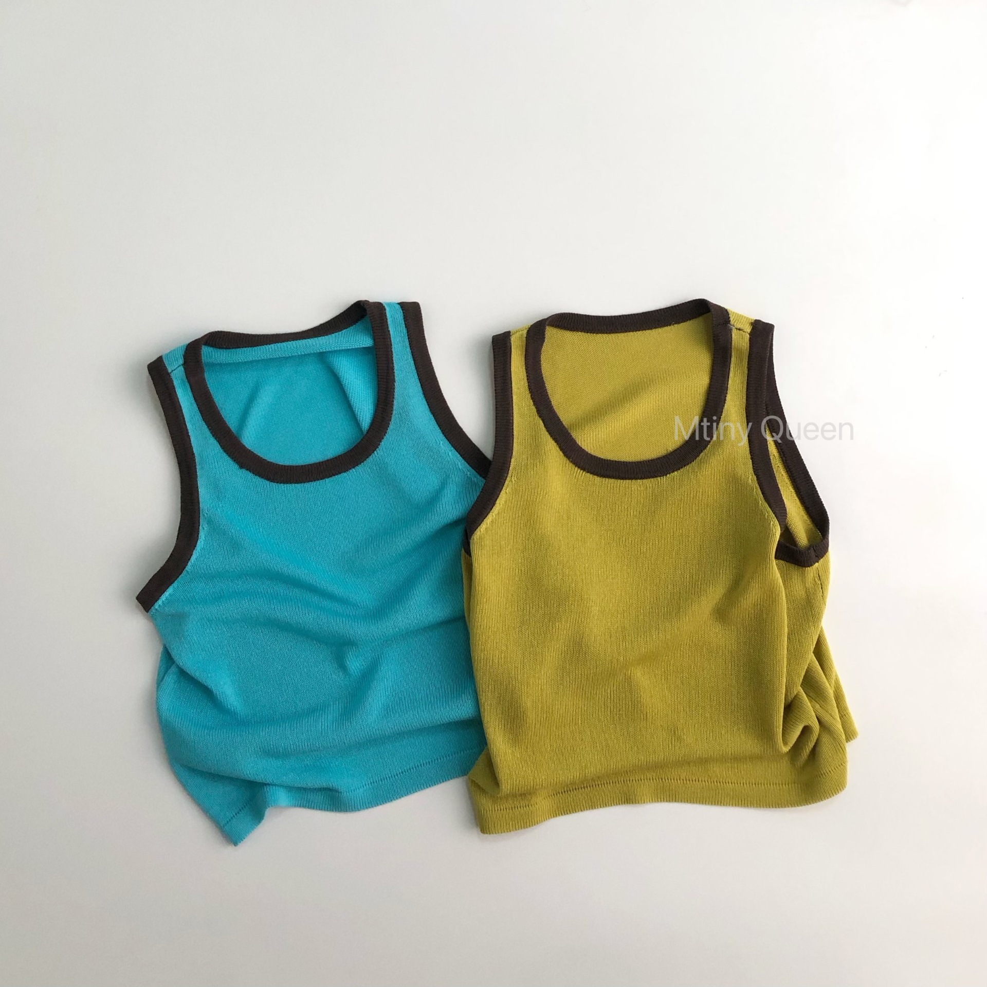 MQ ~ 멋진 어린이 아이스 실크 조끼 여름 새로운 어린이 소년 소녀 니트 짧은 소매 색상 대비 탑