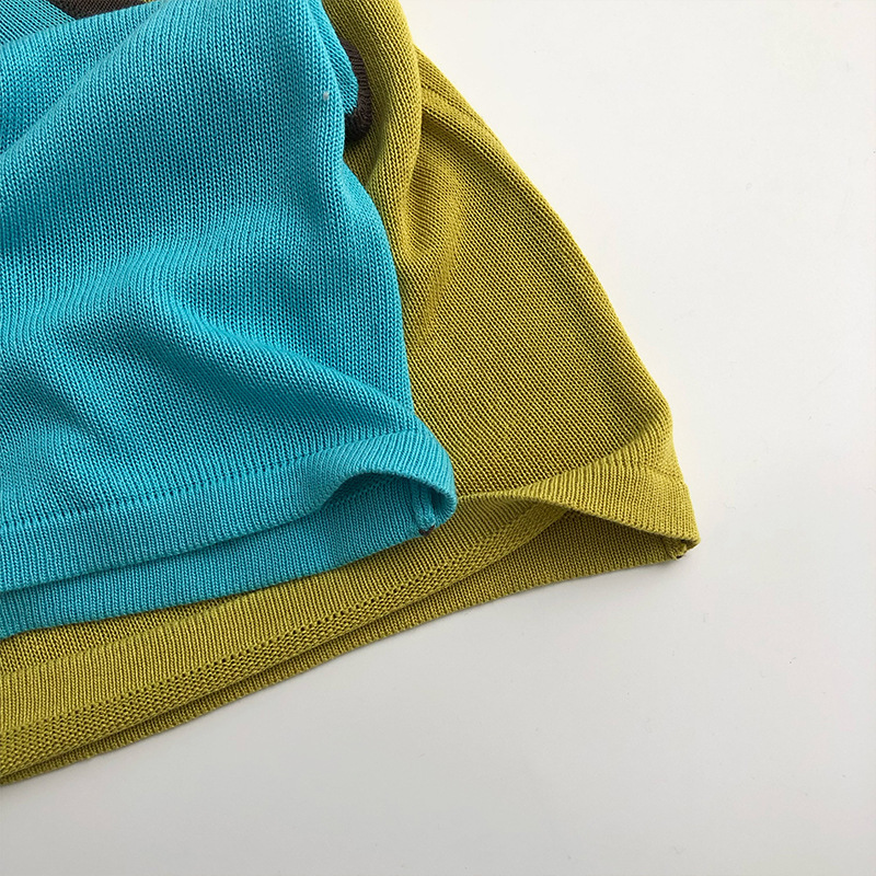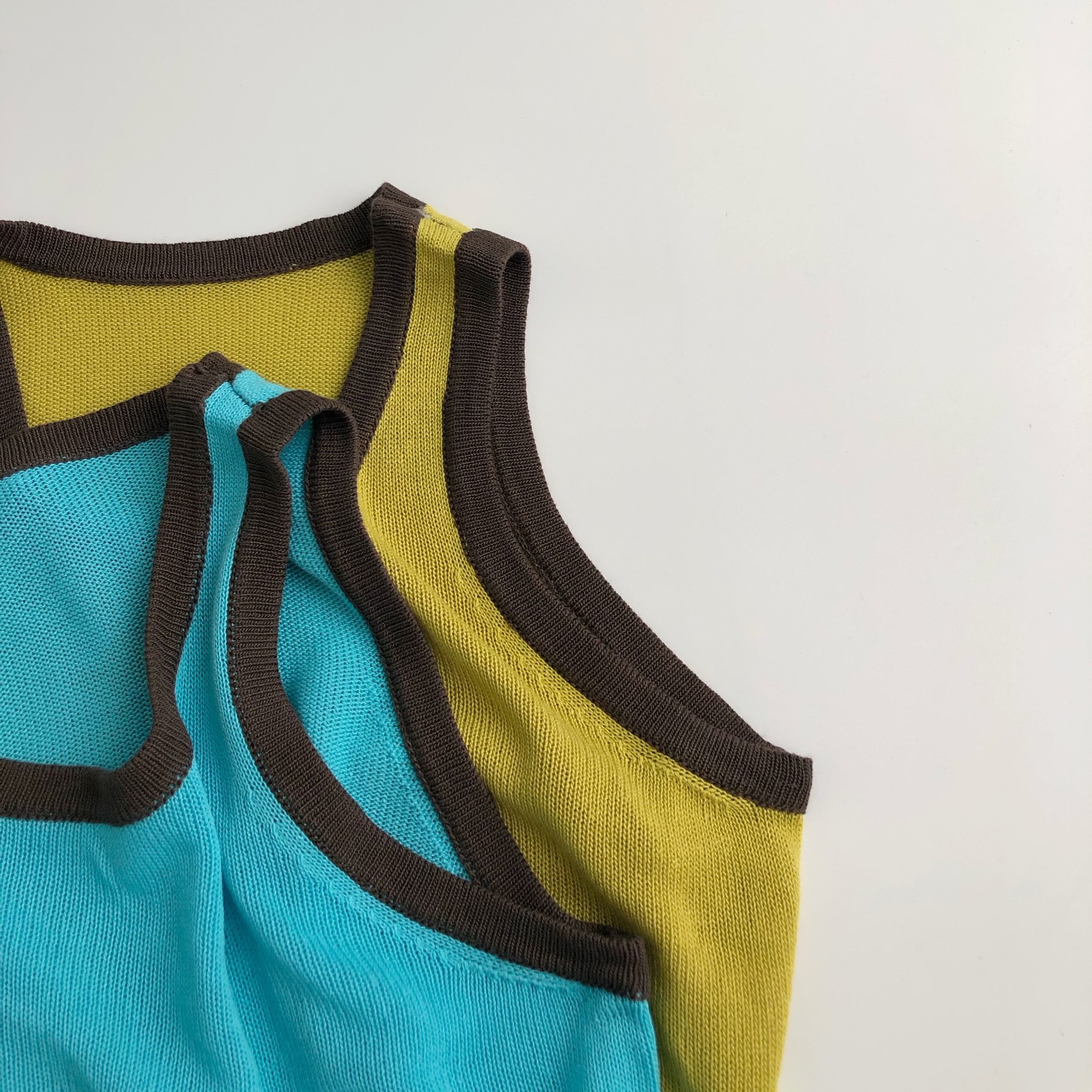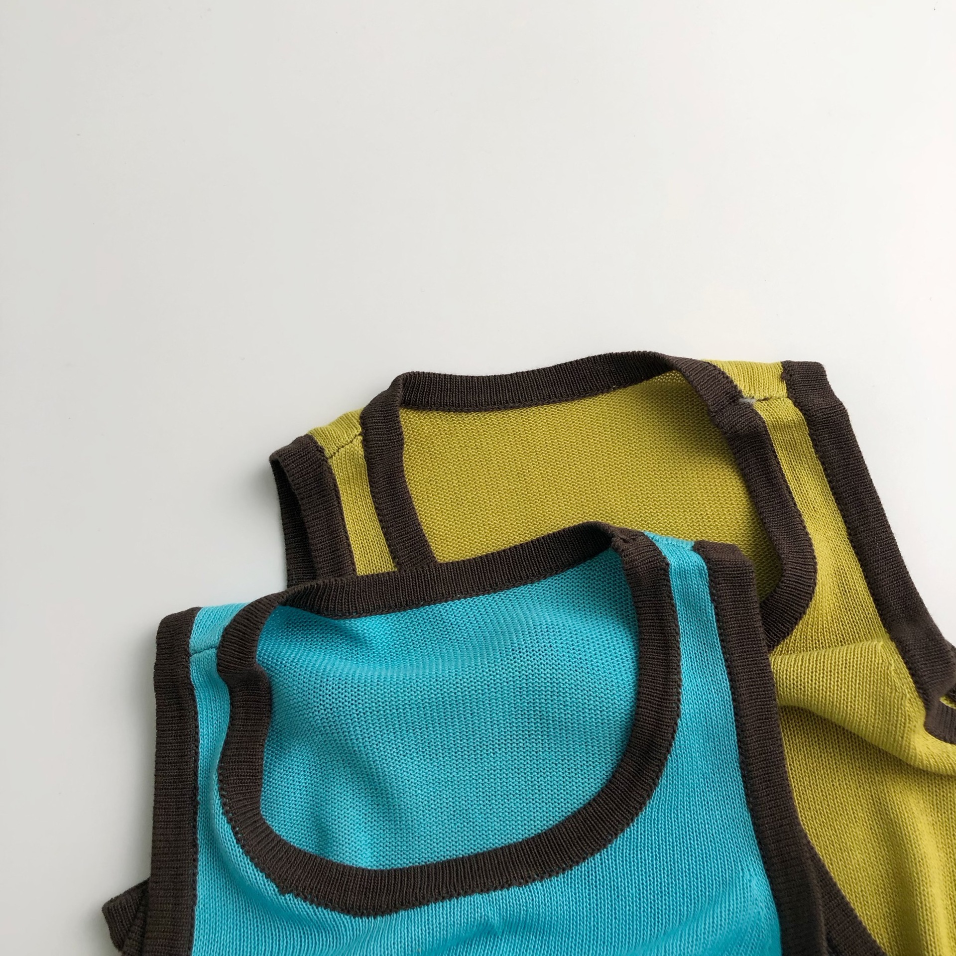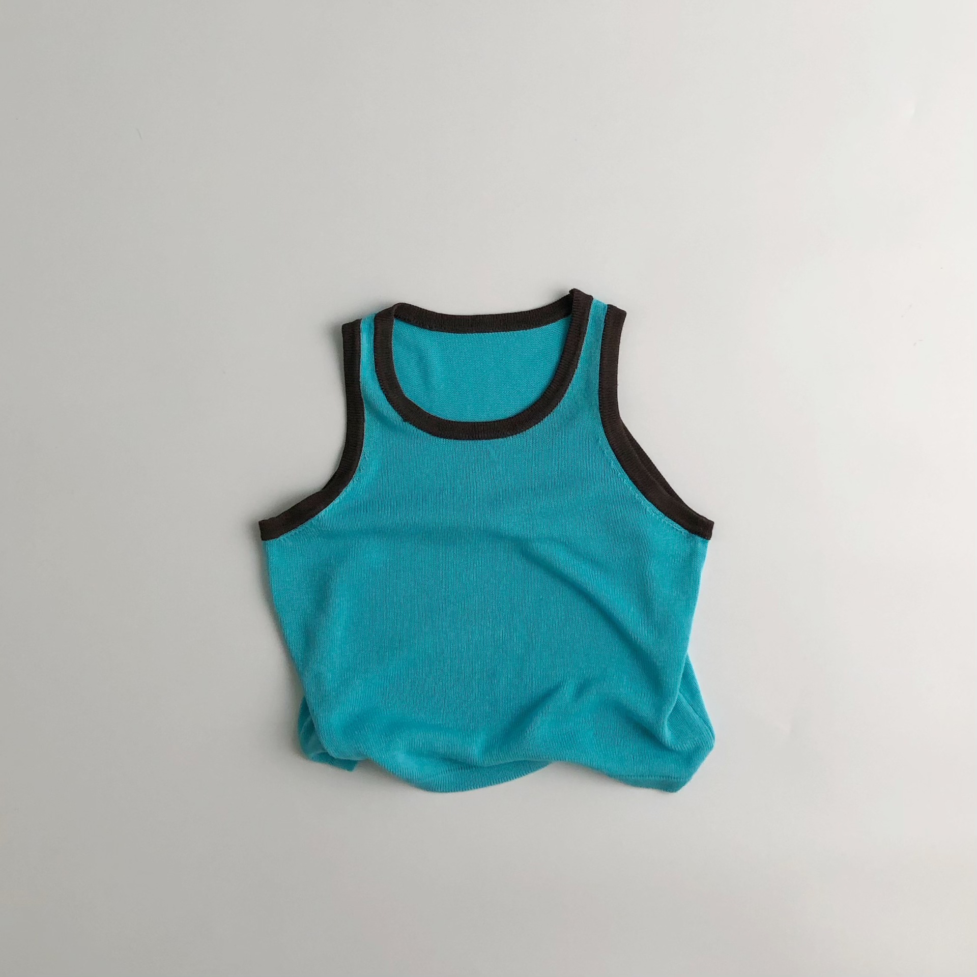 MQ ~ 멋진 어린이 아이스 실크 조끼 여름 새로운 어린이 소년 소녀 니트 짧은 소매 색상 대비 탑스토어 가기