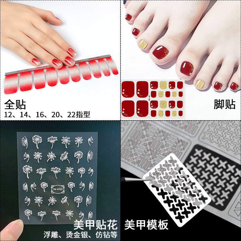 국경 새 인터넷 붉은 발 네일 스티커 그라디언트 양파 파우더 방수 INS 크리스탈 플래시 발톱 네일 스티커 전체 스티커스토어 가기