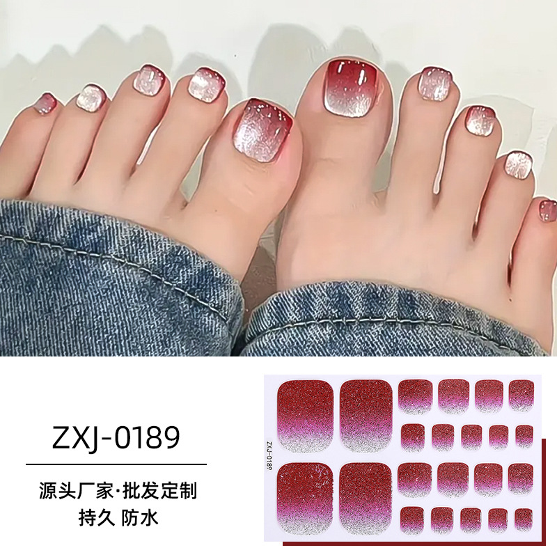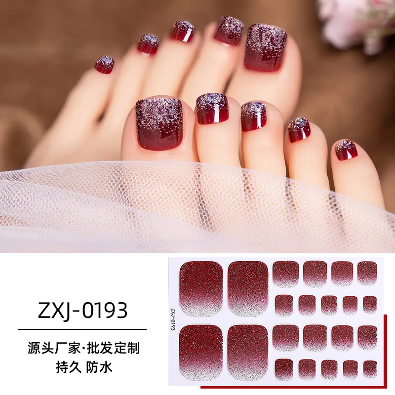 국경 새 인터넷 붉은 발 네일 스티커 그라디언트 양파 파우더 방수 INS 크리스탈 플래시 발톱 네일 스티커 전체 스티커