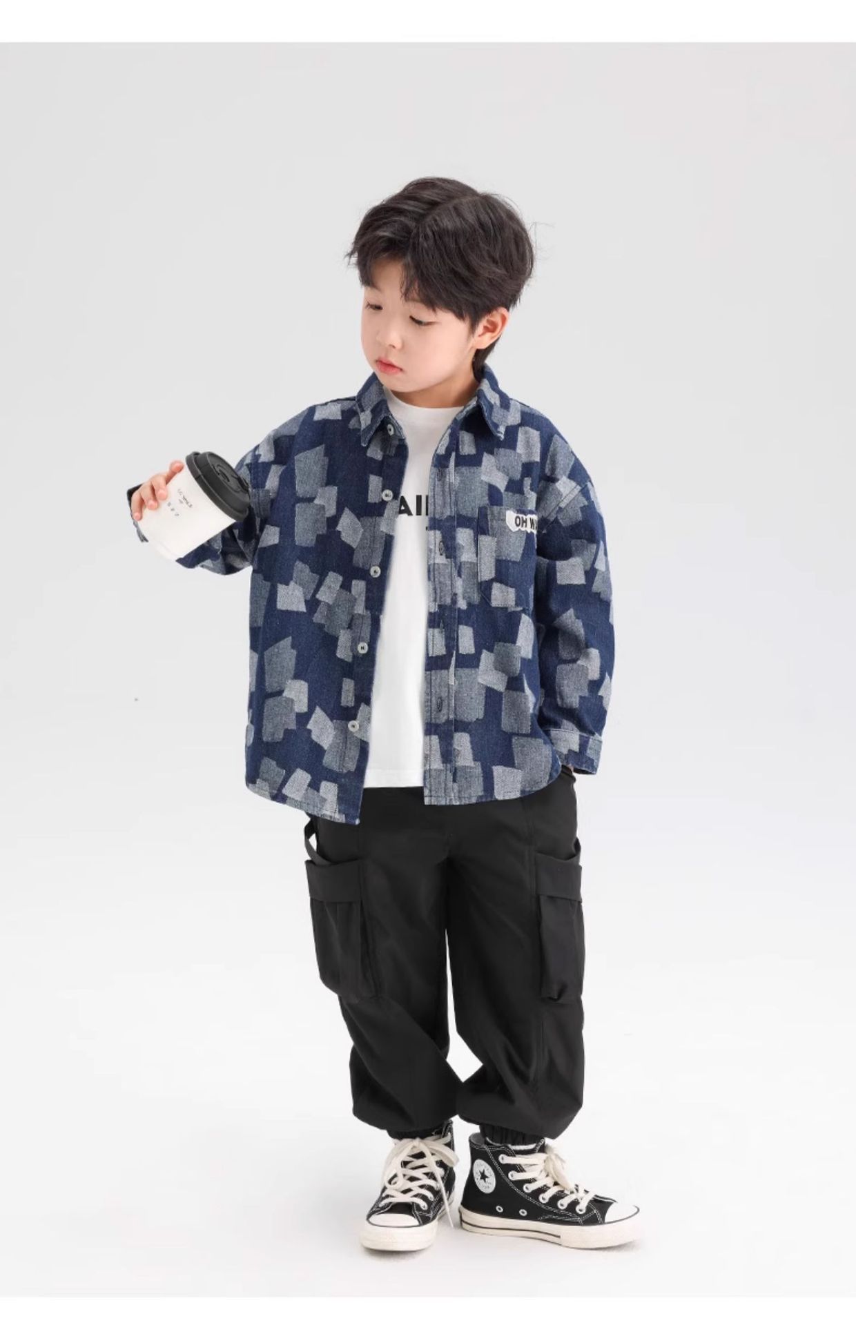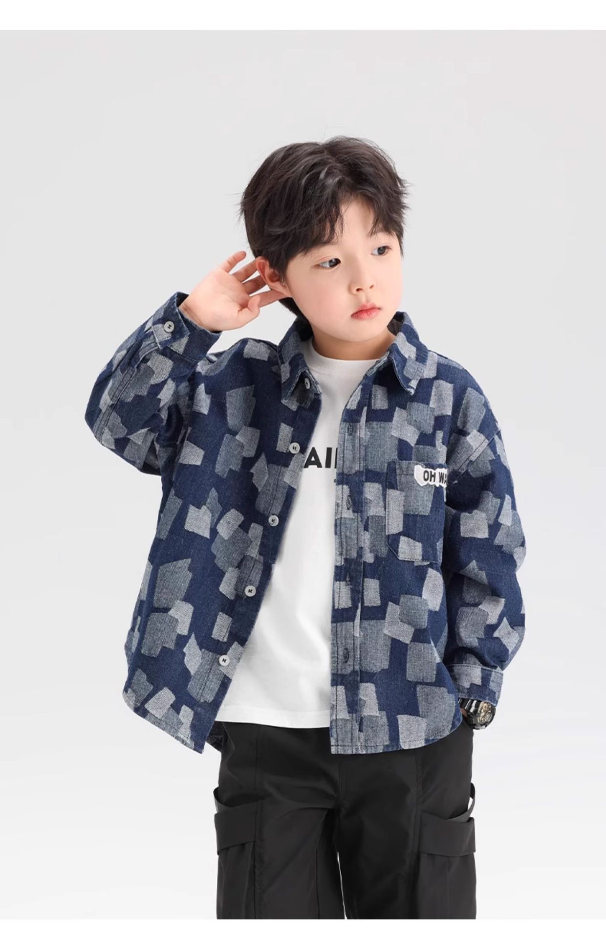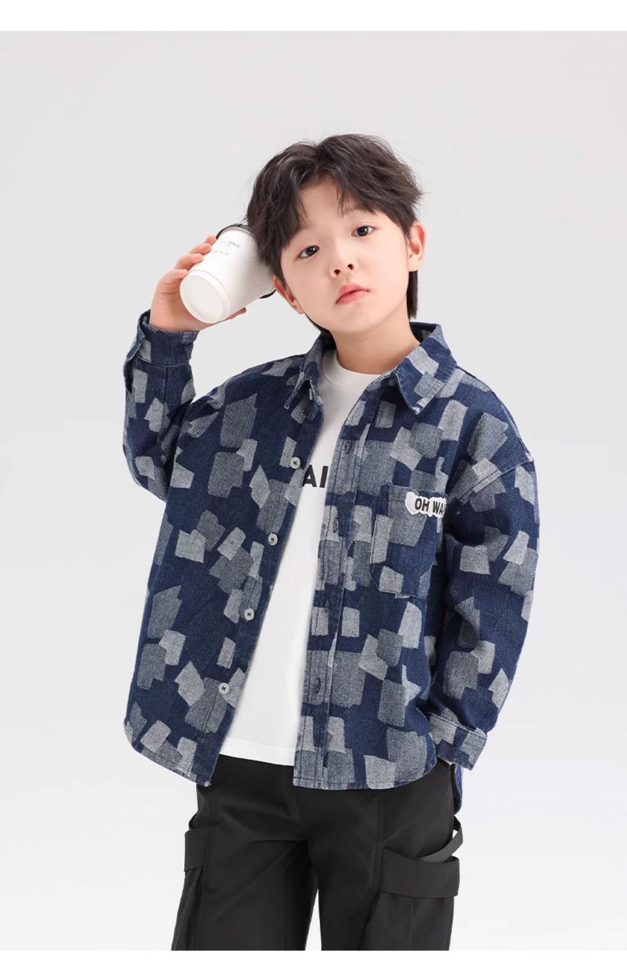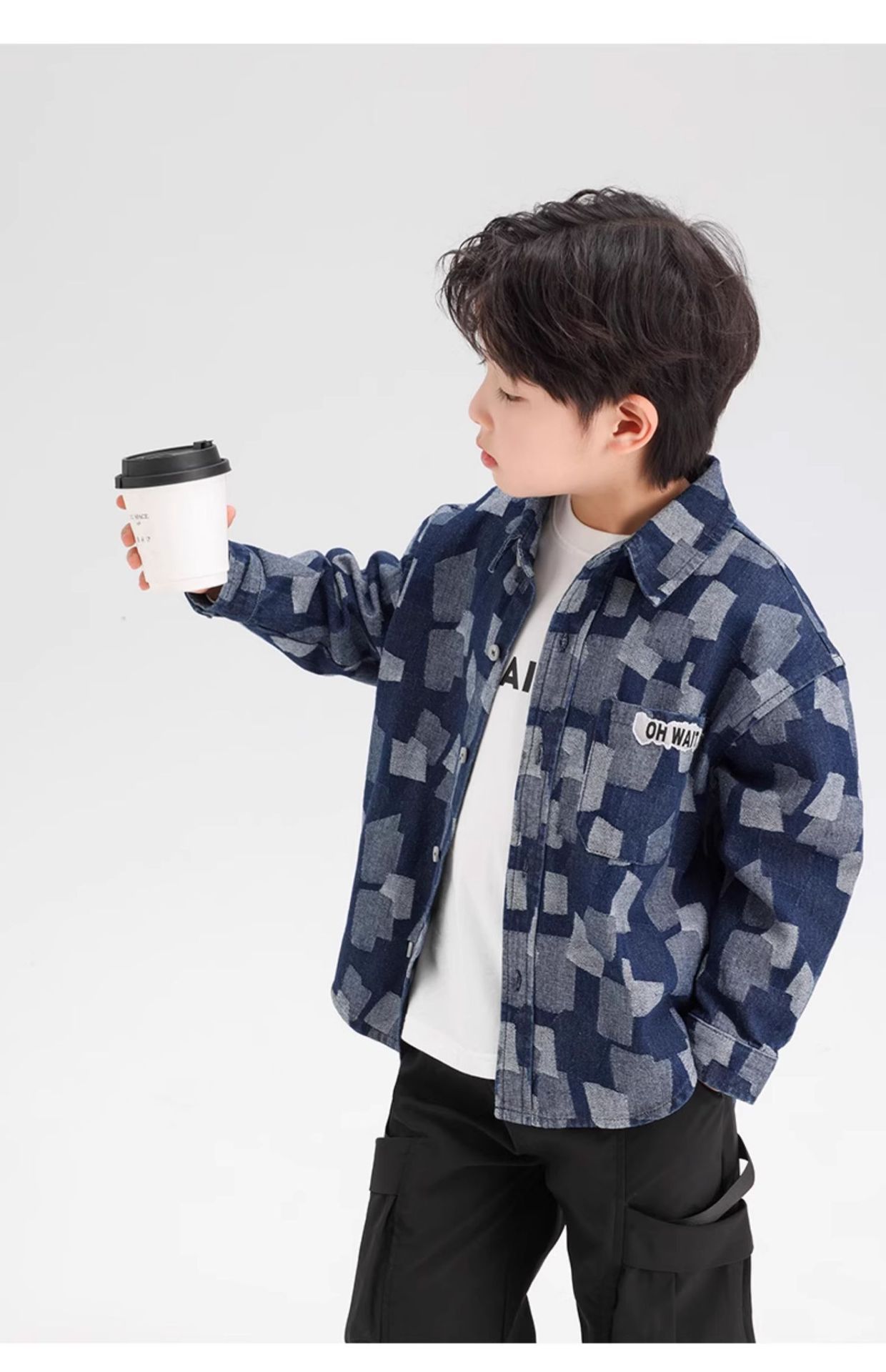 남아용 데님 봄옷 2026 트렌디 상의 한국 스타일 가디건 남아 캐주얼 셔츠 아동용 멋진 옷스토어 가기