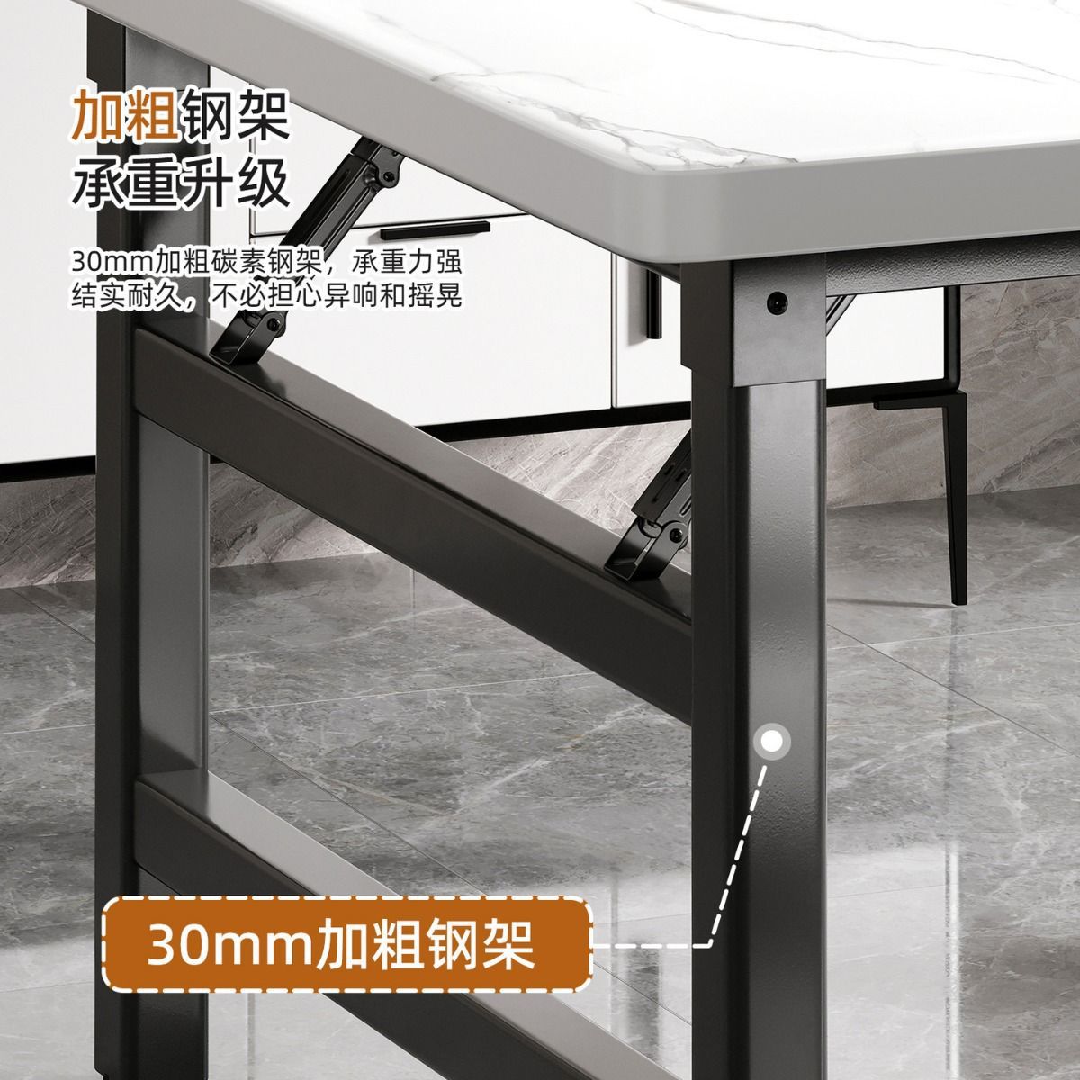 • 업그레이드된 이중 크로스 브레이스 [화이트 마블 컬러] 80*80*75 블랙 프레임