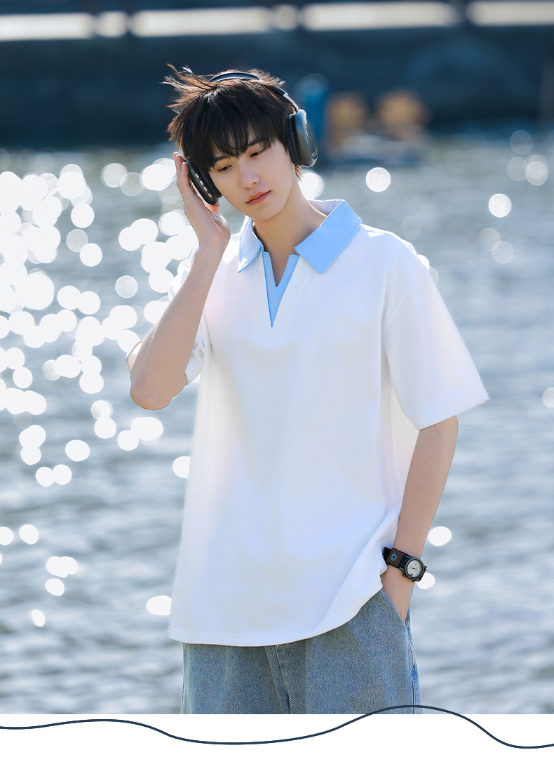 [Yipinyuan] 7A 항균-YPY-8893-P 소사이즈 25 라지 사이즈 28 라지 사이즈 컬러 블록 남성용 폴로 셔츠