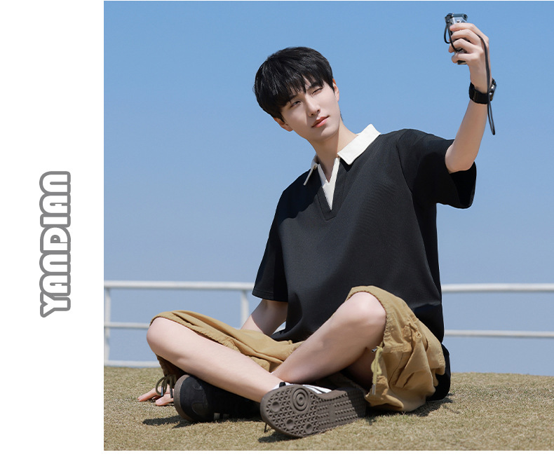 [Yipinyuan] 7A 항균-YPY-8893-P 소사이즈 25 라지 사이즈 28 라지 사이즈 컬러 블록 남성용 폴로 셔츠스토어 가기