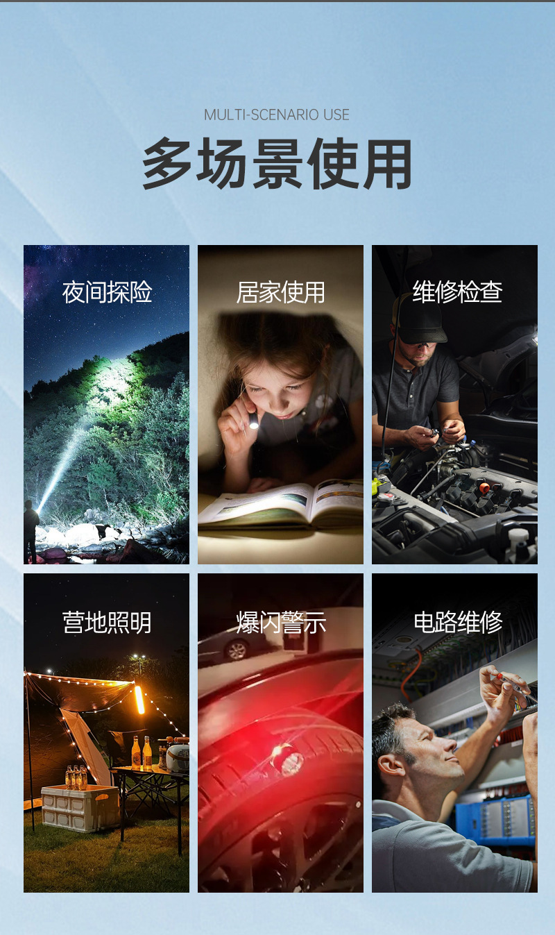 10.远离易燃物:在使用本品时,尤其是长时间开启高亮度模式,灯头部位可能会产生一定热量。使用过程中,要远离纸张、布料、干草等易燃物品,避免因热量积聚引发火灾。