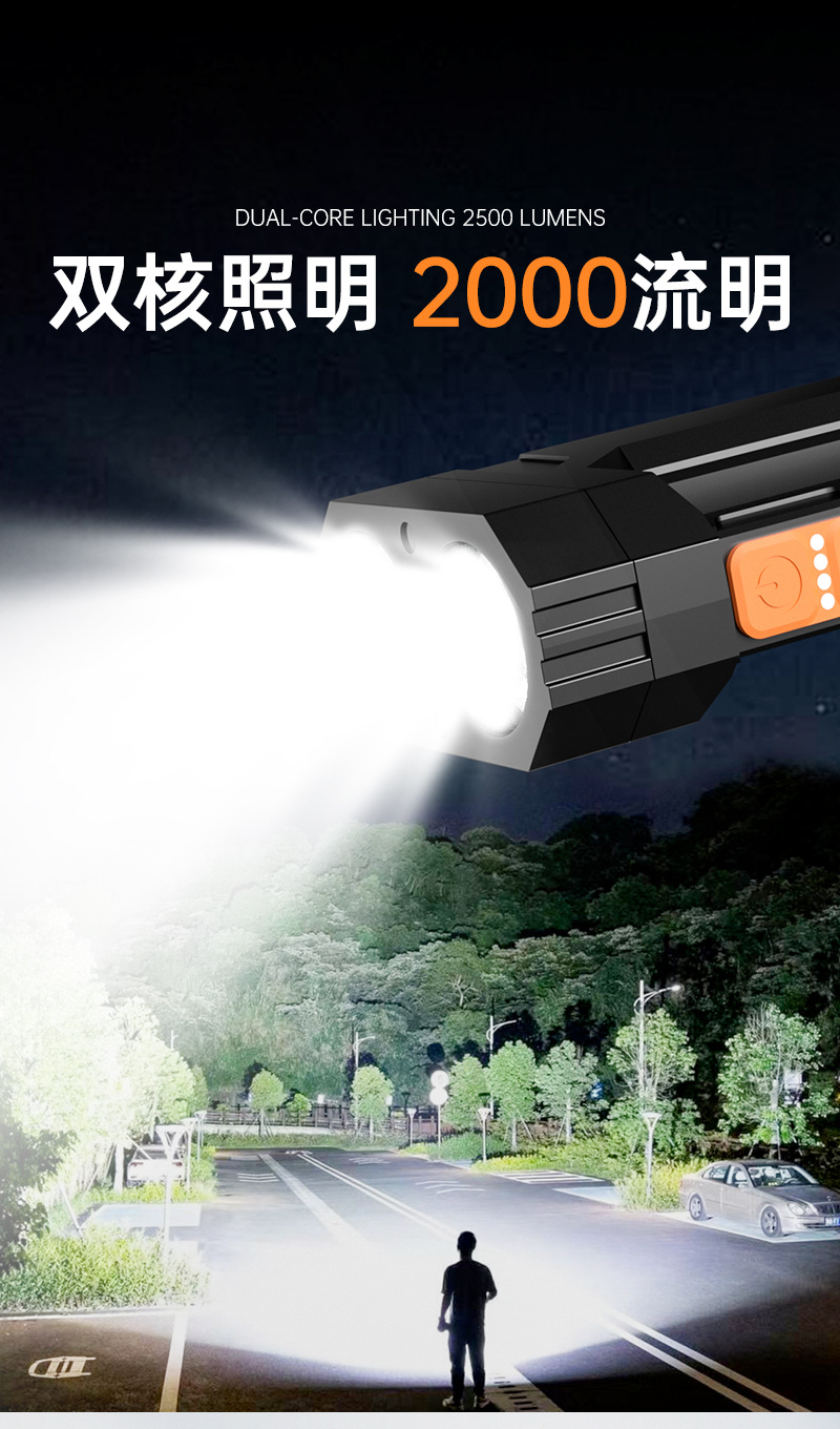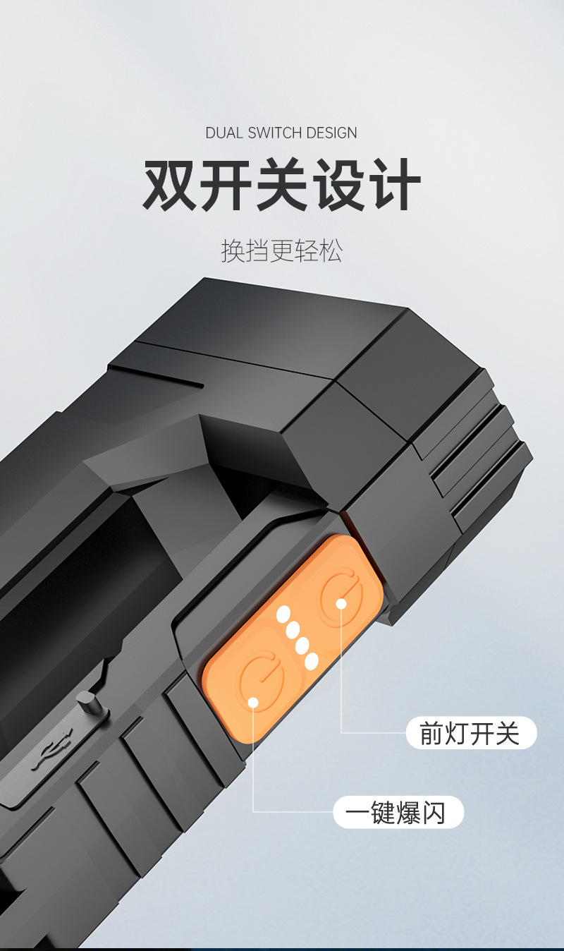 야외용 강력한 빛, 이중 스위치 충전식 휴대용 EDC 다단계 전력 표시 비상 조명 전술 손전등스토어 가기