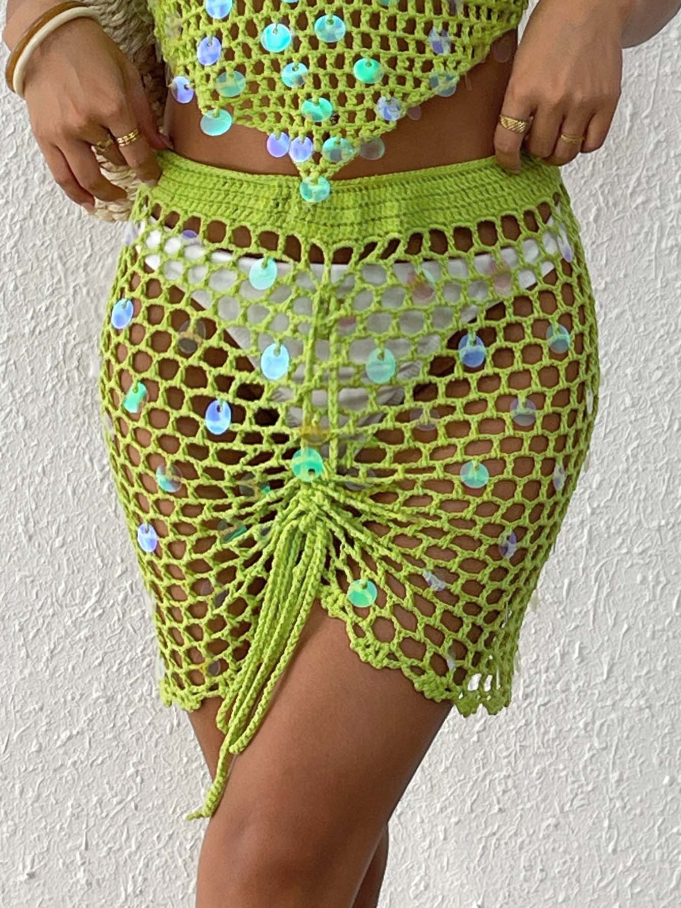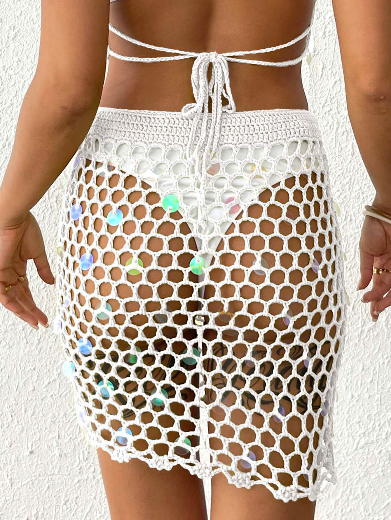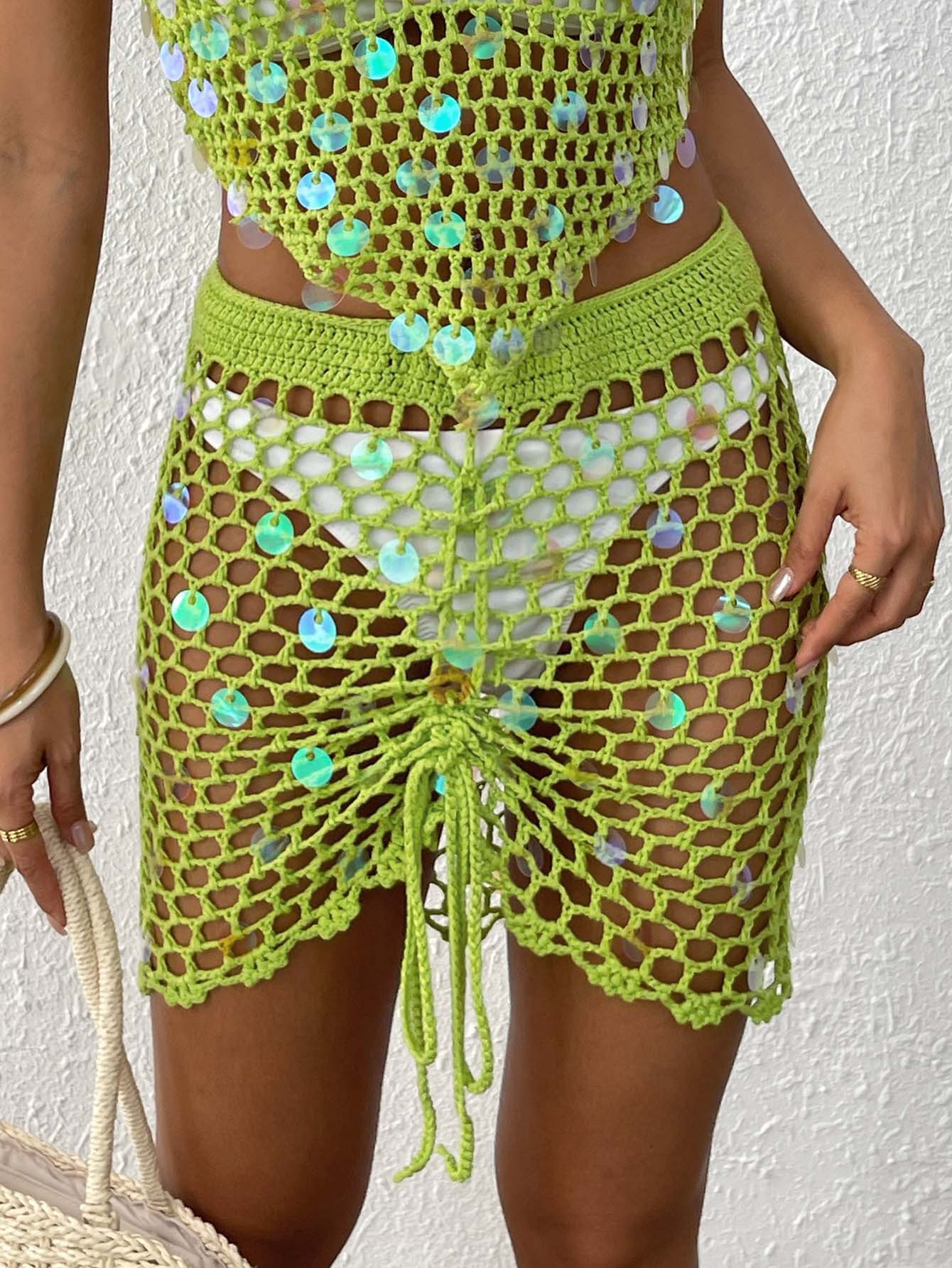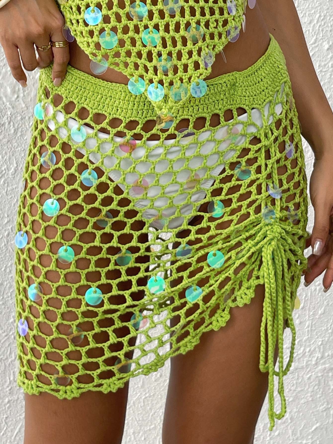 여성 홀리데이 비치 여성 의류 스퀸 스티칭 퓨어 훅 불규칙한 드로스트링 타이 업 스커트 할로우 스커트스토어 가기
