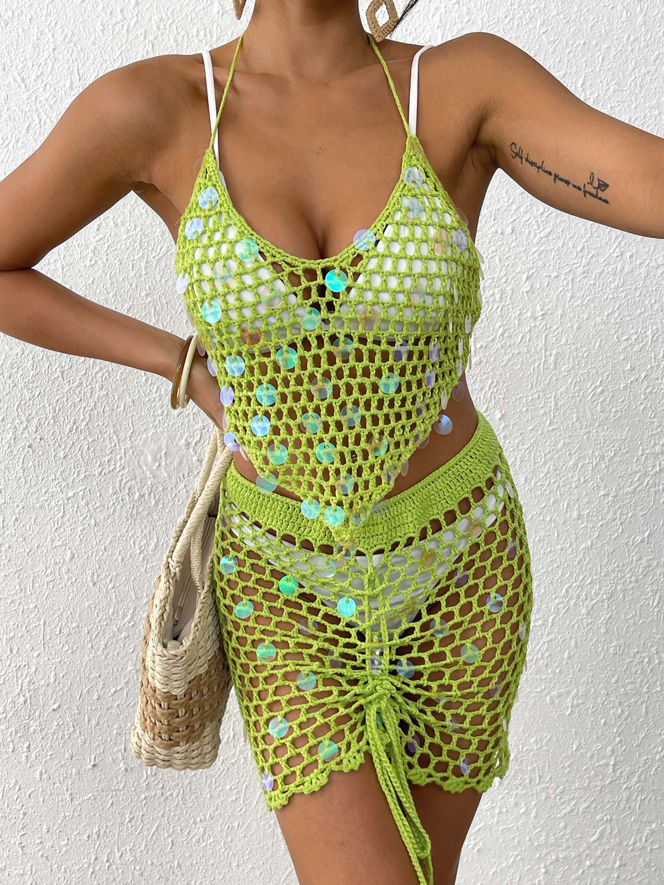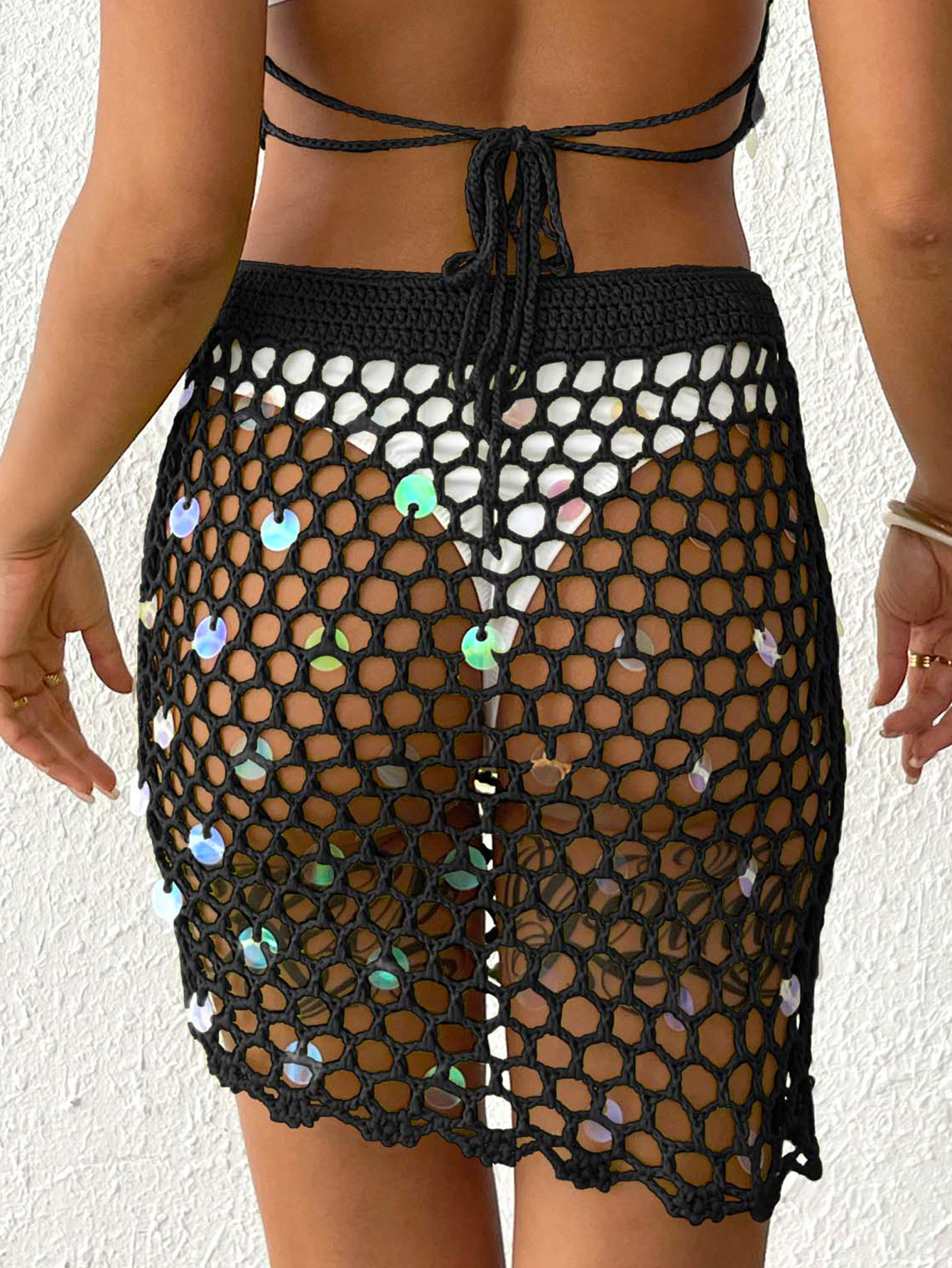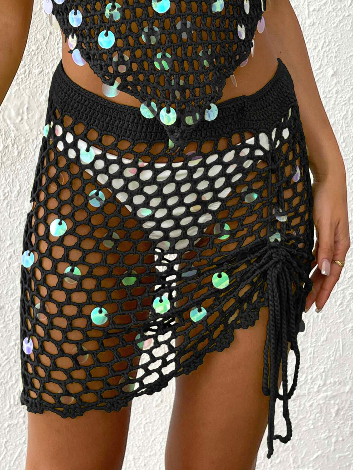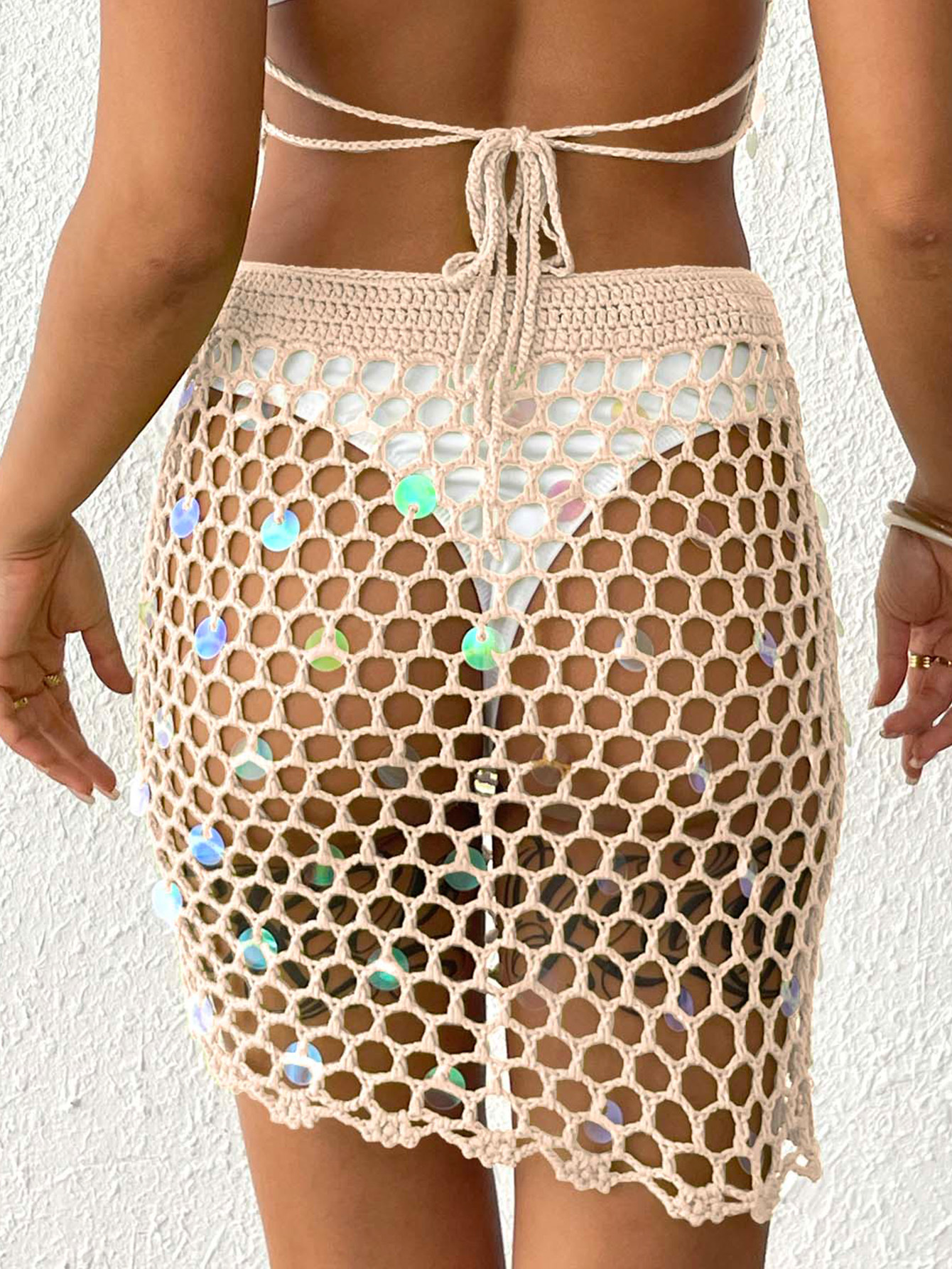 여성 홀리데이 비치 여성 의류 스퀸 스티칭 퓨어 훅 불규칙한 드로스트링 타이 업 스커트 할로우 스커트스토어 가기