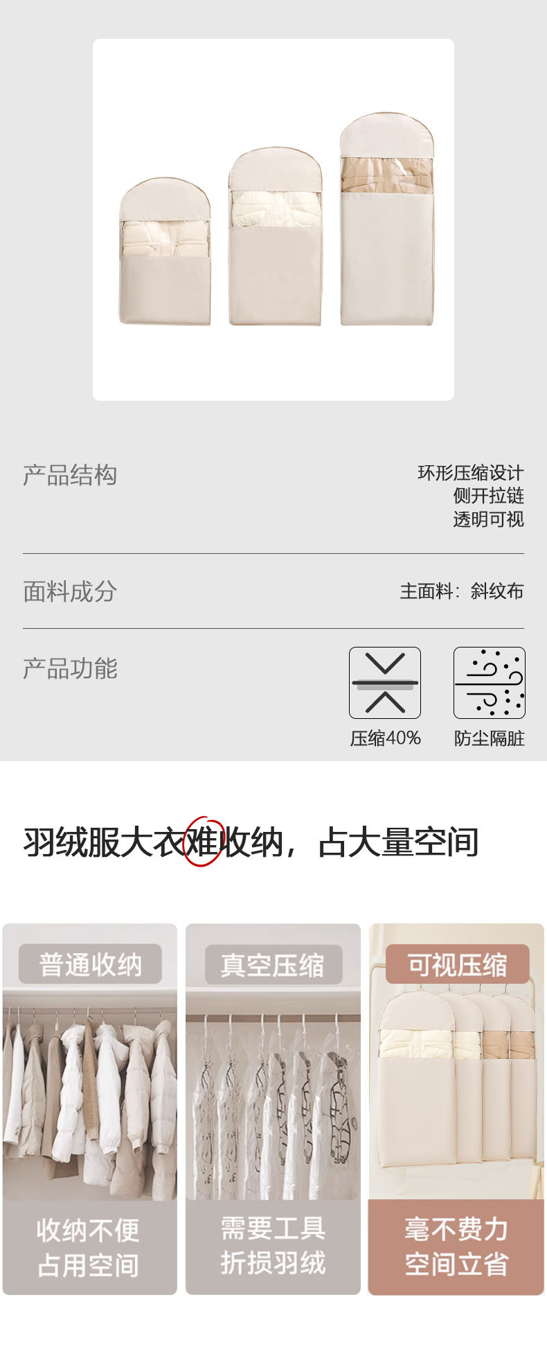 눈에 보이는 투명 압축 다운 재킷 보관 가방 교수형 가방 옷 보관 가방 옷장 먼지 커버 보관 가방