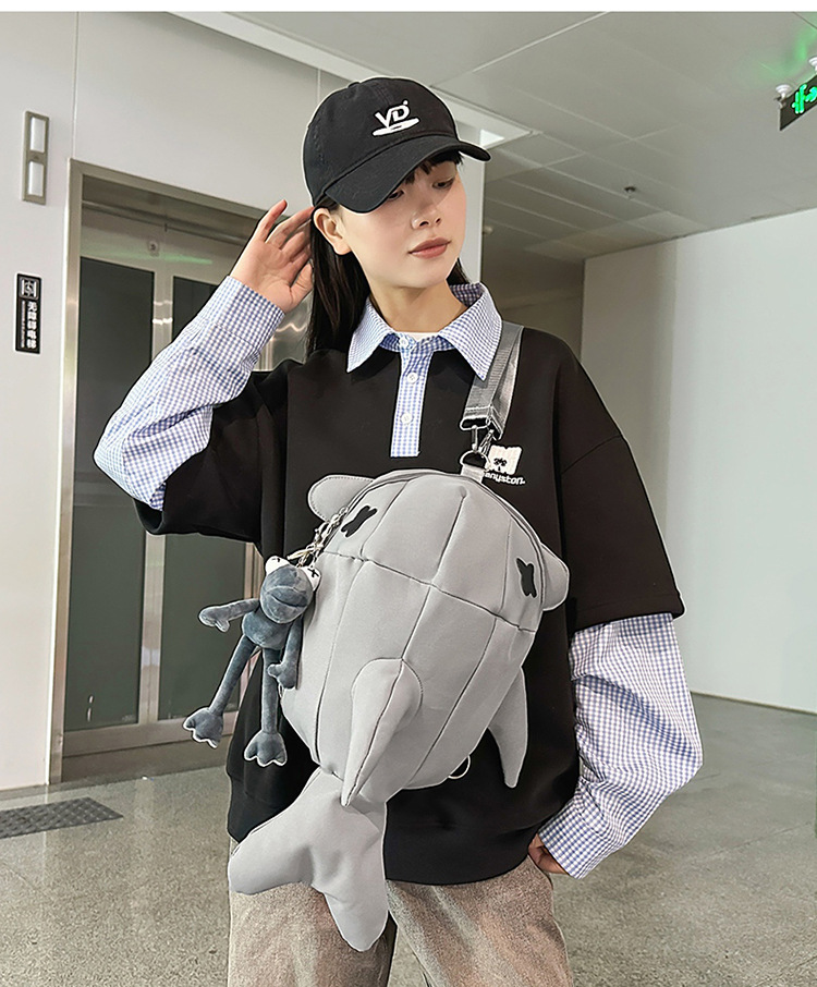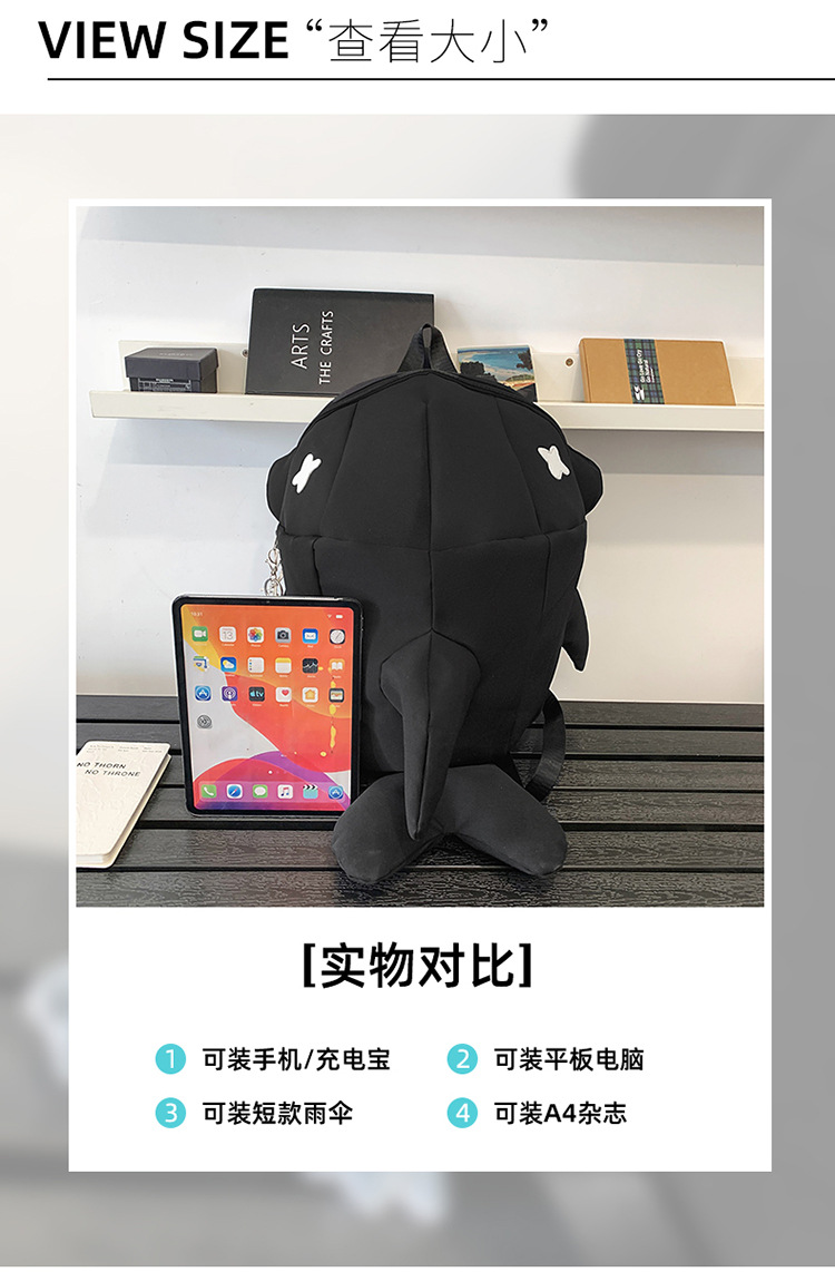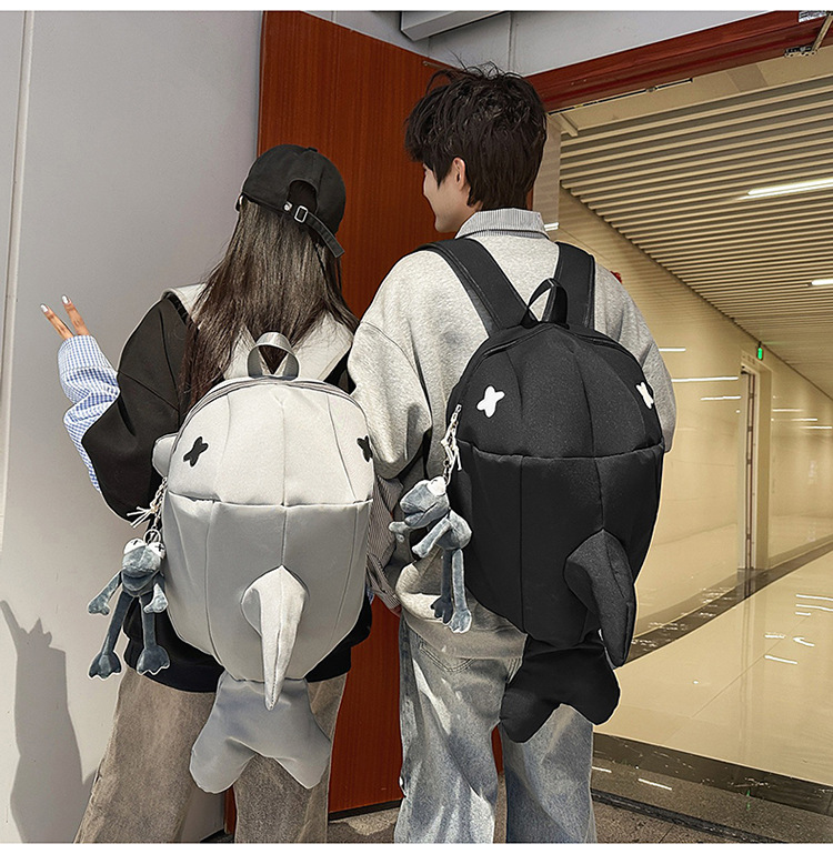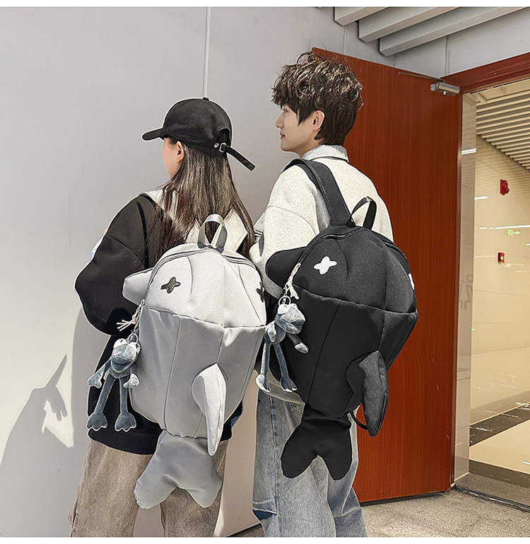 남자와 여자를위한 창조적 인 만화 상어 배낭 독특한 재미 유행 정보 학생 배낭 대용량 캐주얼 스쿨 백