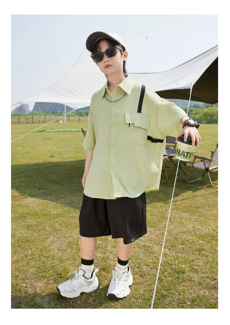 소년 여름 세트 2025 새로운 어린이 여름 반팔 셔츠 빅 보이 여름 서양식 투피스 세트스토어 가기