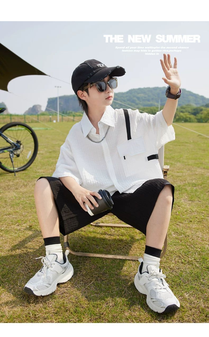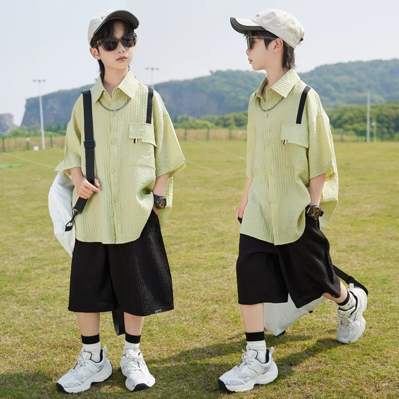 소년 여름 세트 2025 새로운 어린이 여름 반팔 셔츠 빅 보이 여름 서양식 투피스 세트