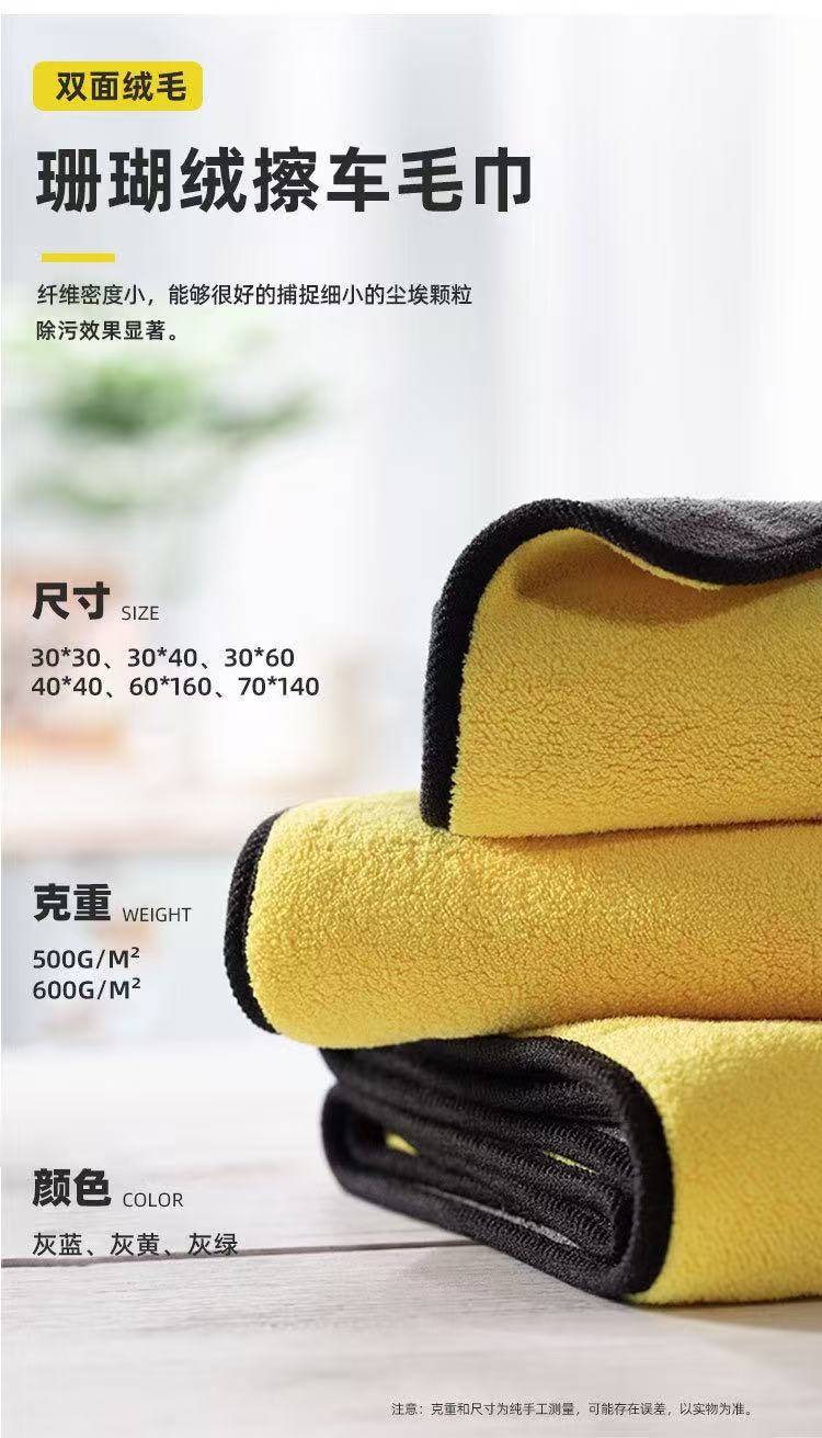자동차 세척 수건 양면 산호 양털 자동차 닦는 천 유리 청소 타월 흡수성 머리없는 두꺼운 차