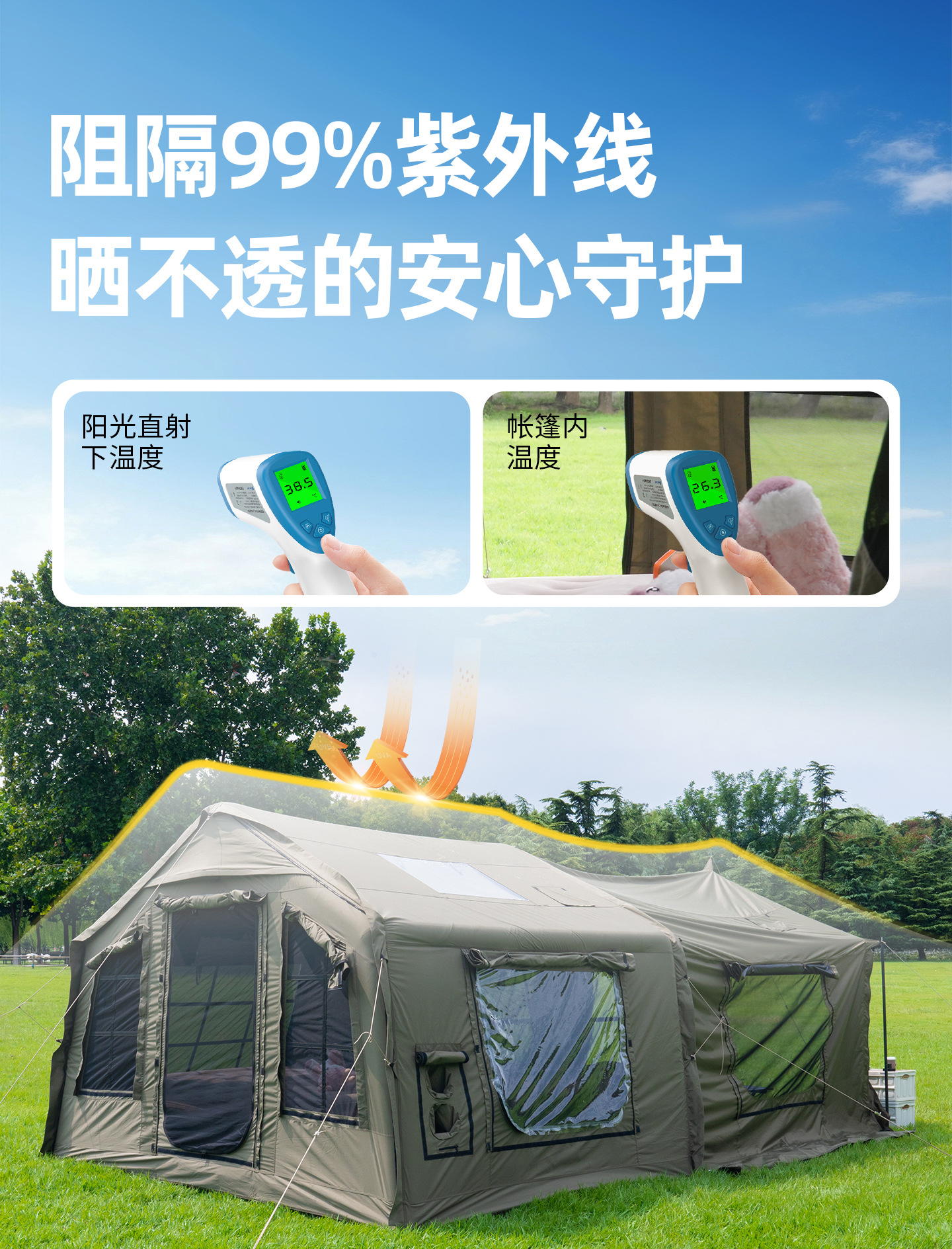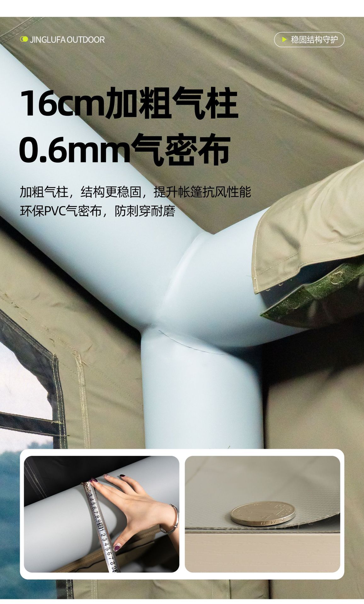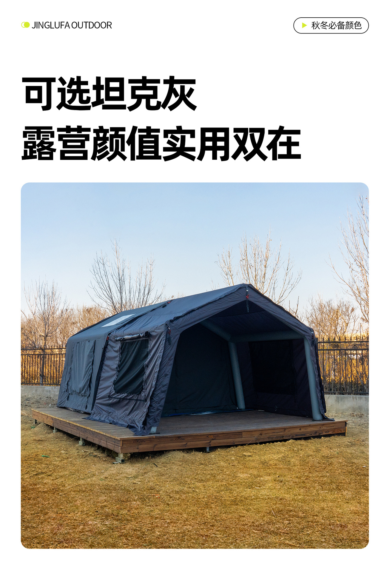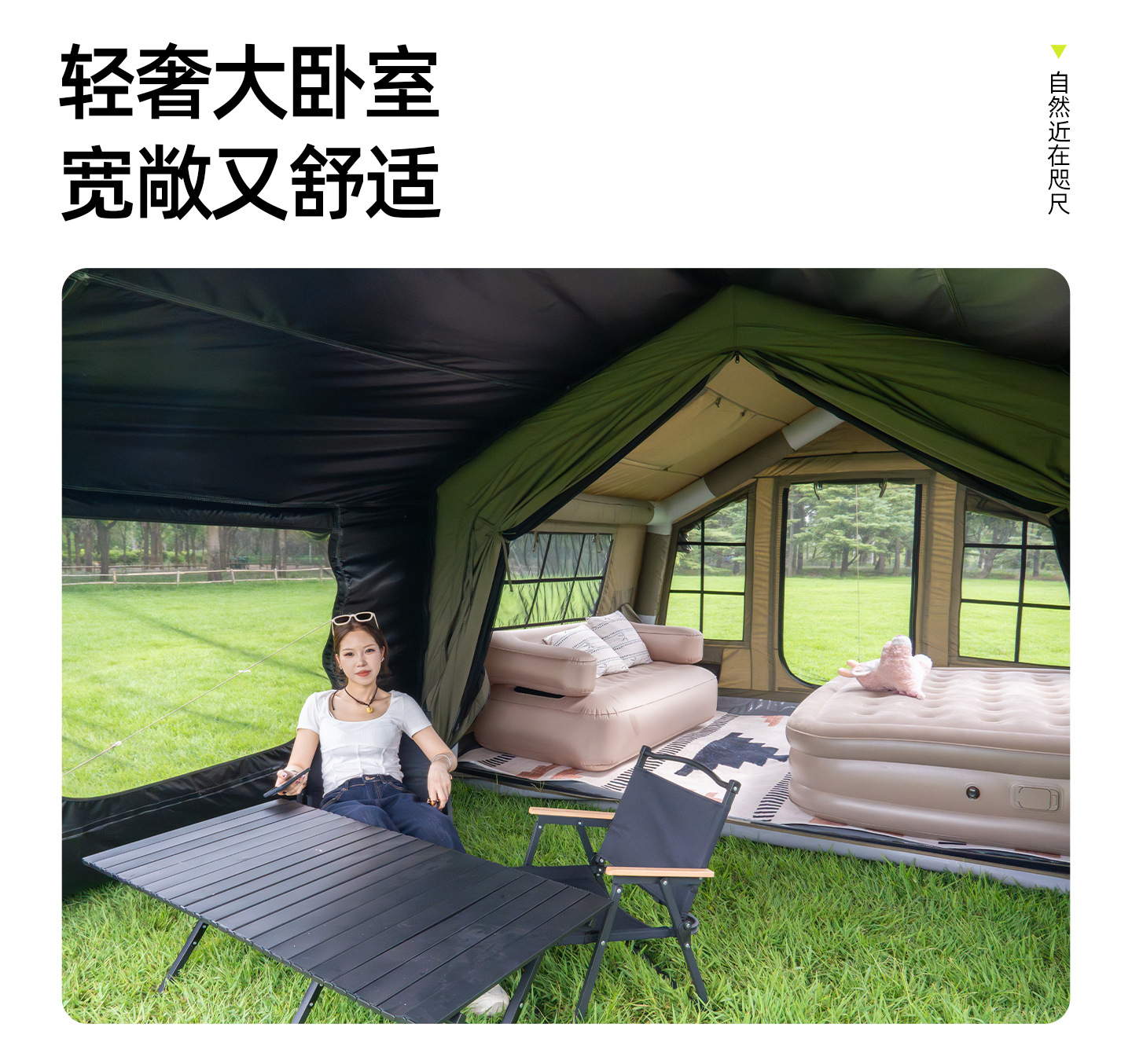 징루파 8+8 면 소재 자동 팽창 텐트, 루프탑 캠프, 원룸+거실, 야외 숙박용