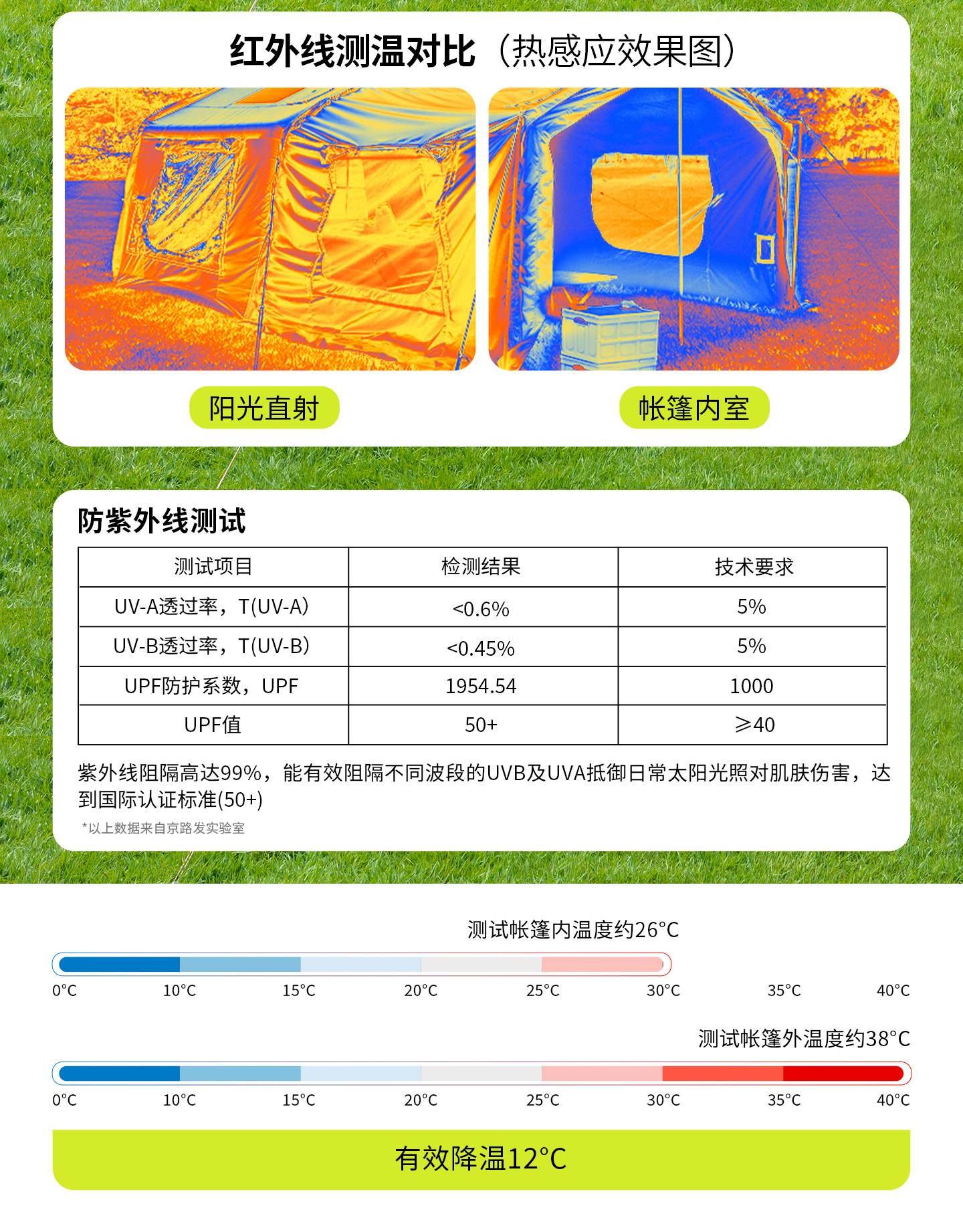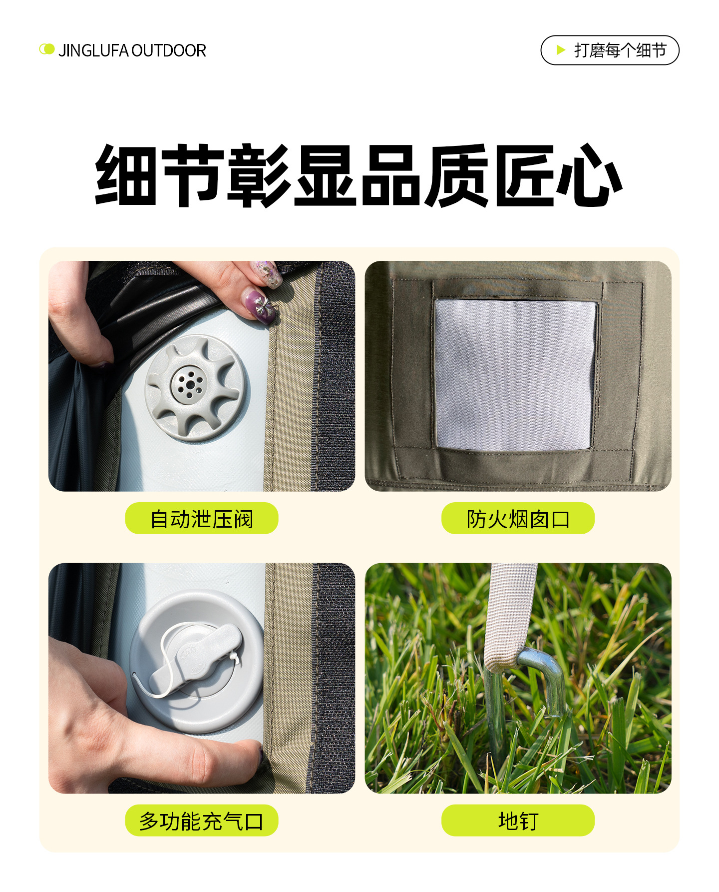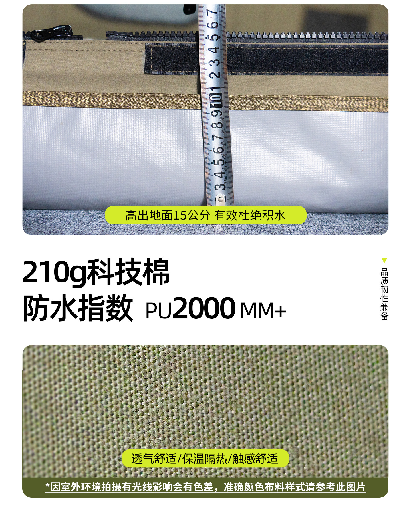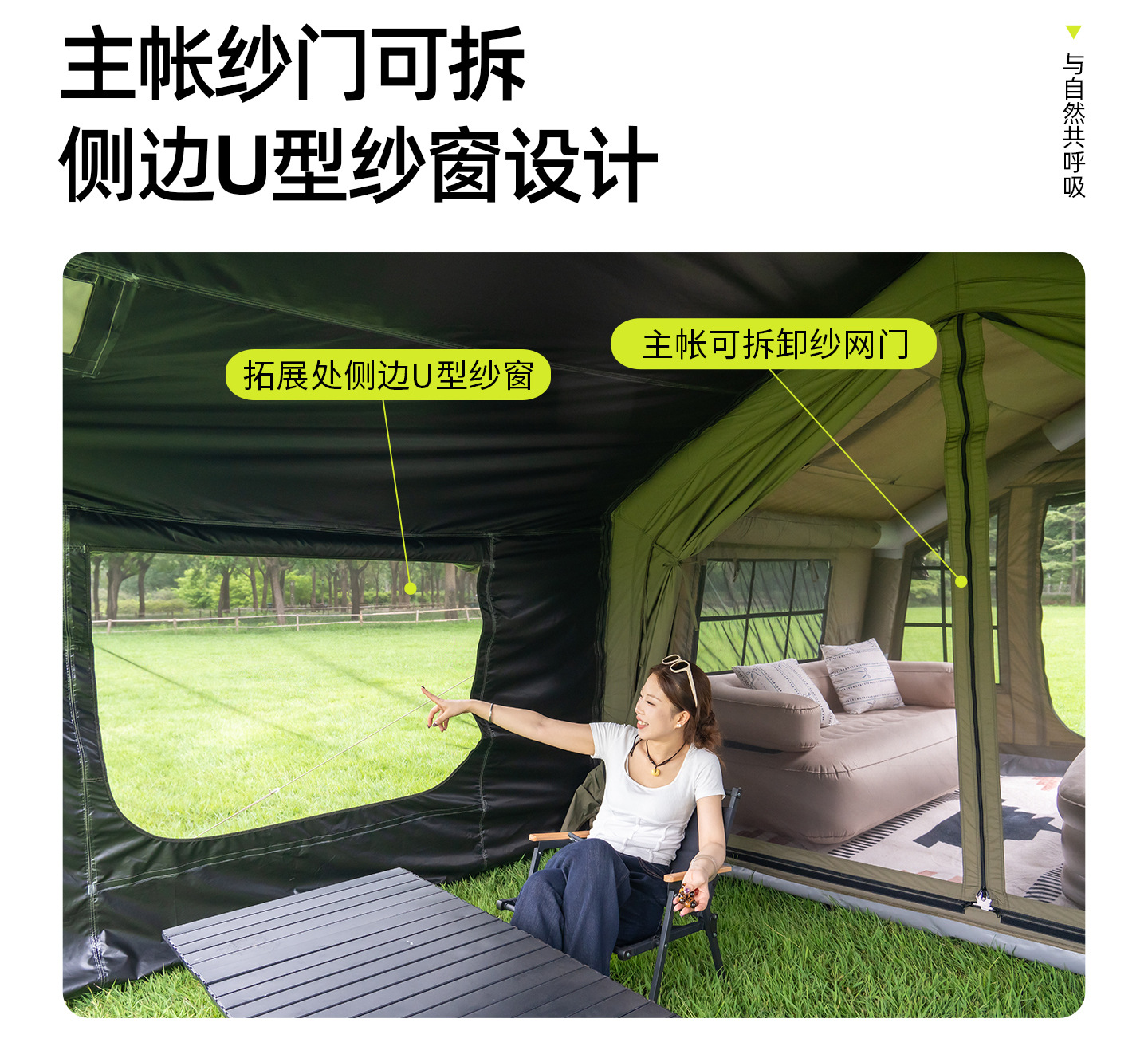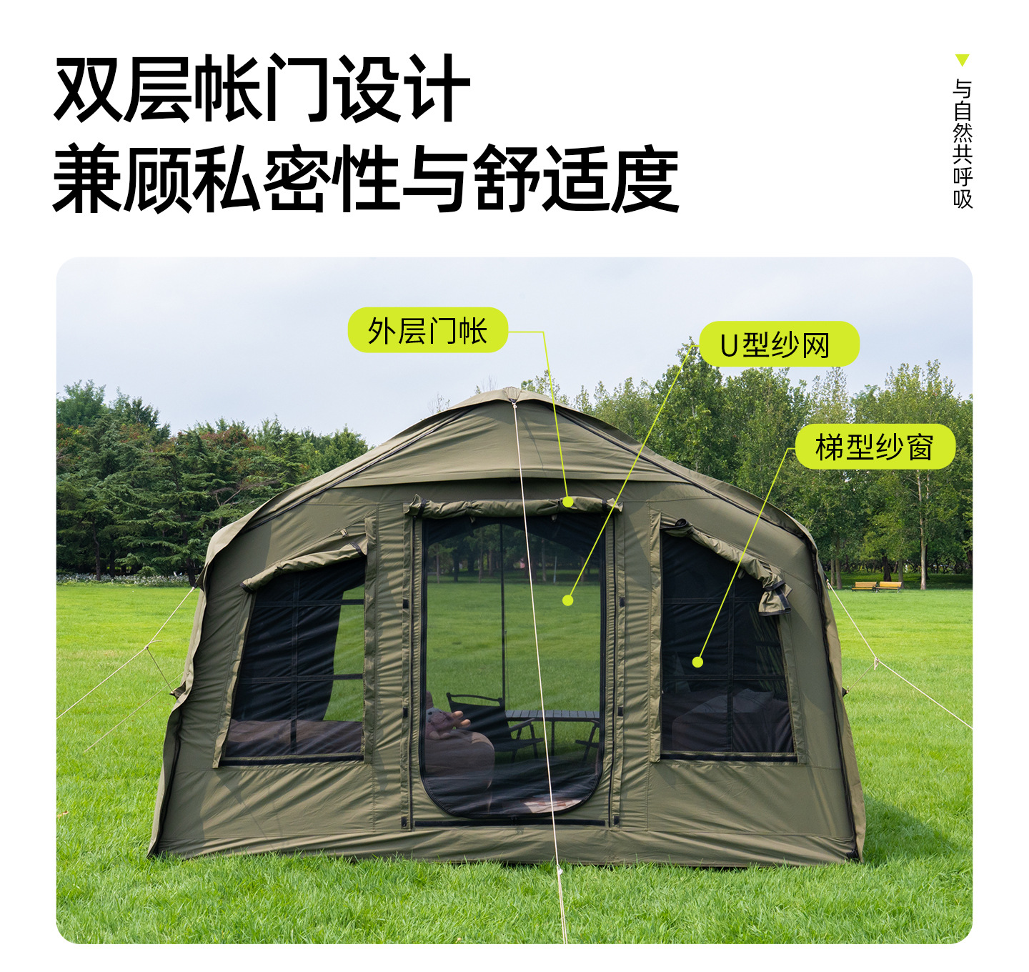 징루파 8+8 면 소재 자동 팽창 텐트, 루프탑 캠프, 원룸+거실, 야외 숙박용